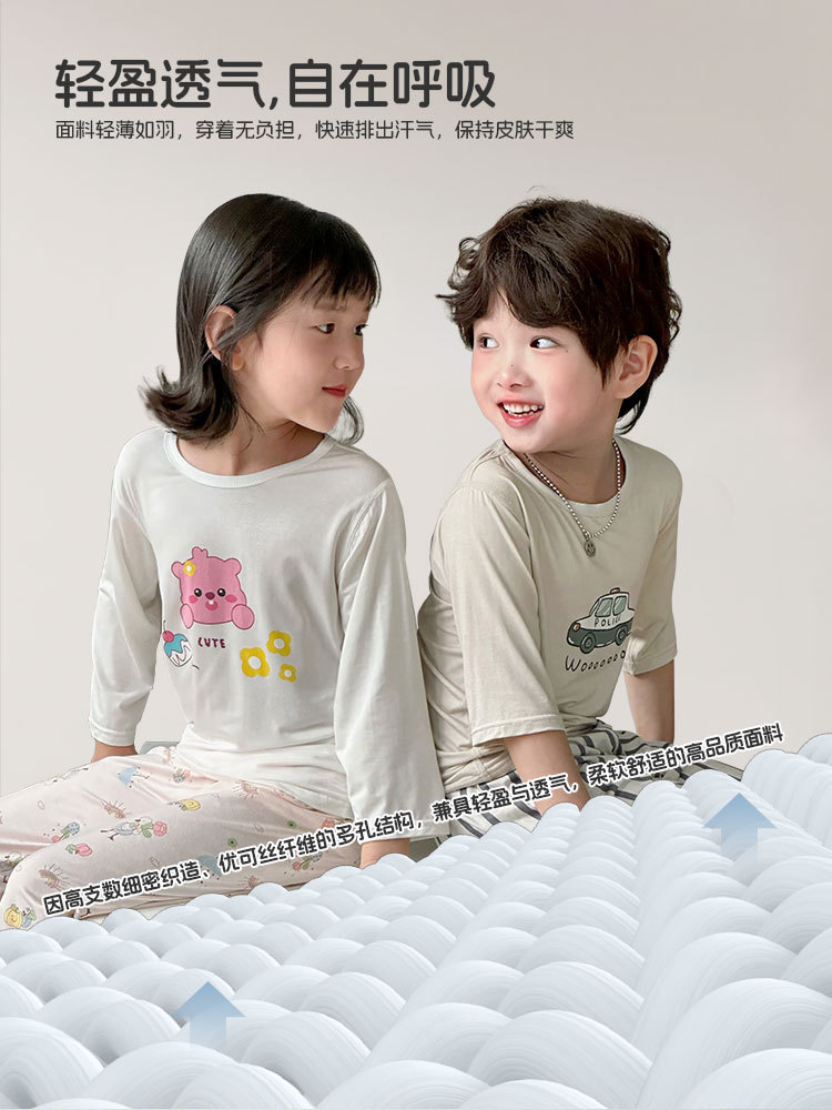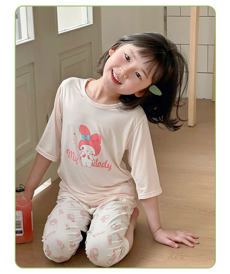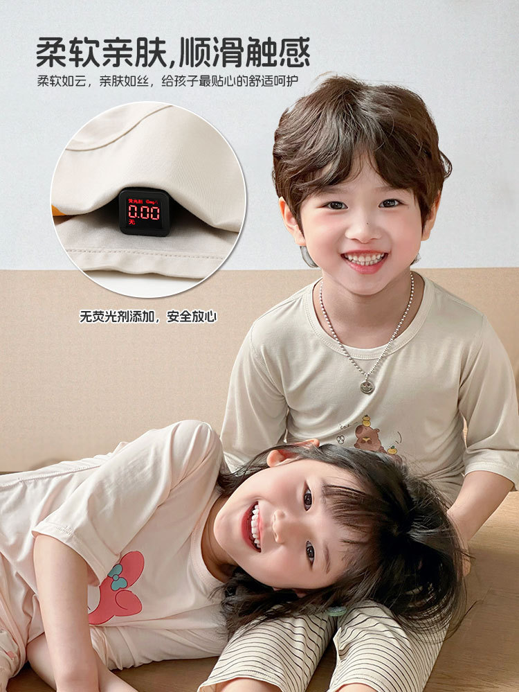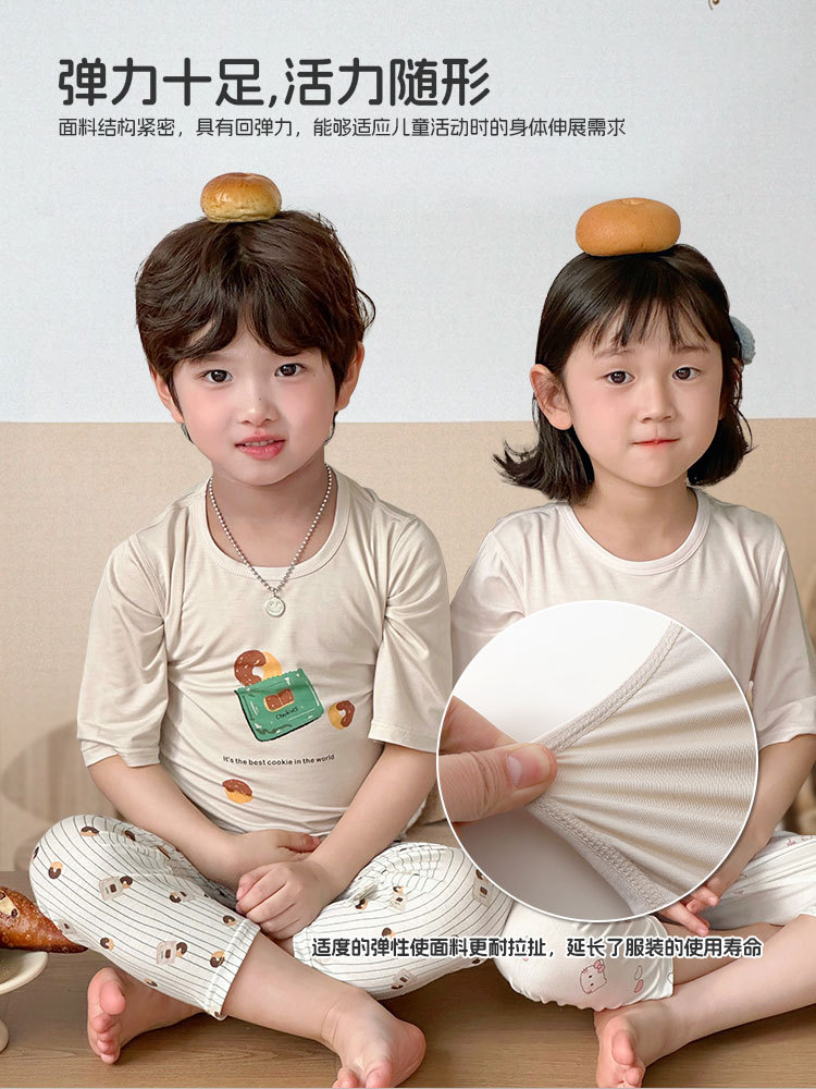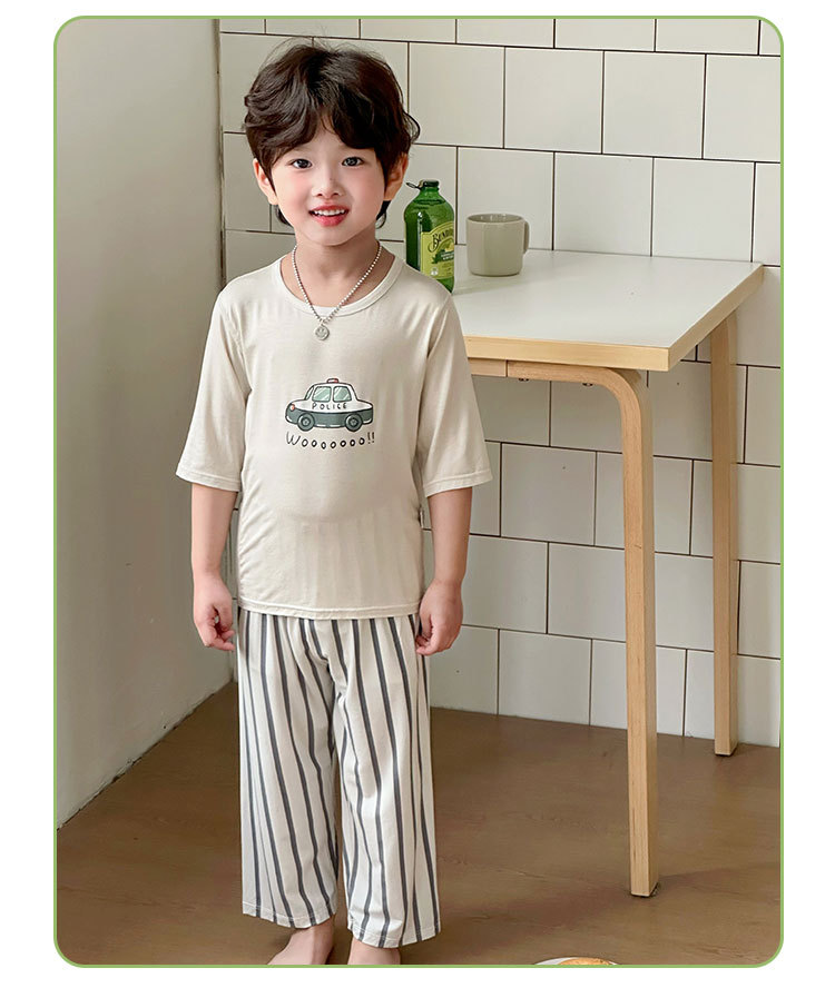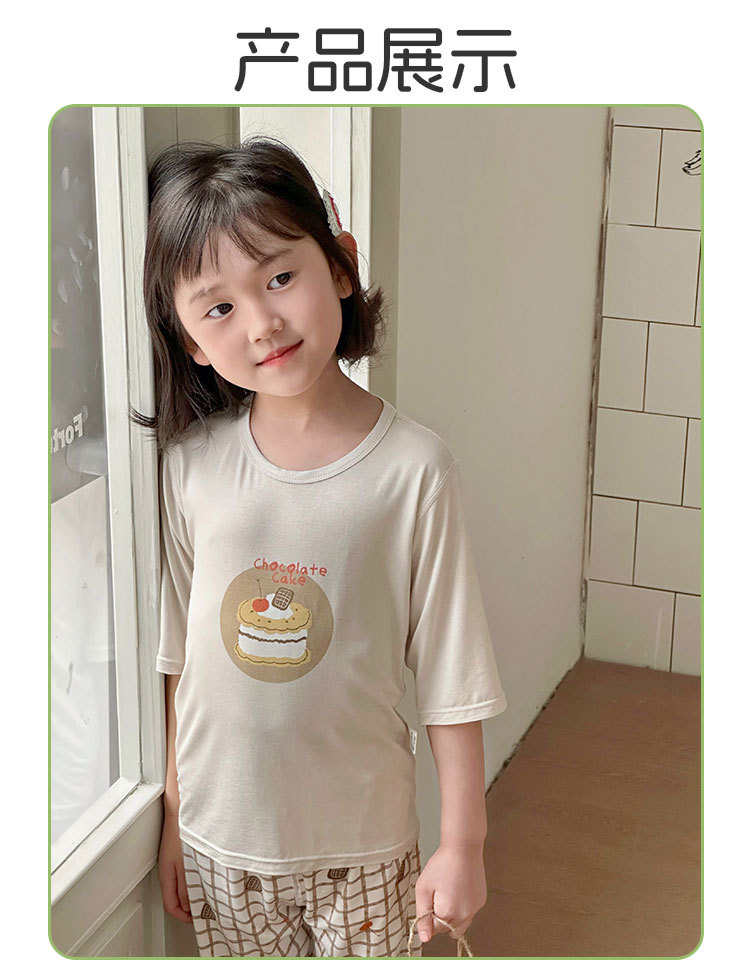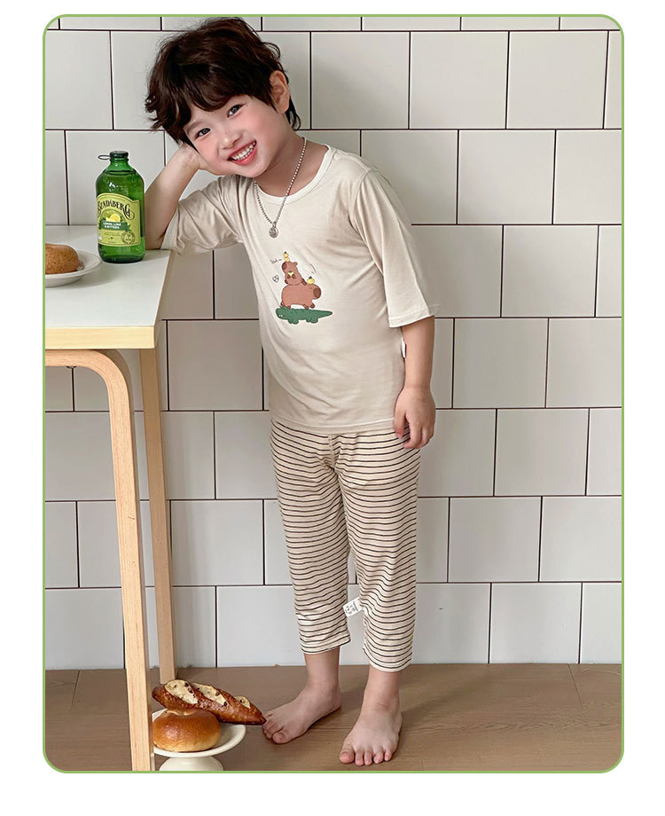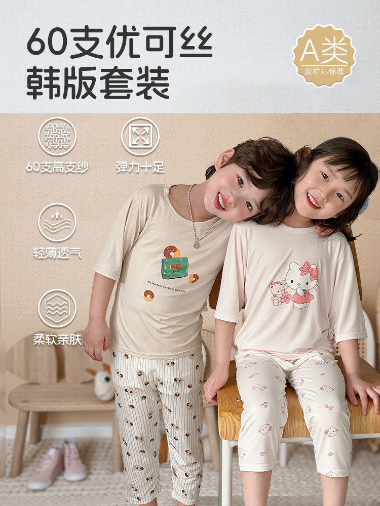 Choice Children's Summer Cropped Sleeve Ankle-length Pants suit Korean Pajamas Boys and Girls Cartoon Home Clothes