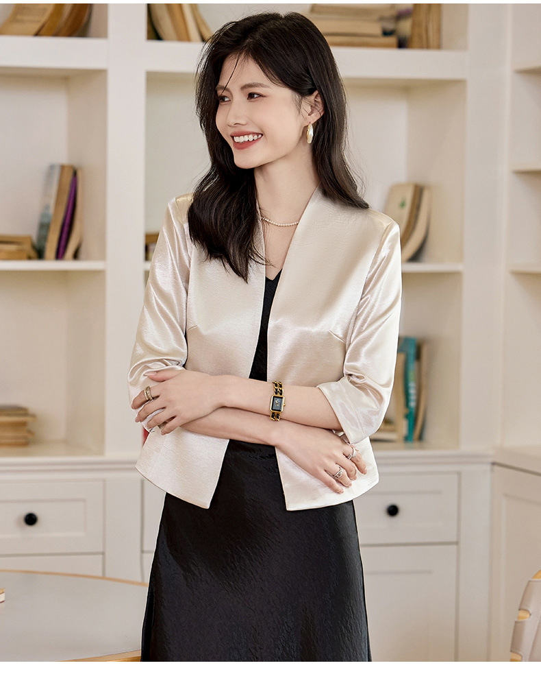 Collarless Small Suit Jacket Women's 2025 New Spring and Summer High-end Acetic Acid dress Suit suit Two-piece Set
