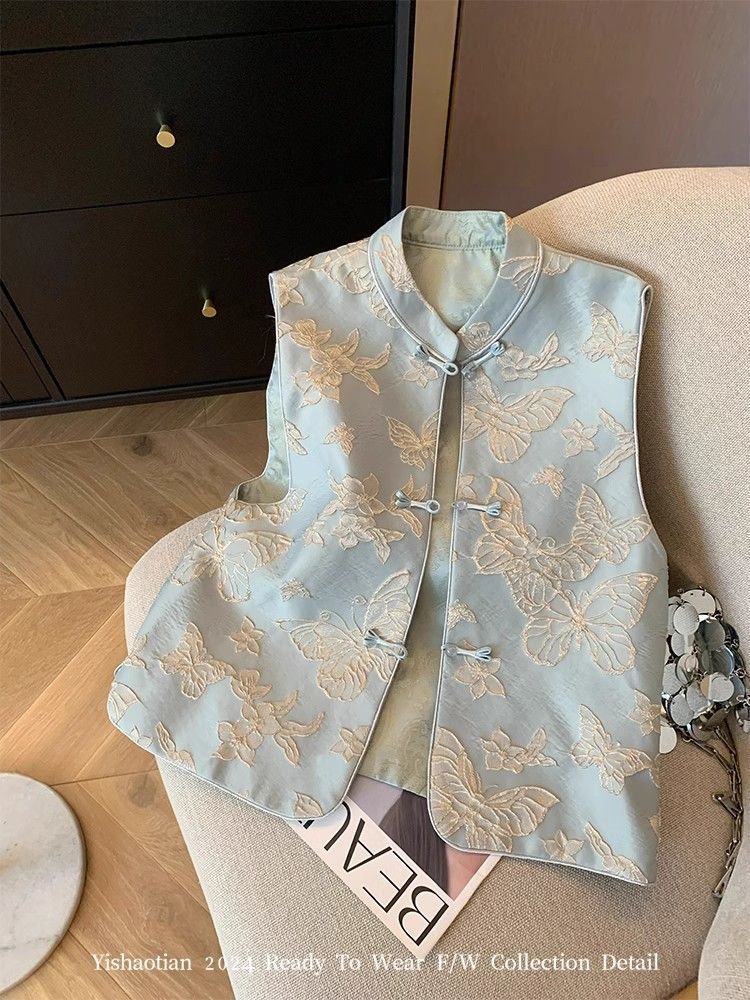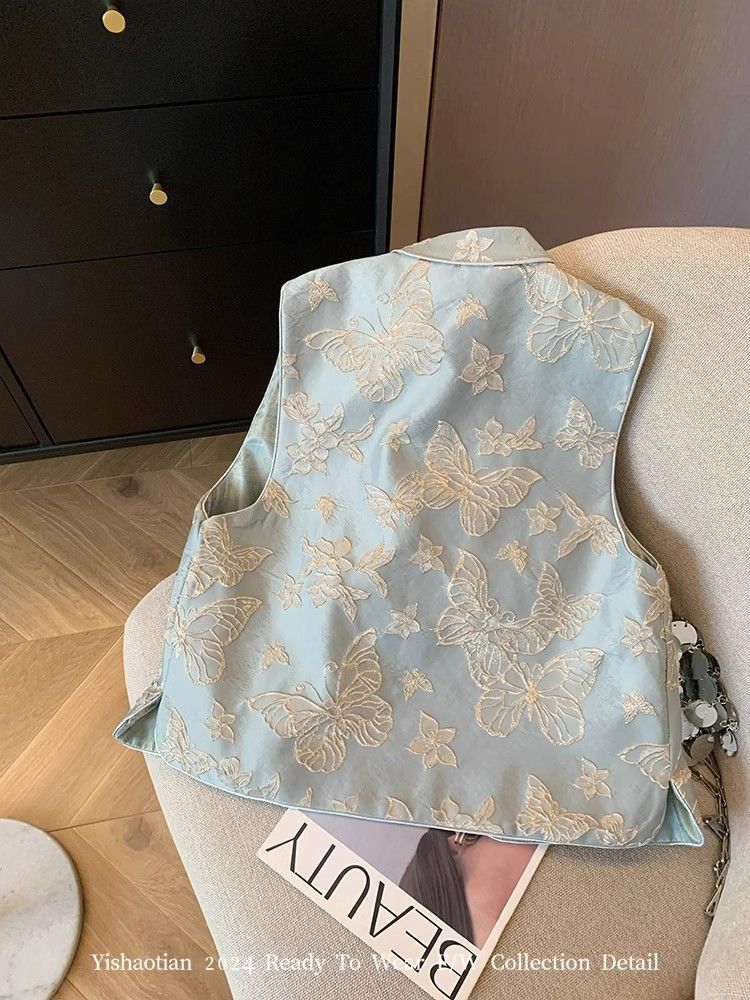 Choice 2026 Spring and Autumn Style National Style Vest New Chinese Style Blue Butterfly Embroidery Women's High-End Elegant New Sleeveless Vest