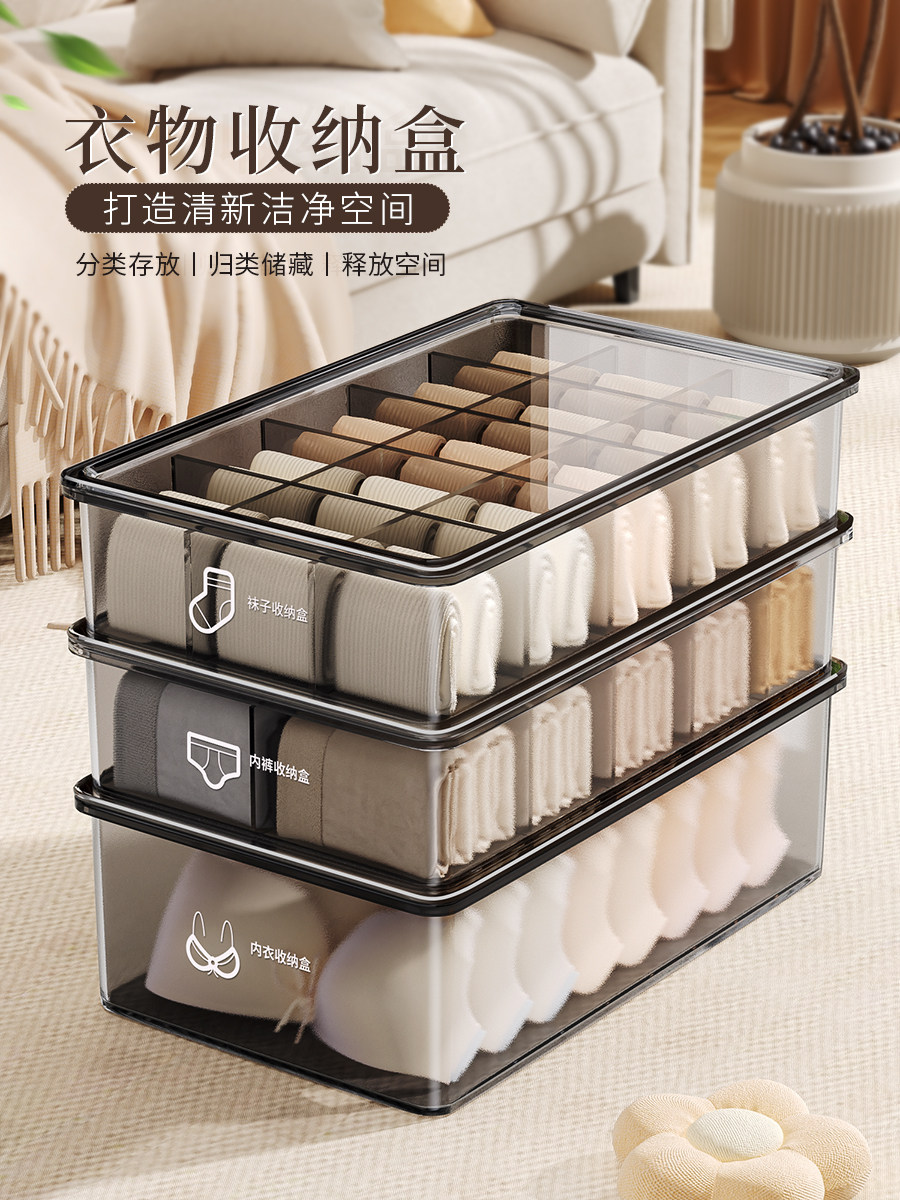 Choice Underwear Underwear Socks Three-in-One Storage Box Household Wardrobe Split Artifact Body-Fit Clothes Organizer Box with Lid