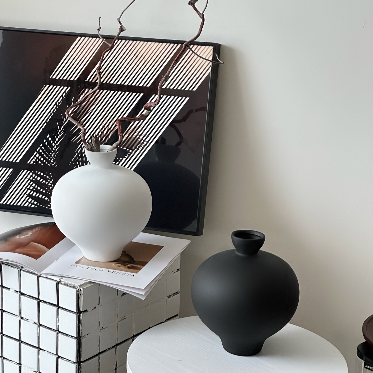 Choice Black Ceramic Vase Desktop Flower Arrangement Ornaments High-End Niche Creative Living Room Decoration Vase Ceramic Flower Arrangement Device