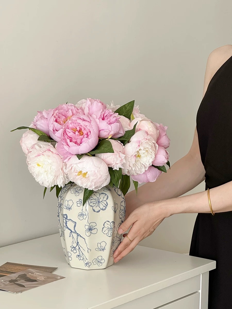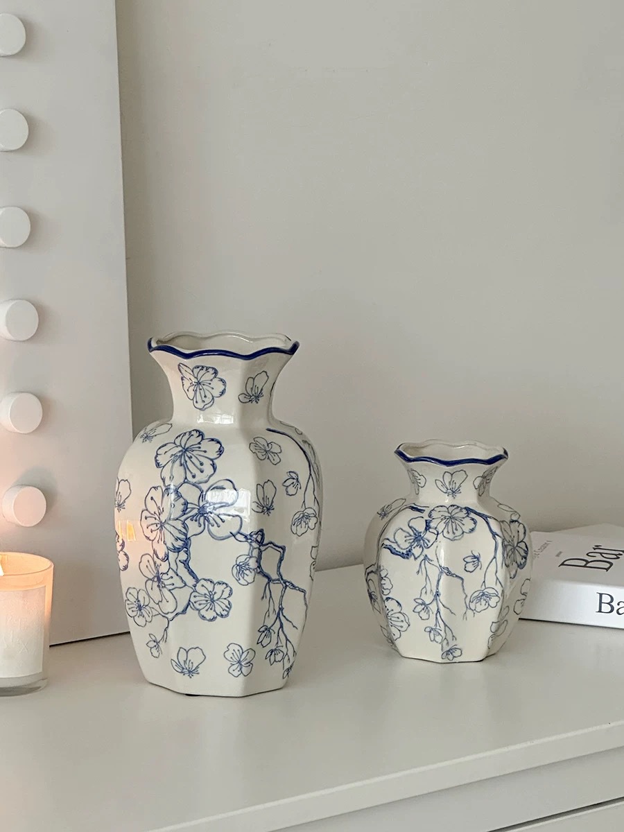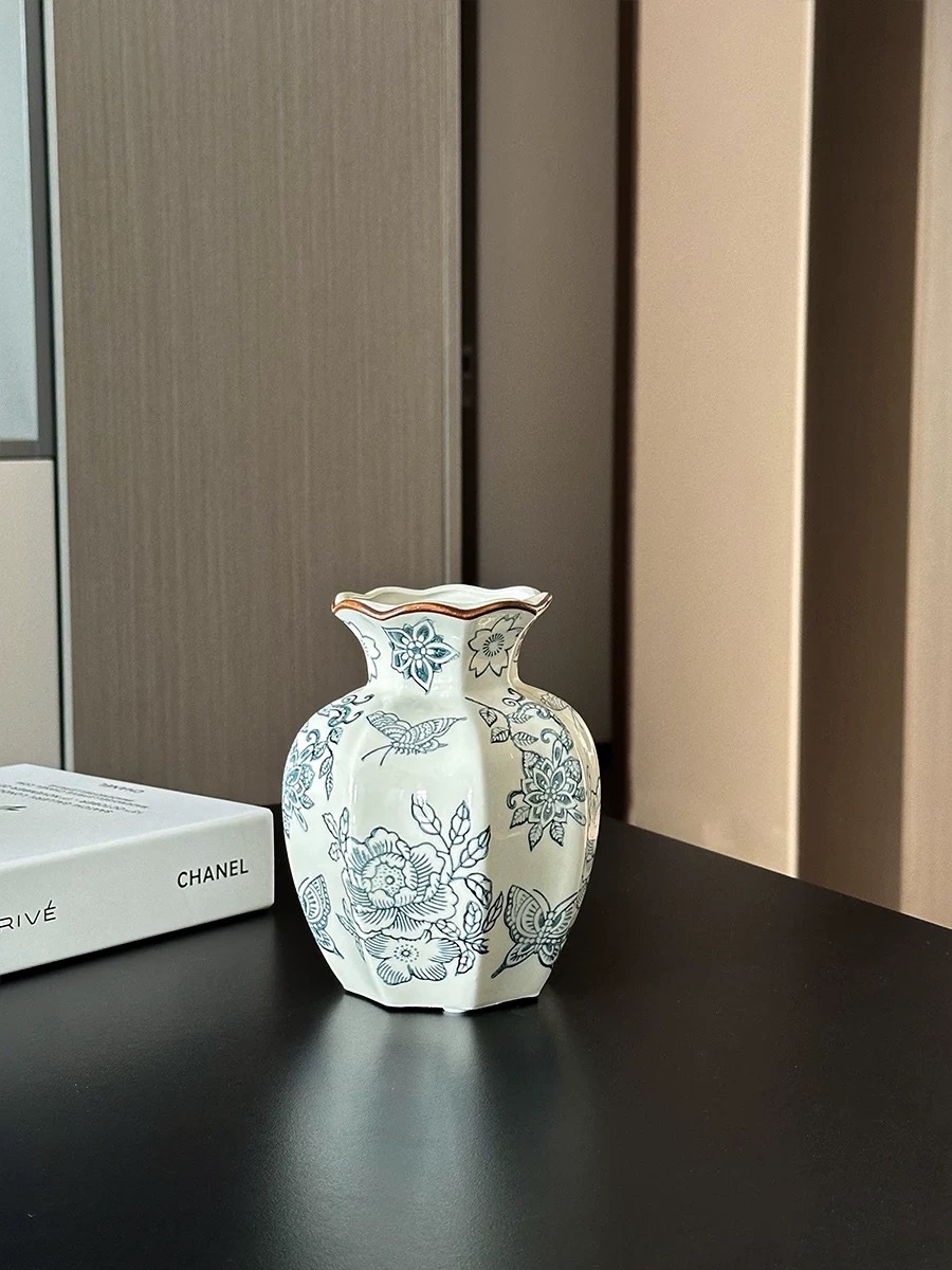 Choice Medieval Blue and White Porcelain Retro Ceramic Vase Flower Arrangement Ornaments High-End Niche Home Decoration Vase Ceramic Flower Vessel