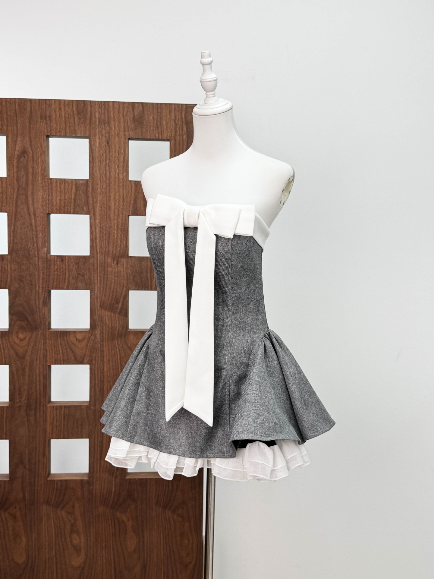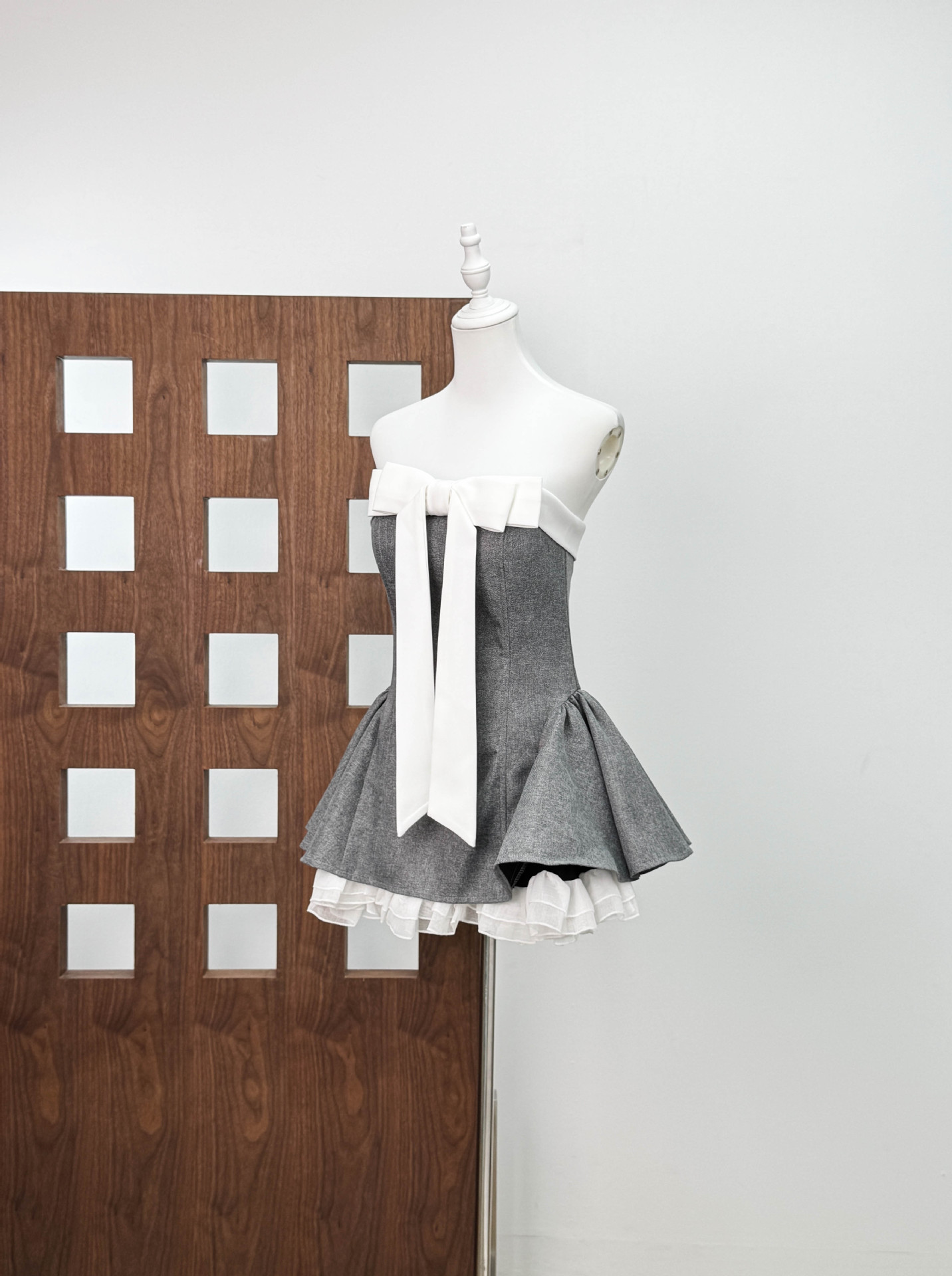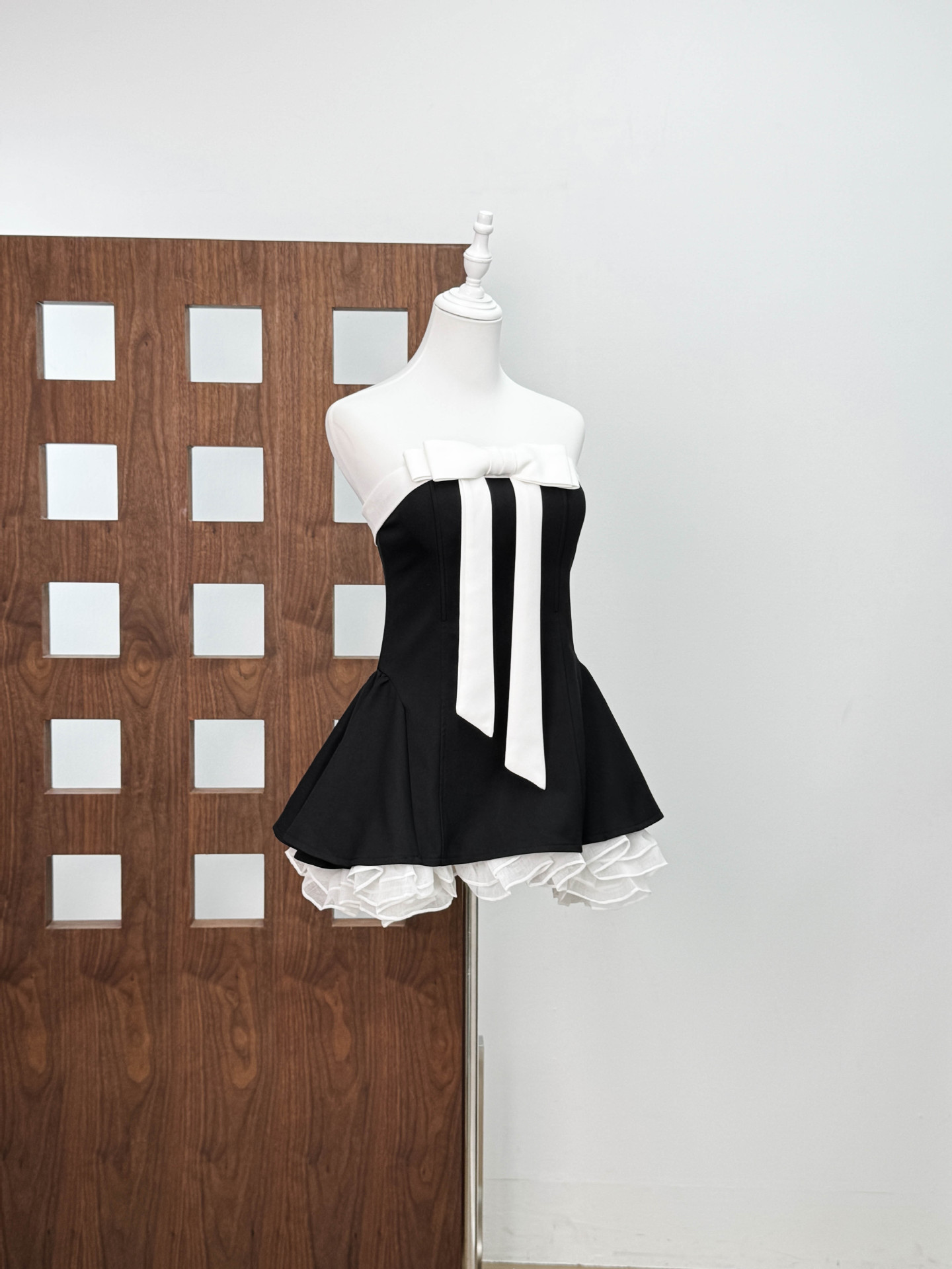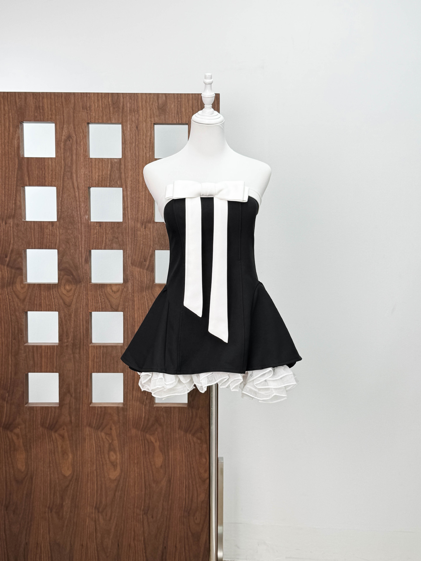 Vietnam Niche Ballet Style Bow Strapless dress Women's Spring 2025ss Daughter Tight Waist Puff Skirt