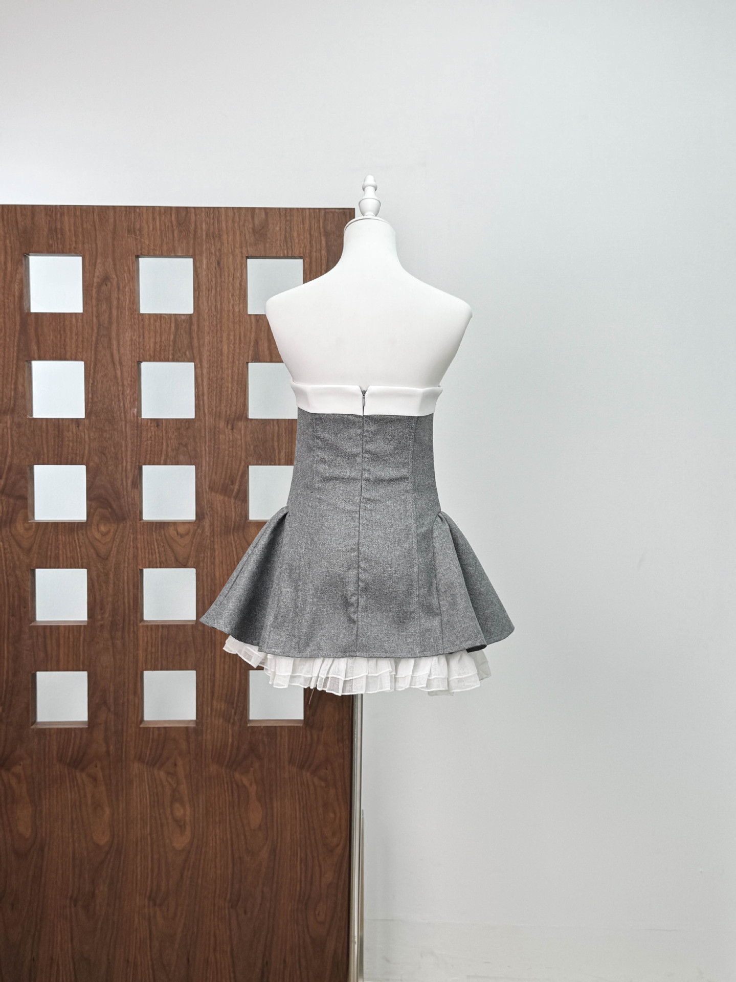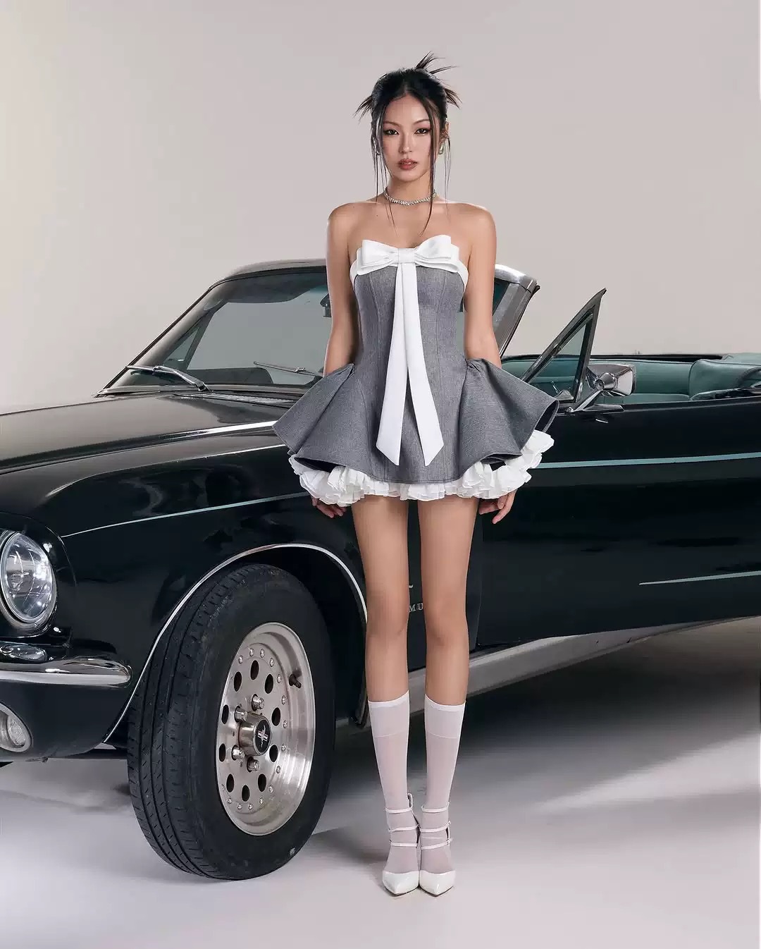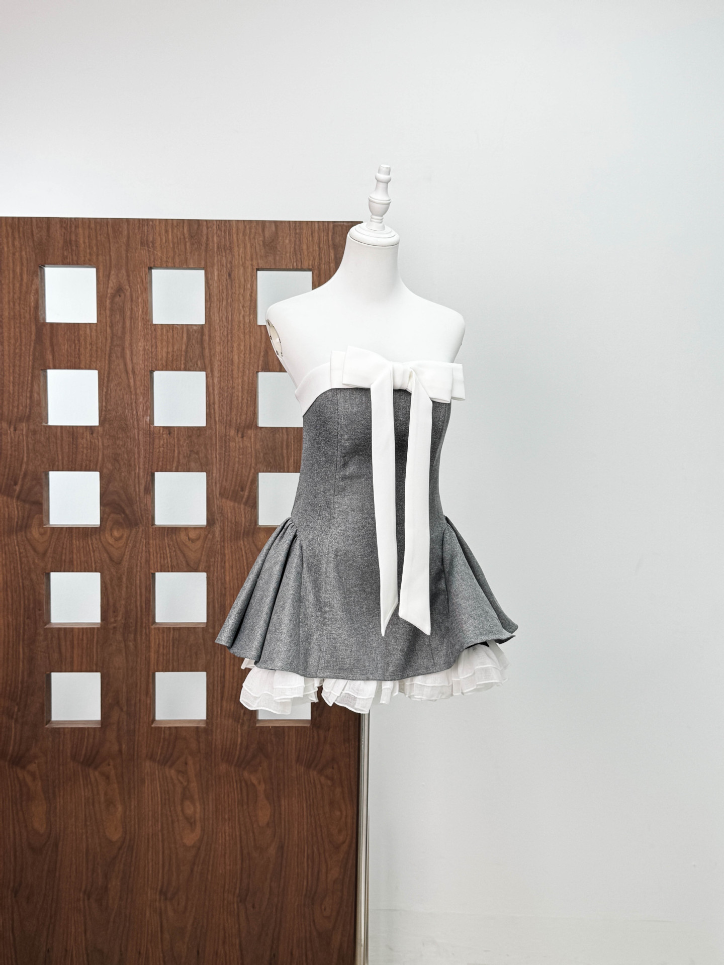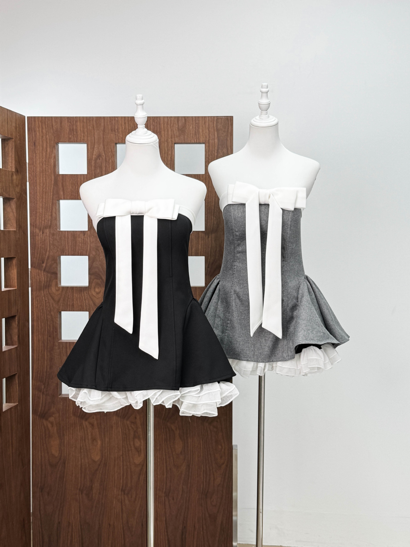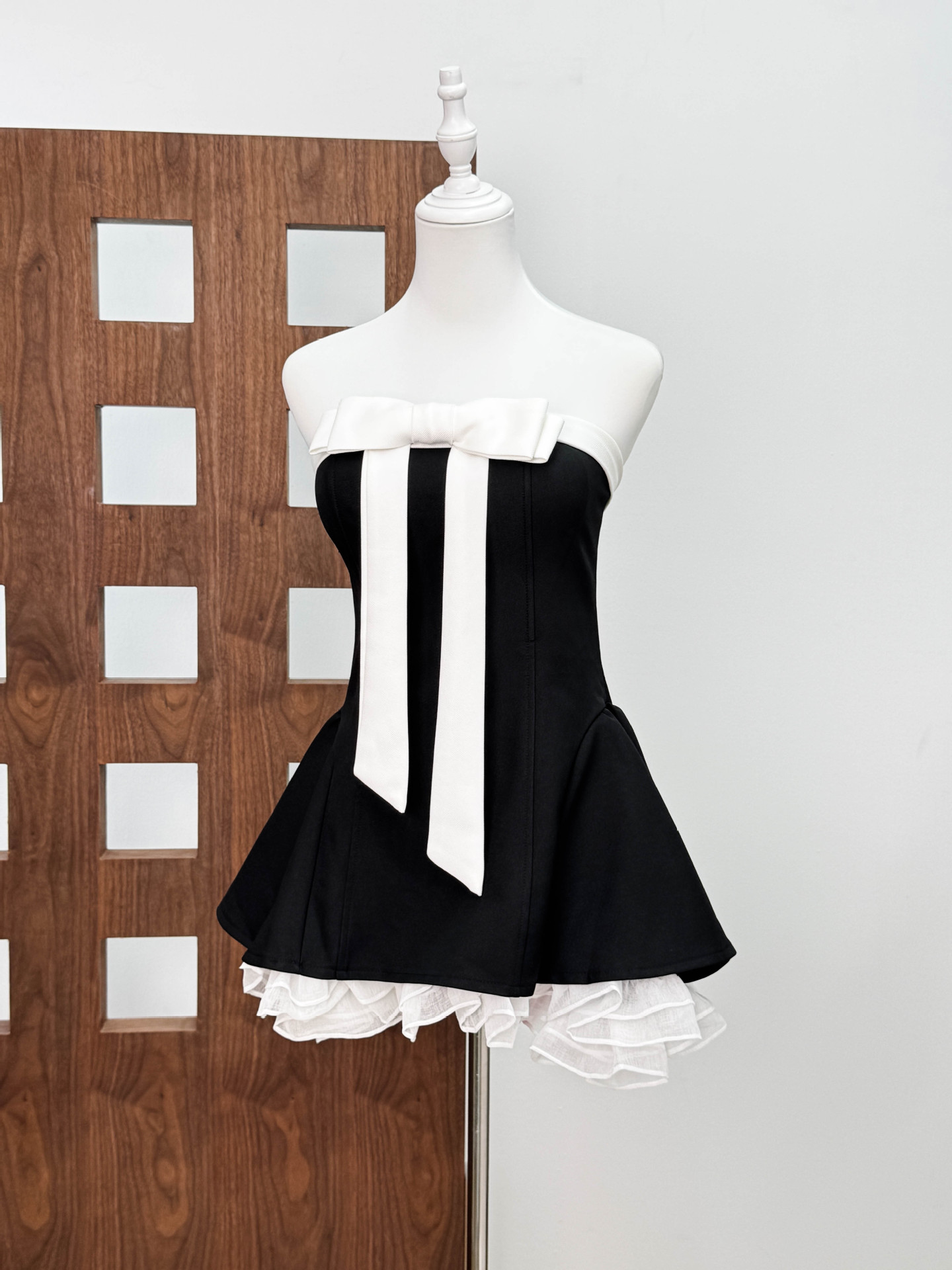 Vietnam Niche Ballet Style Bow Strapless dress Women's Spring 2025ss Daughter Tight Waist Puff Skirt