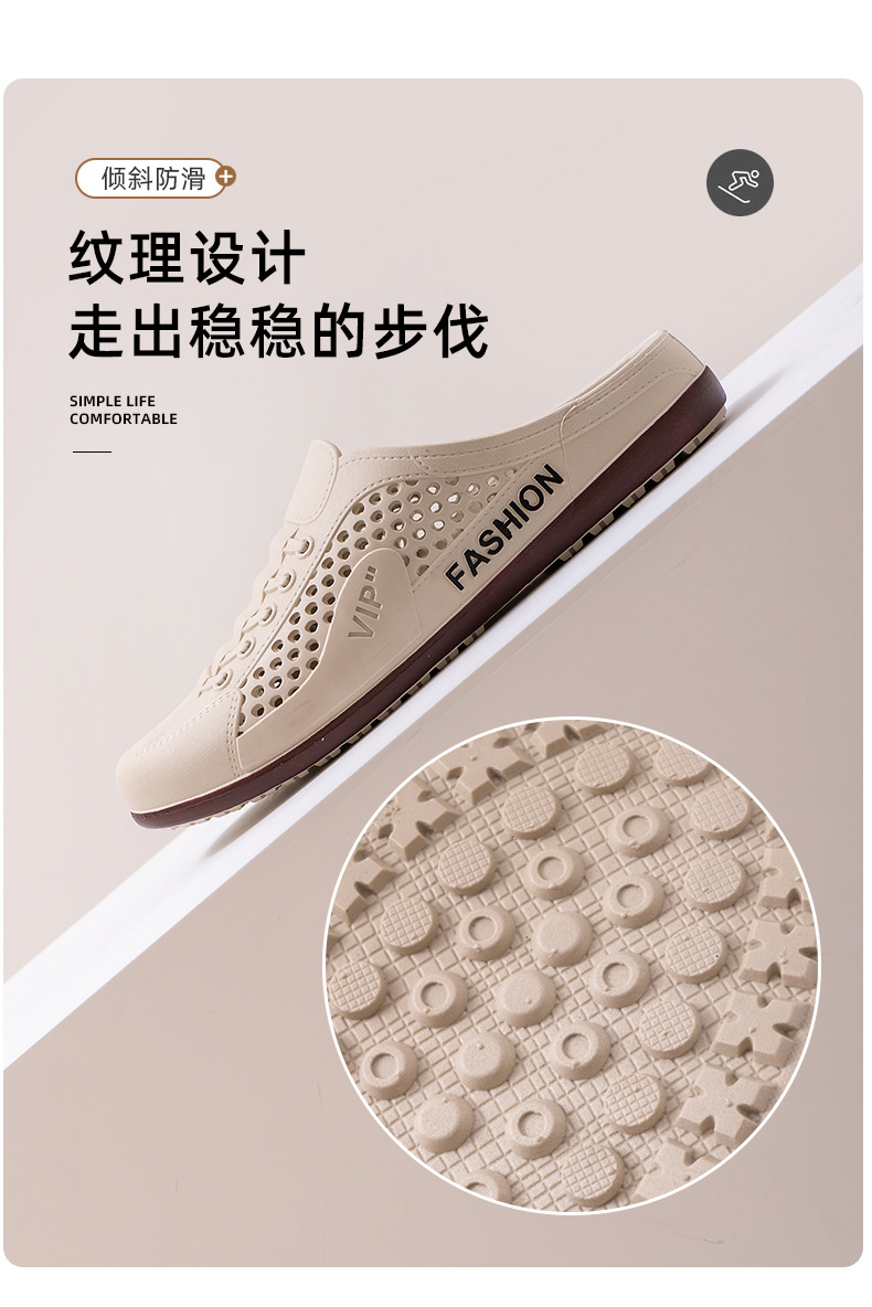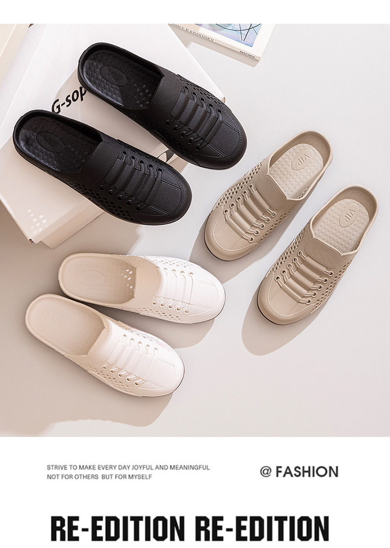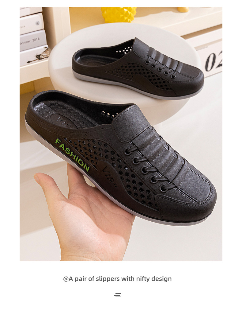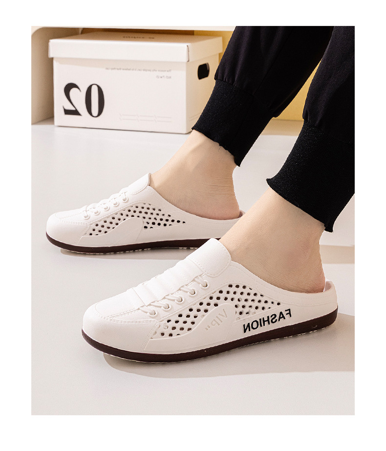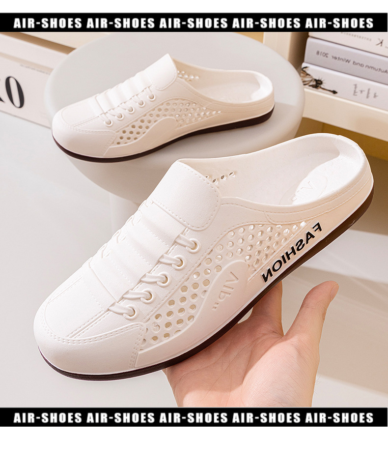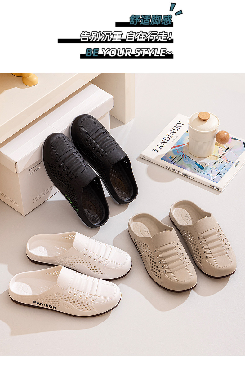 Men's Shoes Summer New Breathable Mesh Shoes Men's Slip-On Lazy Heelless Half Slippers Fashionable Versatile Casual Trendy Shoes
