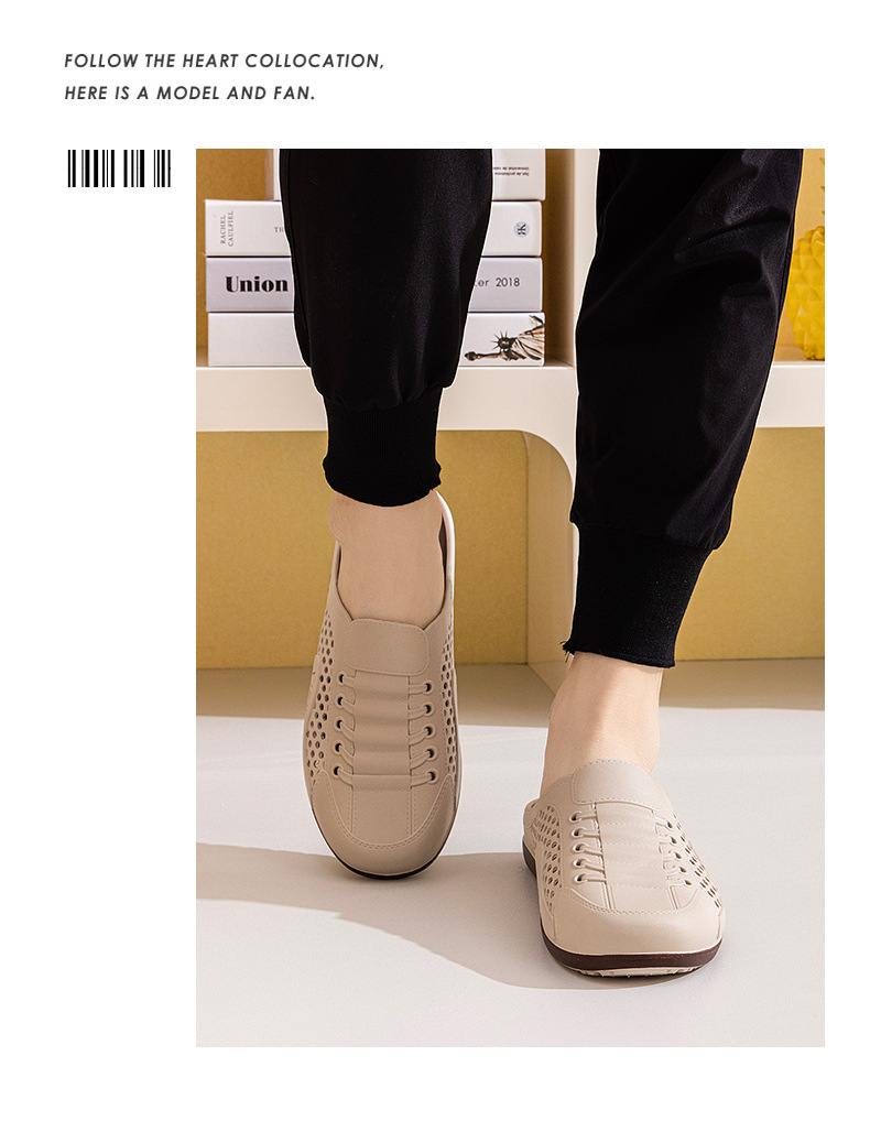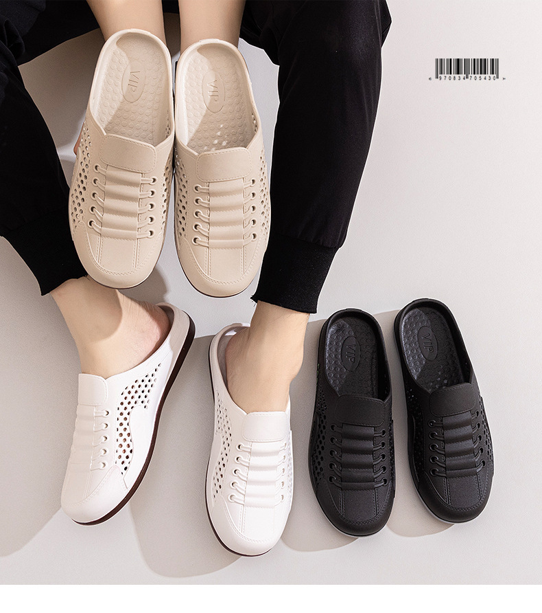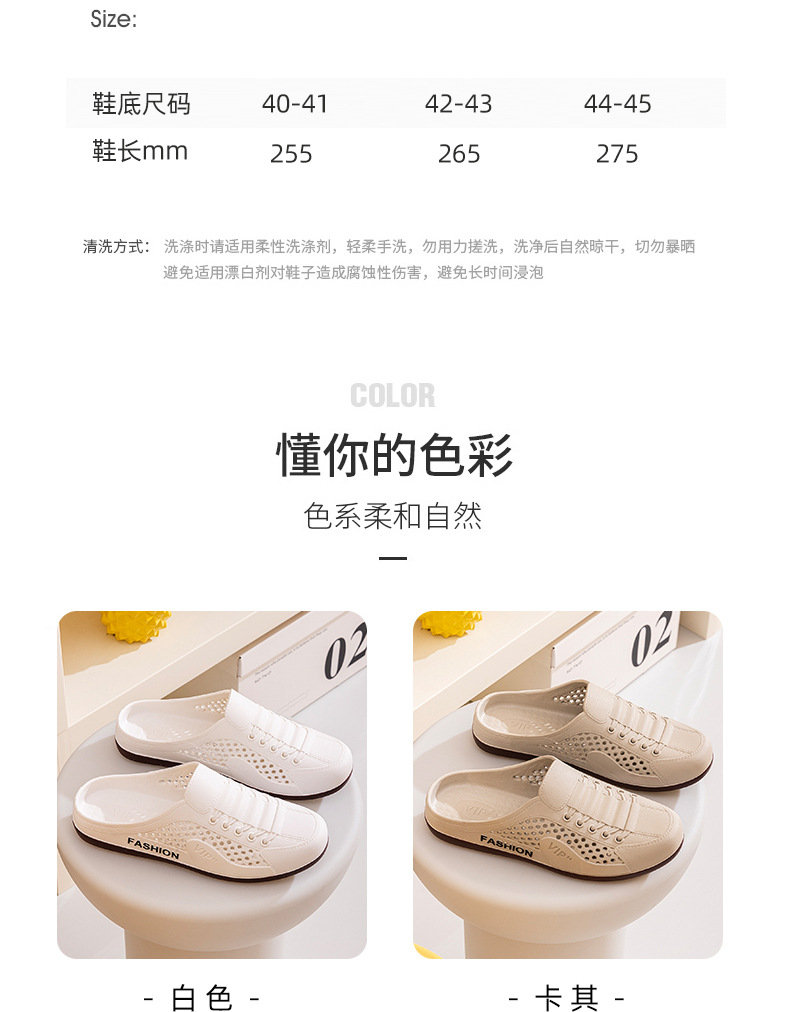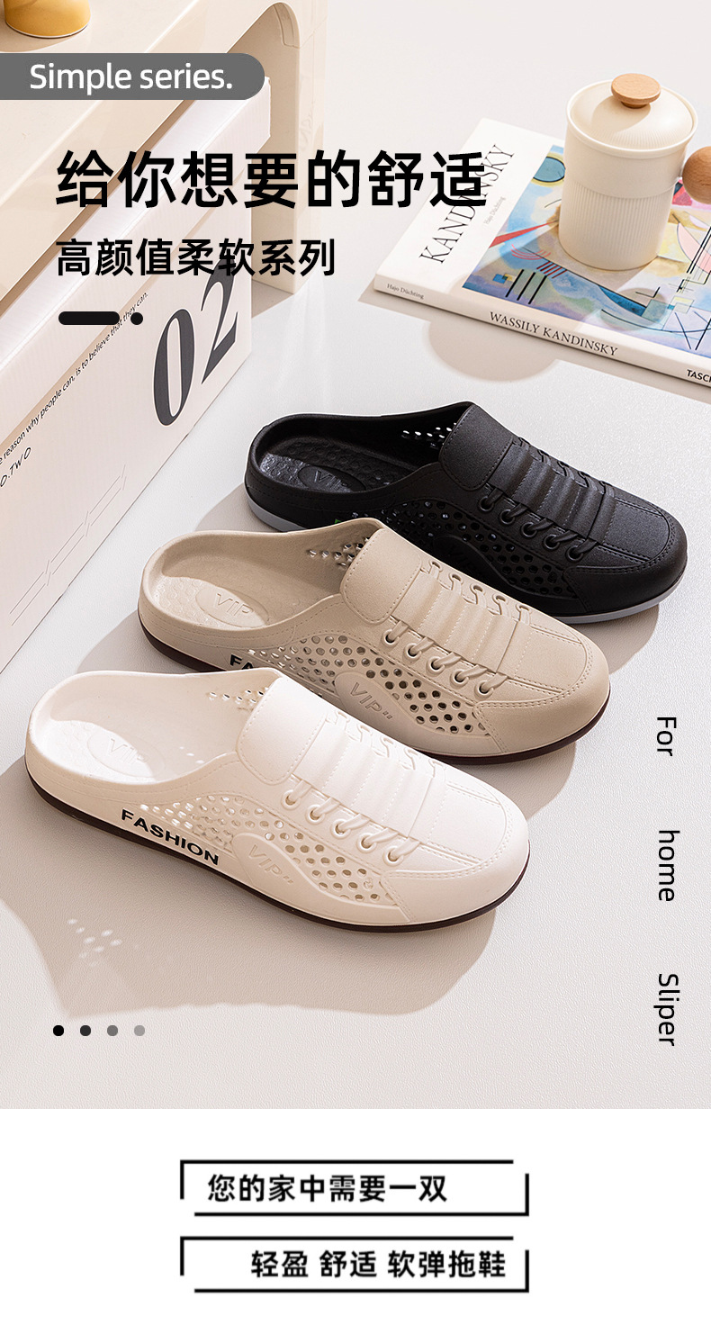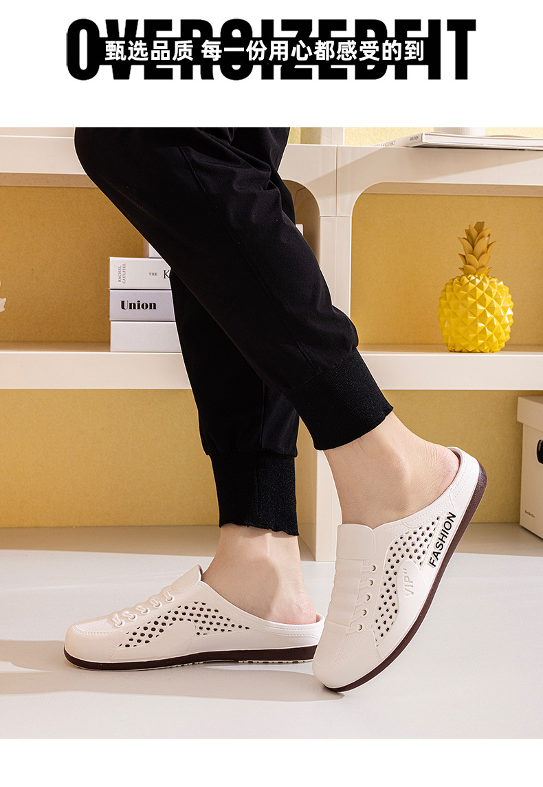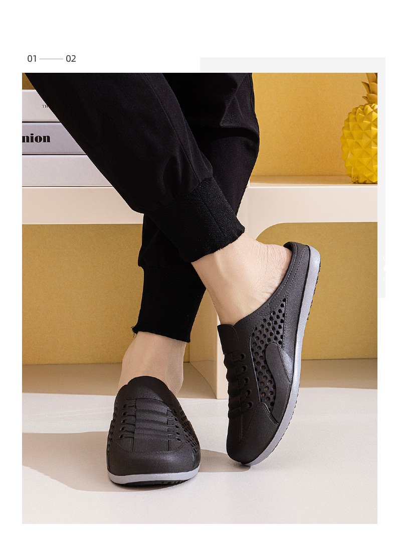 Men's Shoes Summer New Breathable Mesh Shoes Men's Slip-On Lazy Heelless Half Slippers Fashionable Versatile Casual Trendy Shoes