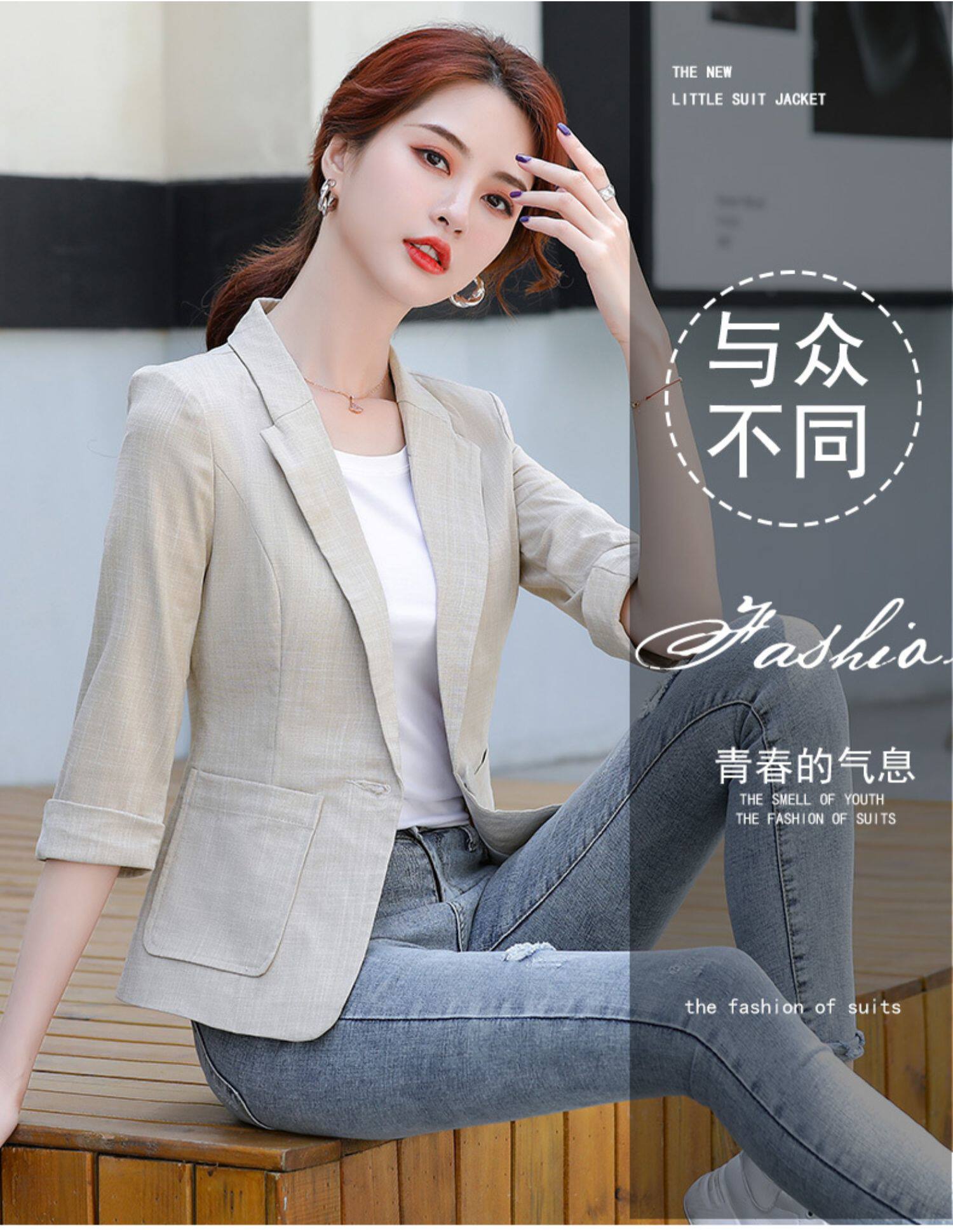 Choice 2025 New Small Suit Jacket Women's Summer Thin Summer Short Small Men's Seven-Sleeve Linen Suit Summer