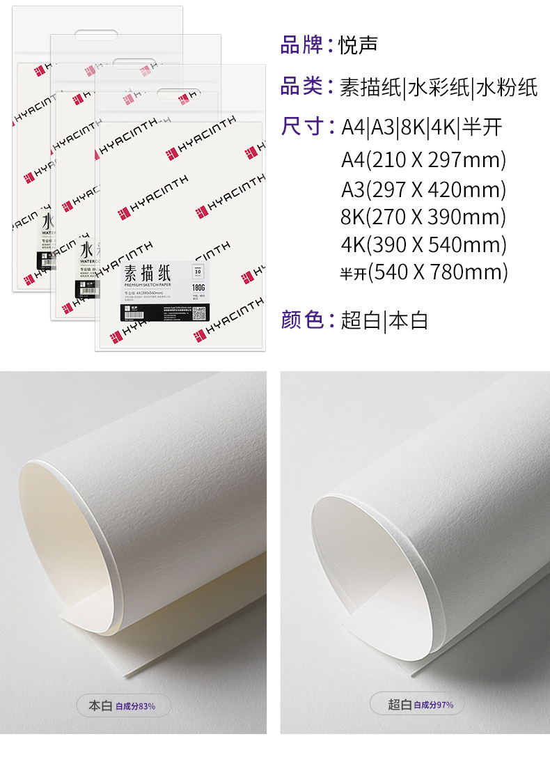 Choice Yuesheng 8k Sketch Paper 4k Thickened Watercolor Paper 4 Open Drawing Paper Art Paper Drawing Lead Drawing Paper Special for Art Students