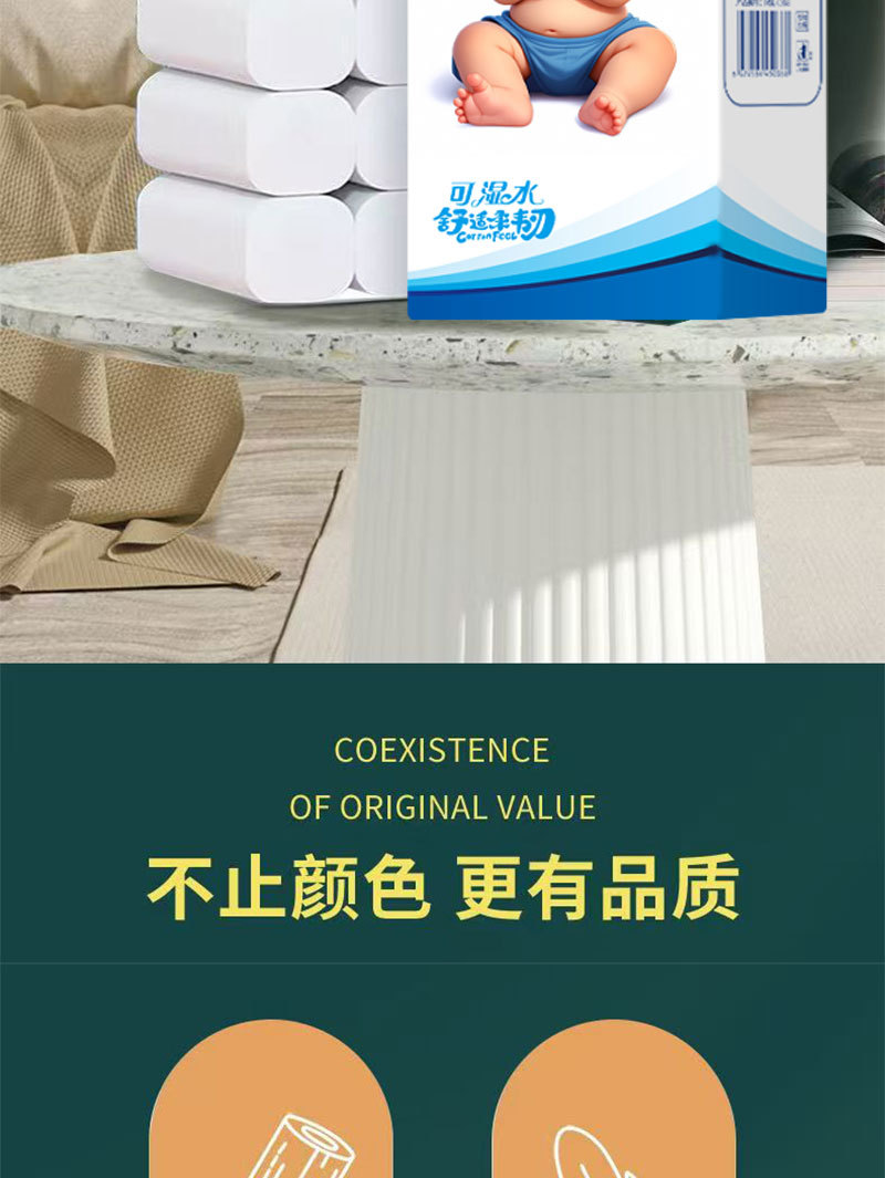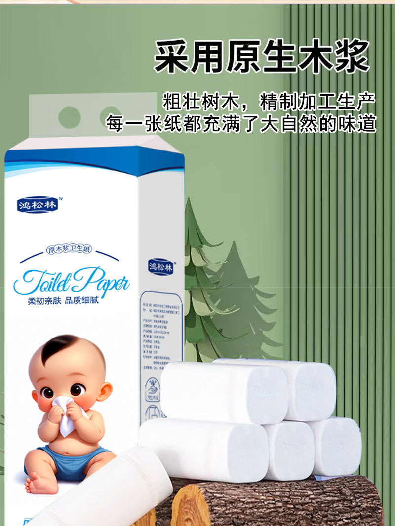 Choice Newcomers Enjoy Household 18 Rolls Baby Series Roll Paper Raw Wood Pulp Solid Sanitary Paper Towel Household Toilet Paper Roll Paper