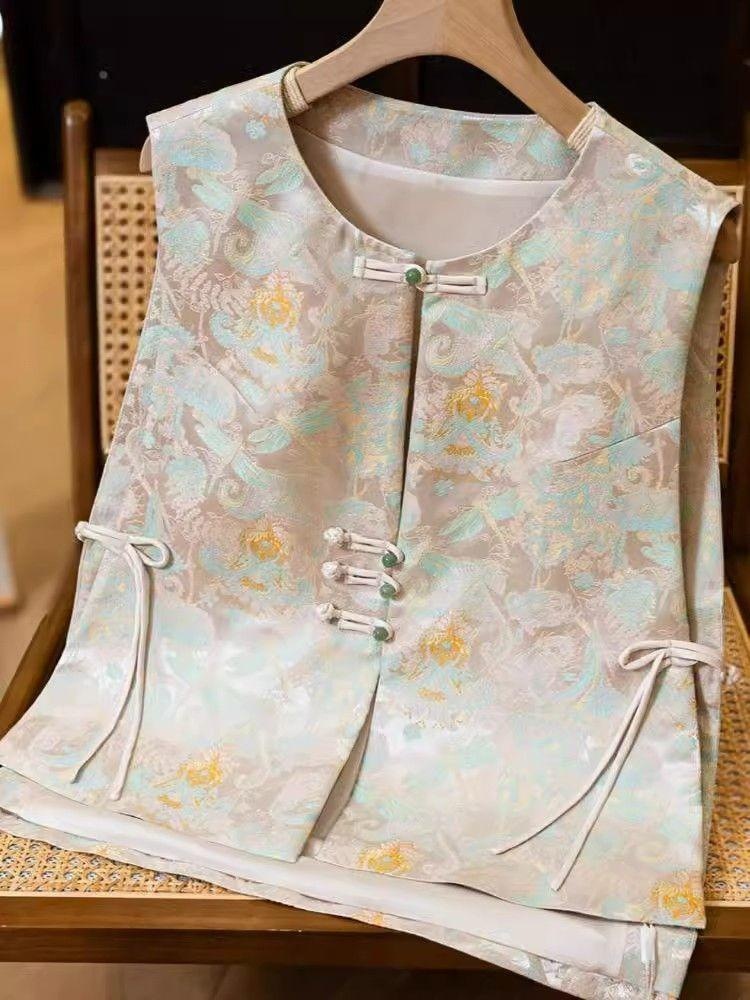 Choice National Style New Chinese-Style Jacquard Vest with Disc Buttons for Women, 2026 Spring New Model, High-End National Style Tang Suit Vest Top