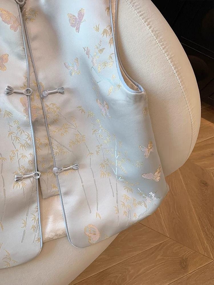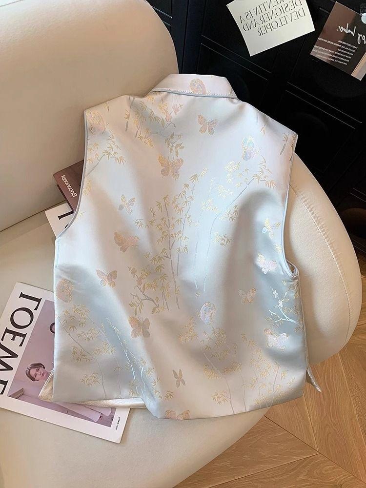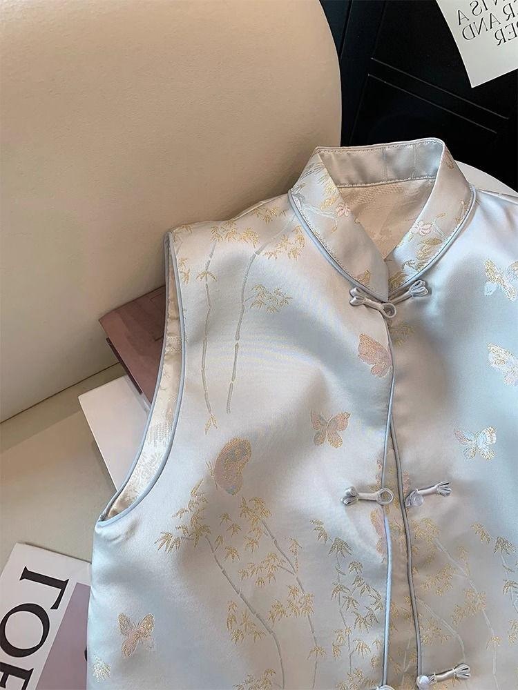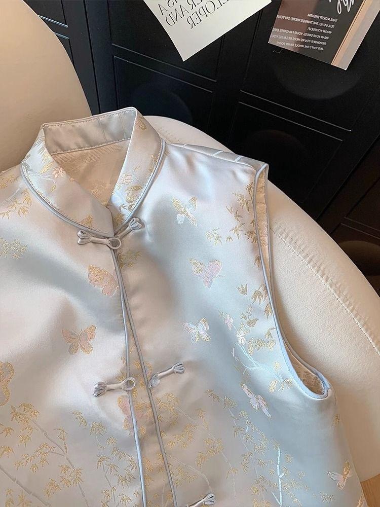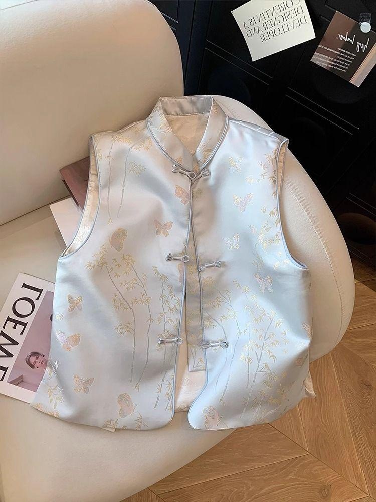 Choice New Chinese-Style Retro Jacquard Stand-Collar Buttoned Vest Jacket for Women, Spring High-End Elegant and Age-Reducing Sleeveless Vest Trendy