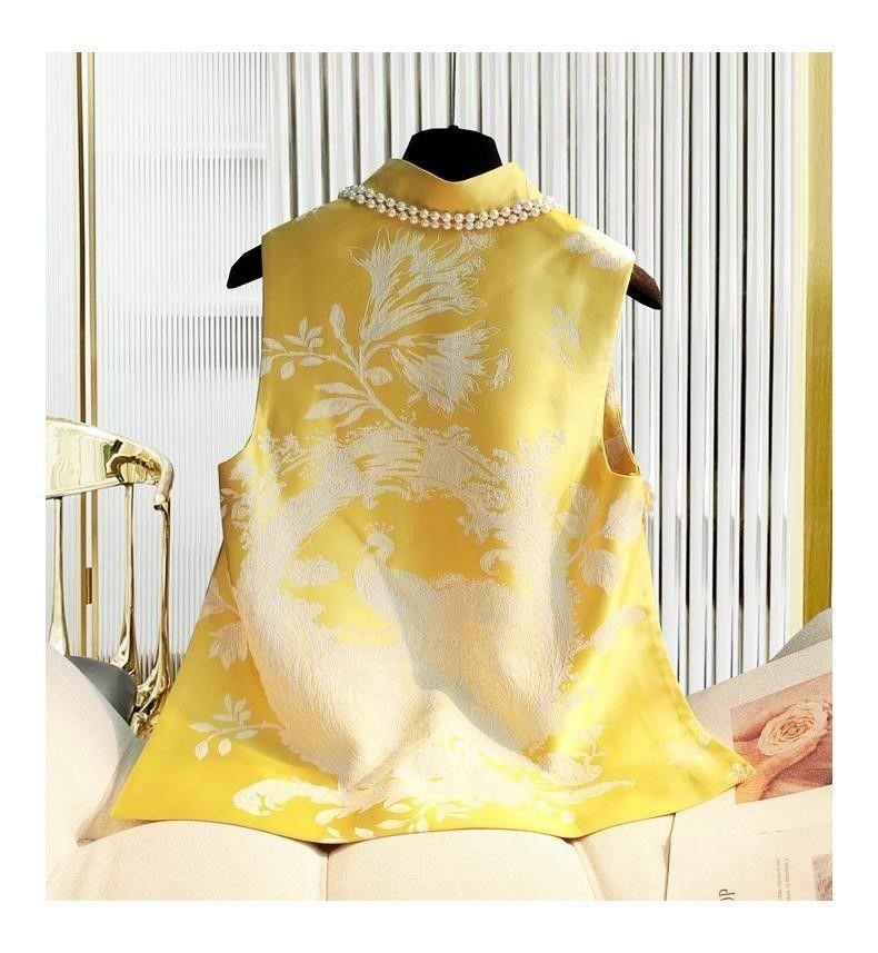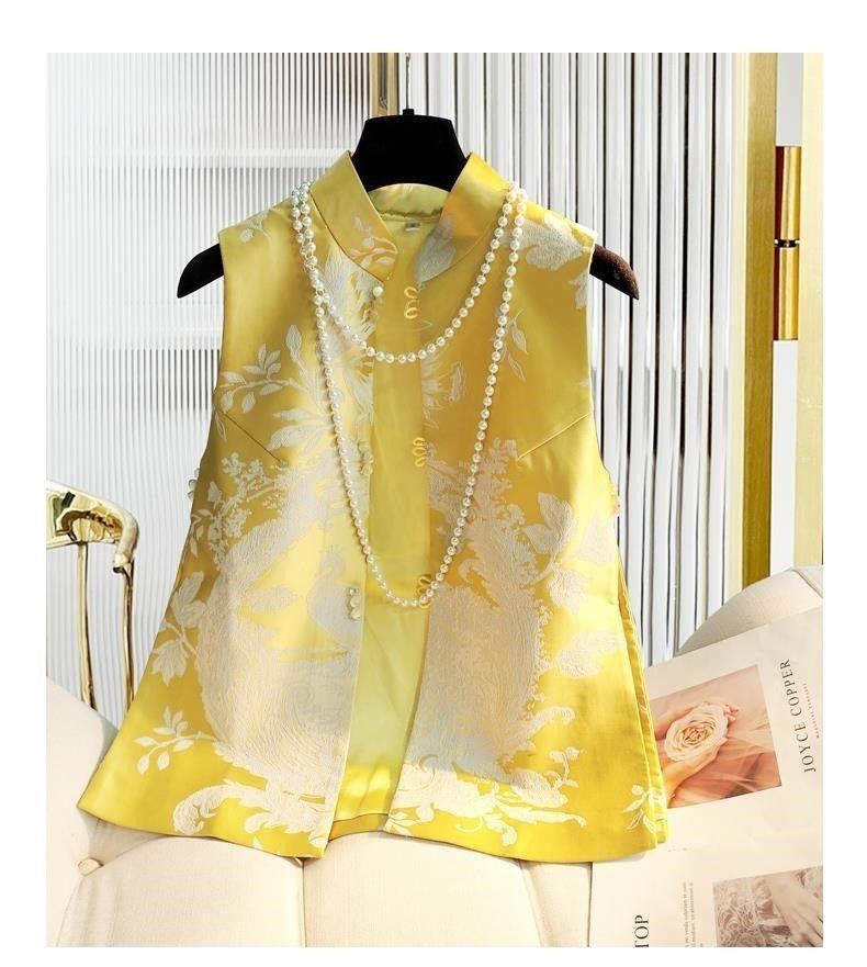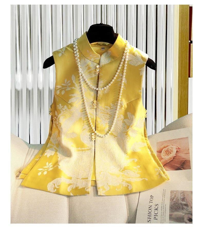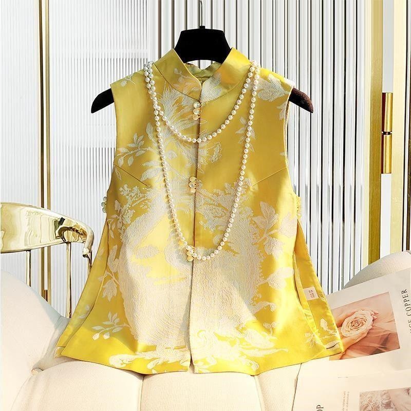 Choice 2026 New Chinese Style National Style Vest for Women, Spring Edition, Retro Qipao Jacquard Silk Slimming Vest, Tang Suit