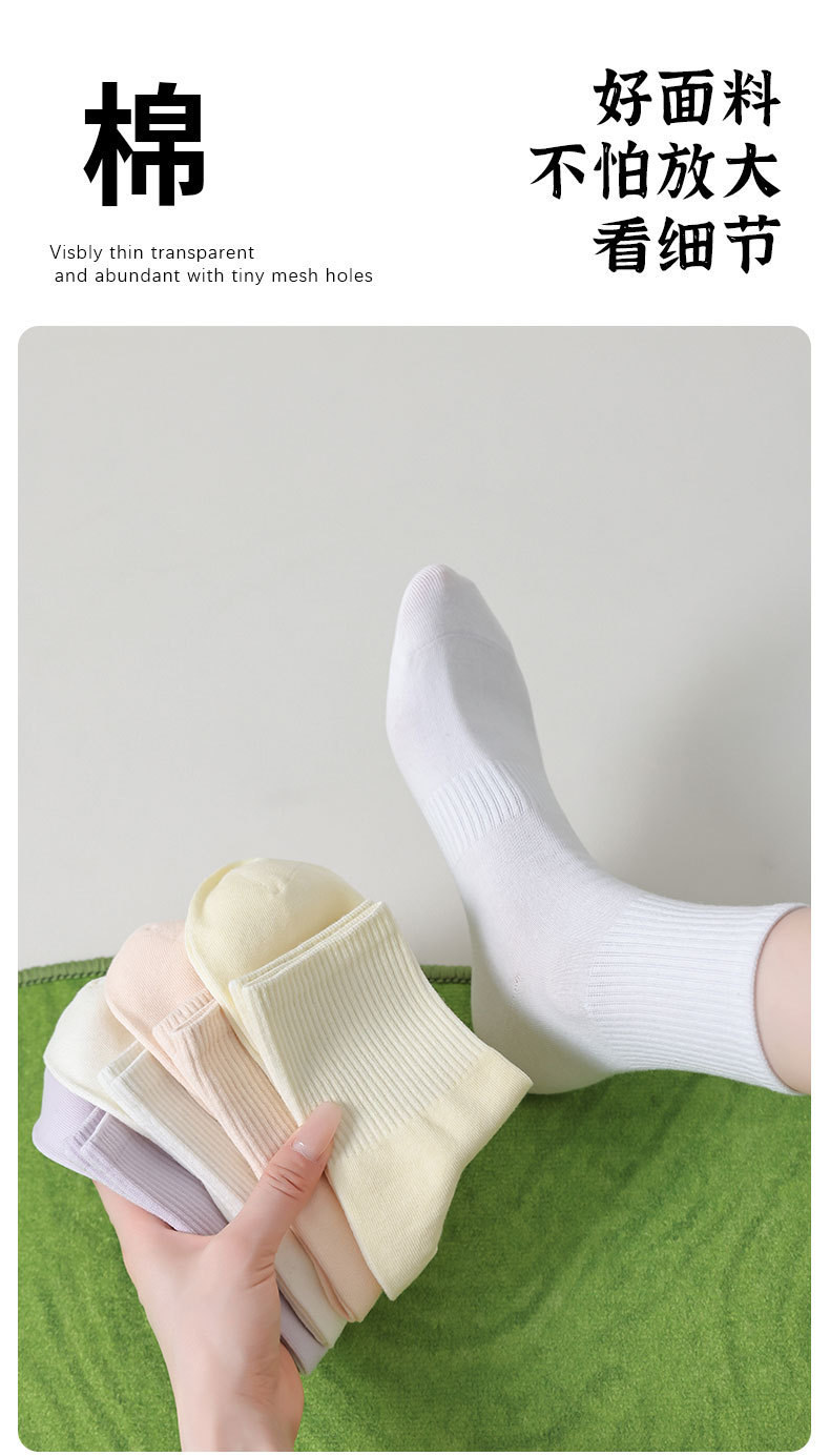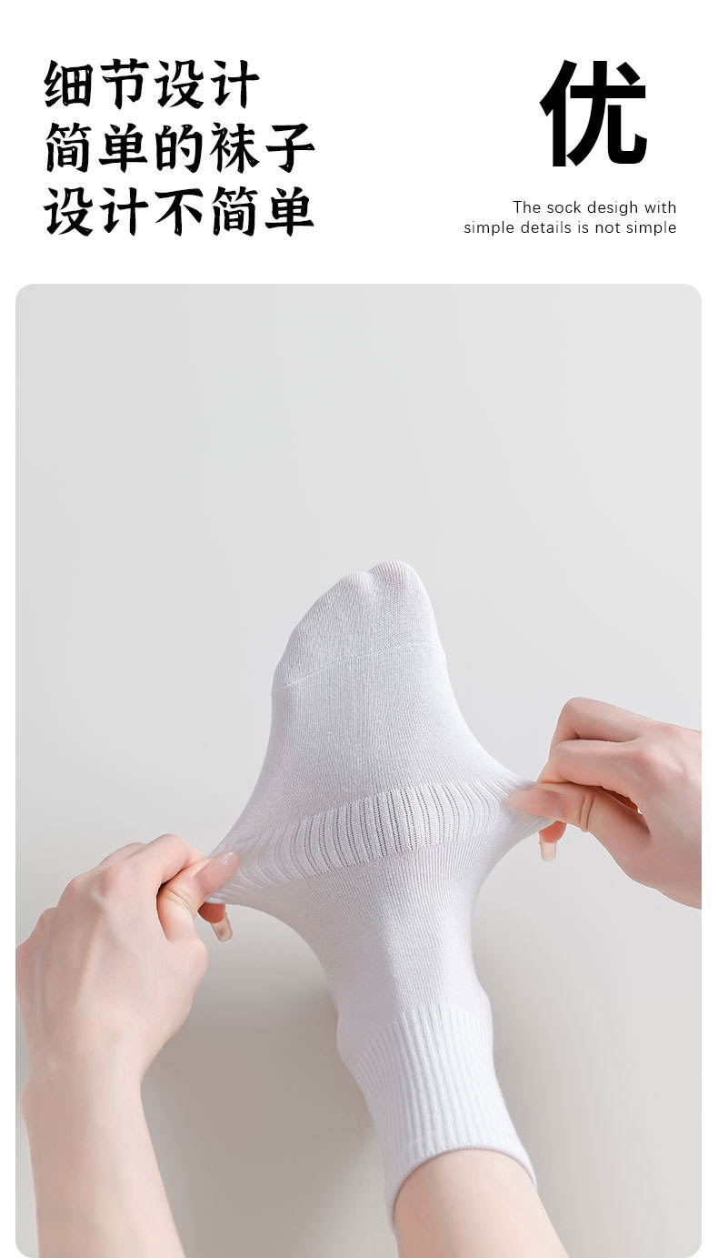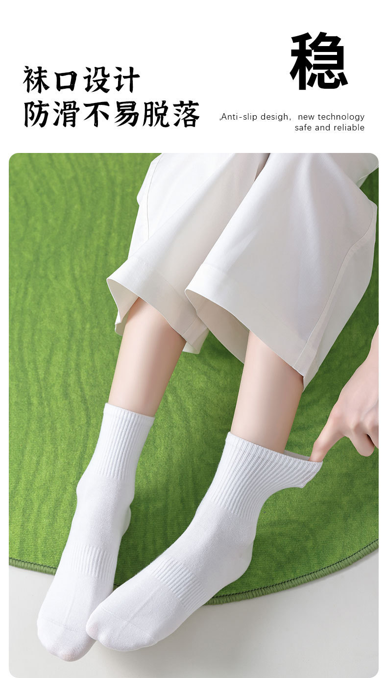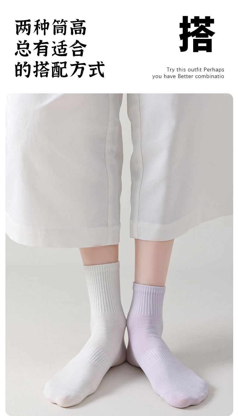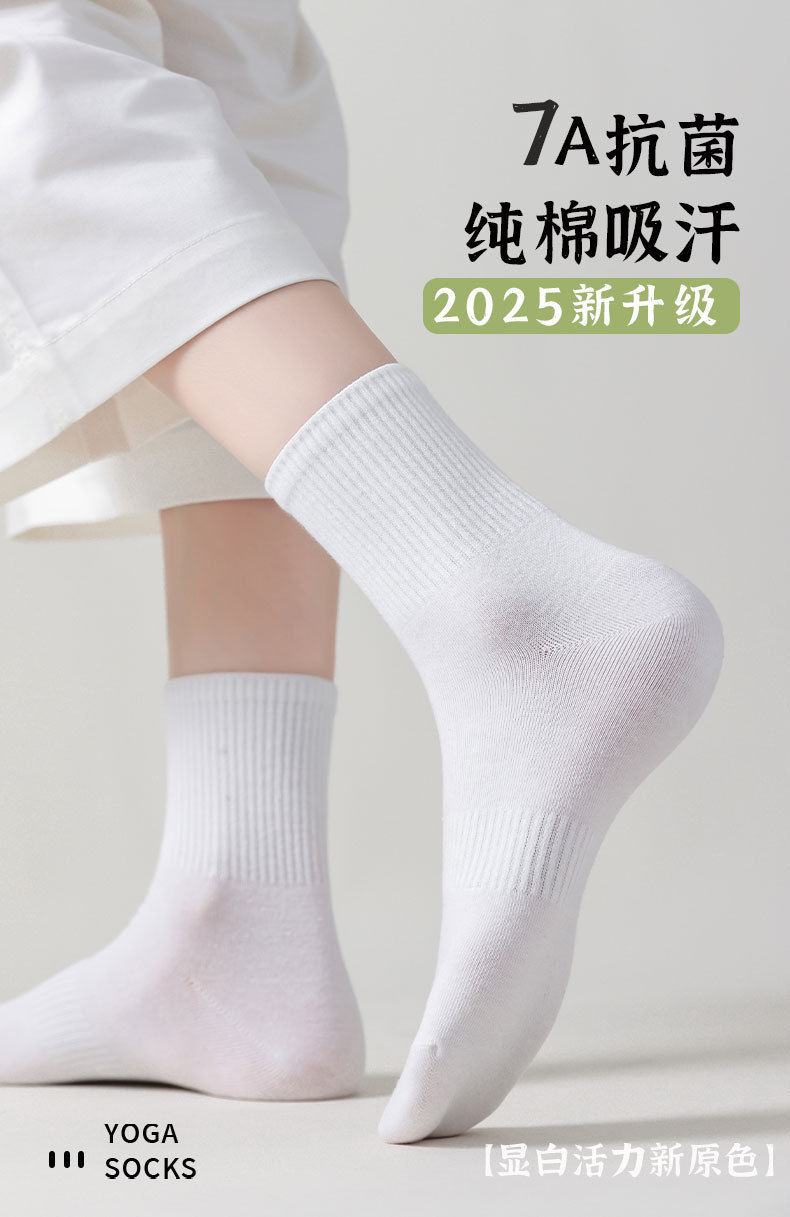 Choice White Socks for Women, Spring and Summer Pure Cotton Mid-Calf Socks, 7A Antibacterial and Deodorant, Spring and Autumn Sports Cotton Socks, Wholesale Zhuji Socks