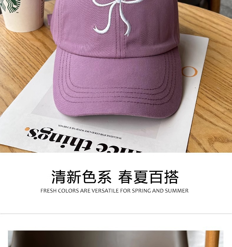 South Korea Ins Style Baseball Cap Girl's Bow Sweet Cute Romantic Pink Hat All-Match Soft Top Cap