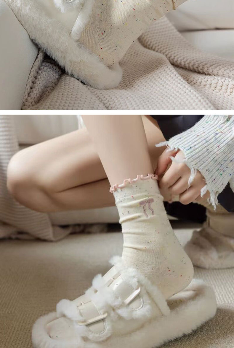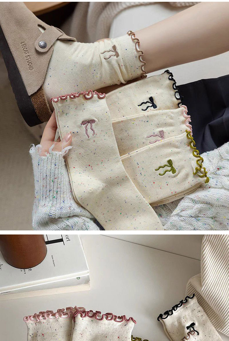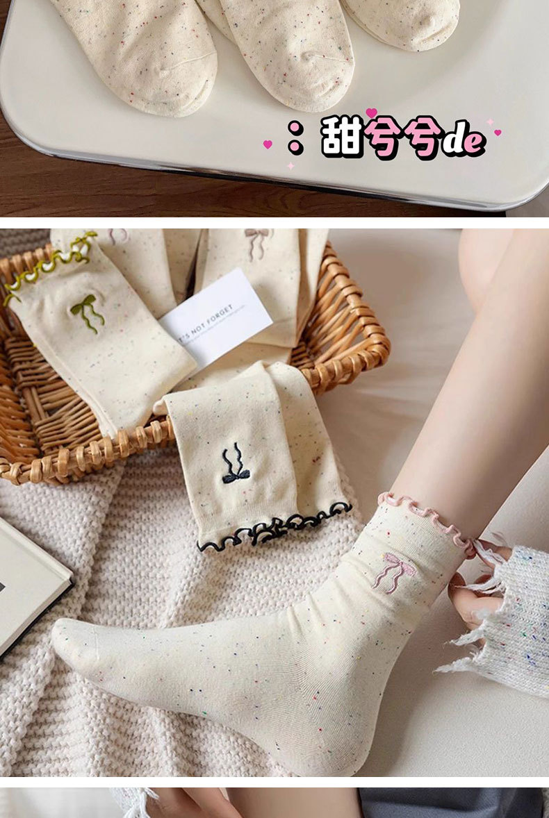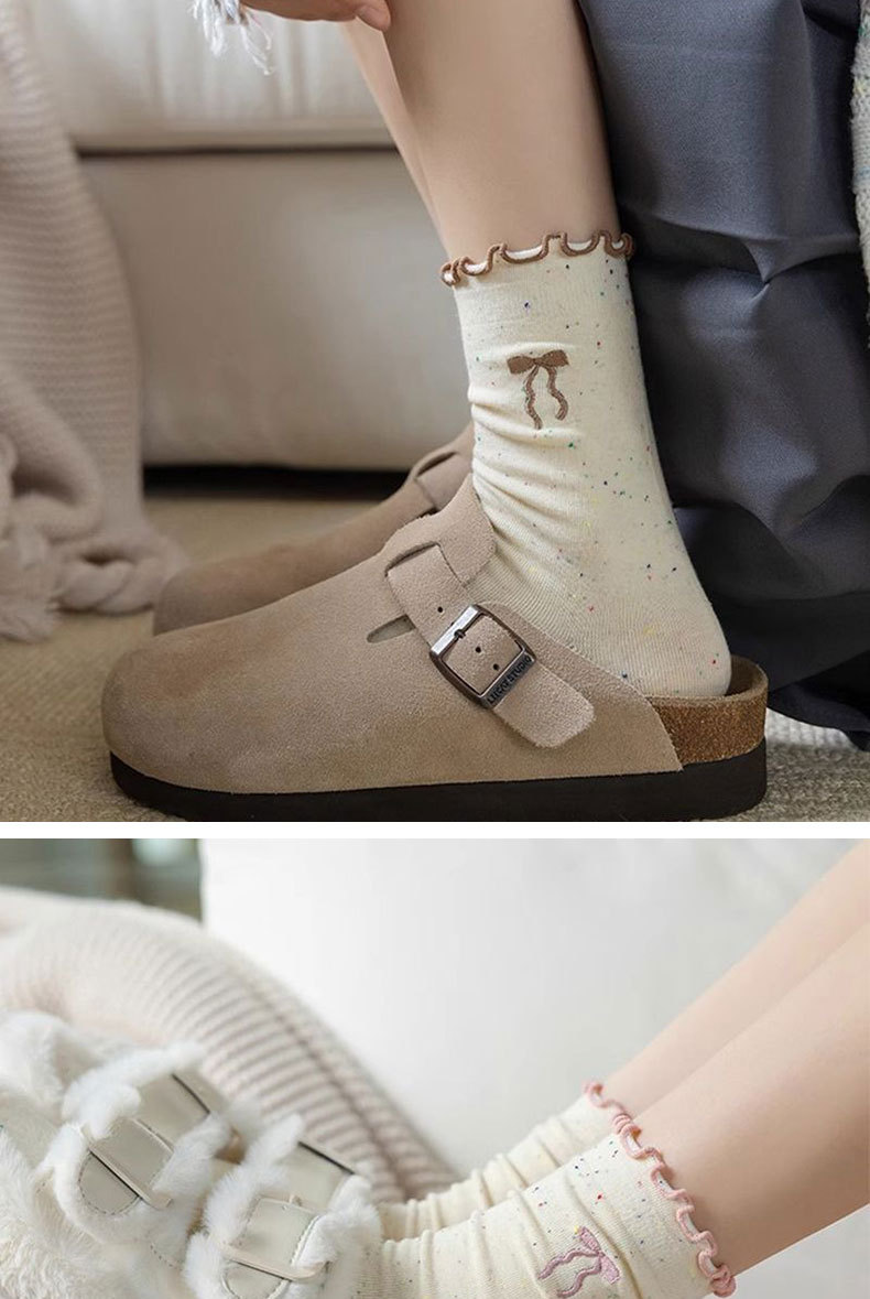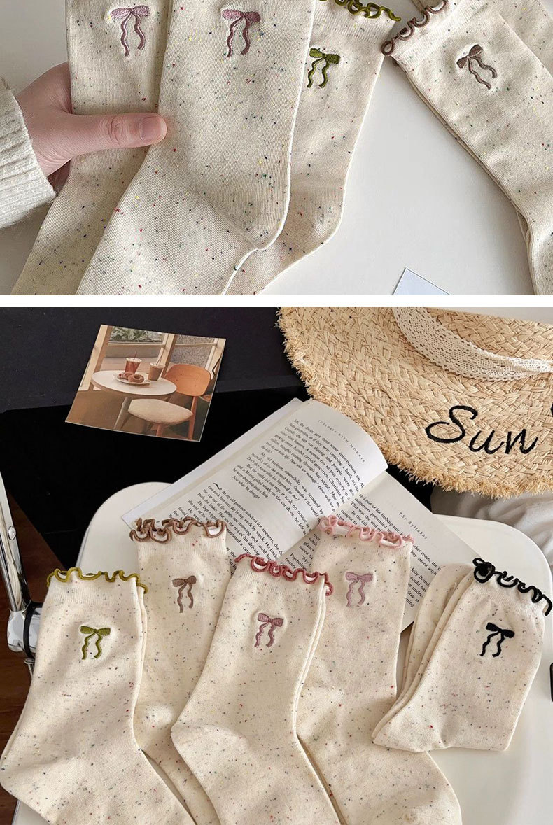 [5 Pairs of Benefits] Cute and Breathable Socks with Fungus Edges, Spring & Fall Style Fungus Edge Bow Socks