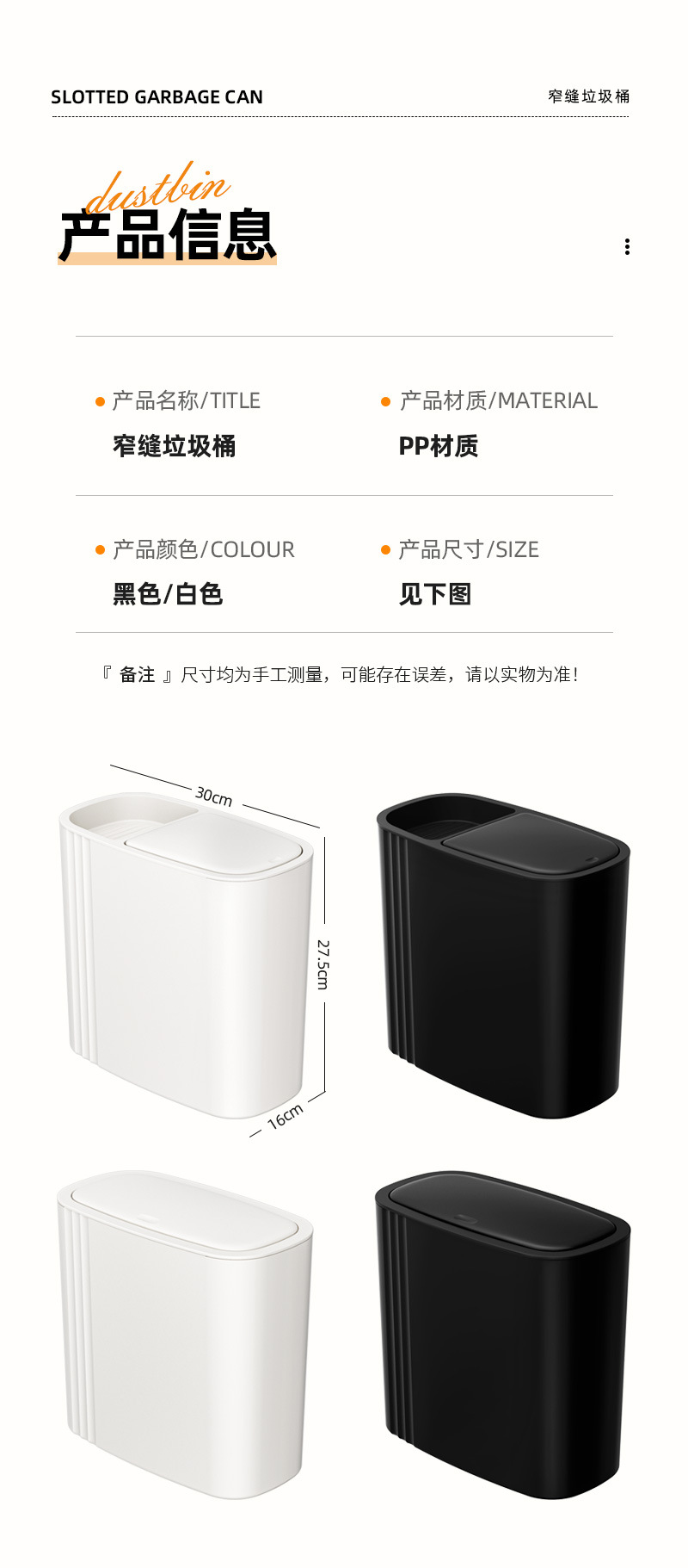 Source Factory Customized Oem Bathroom Gap Trash Can with Lid for Home Kitchen Gap Without Lid Trash Can