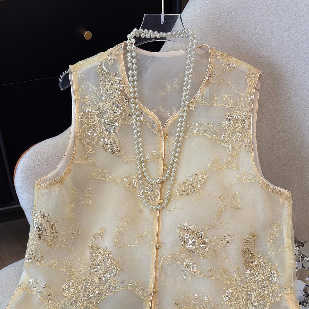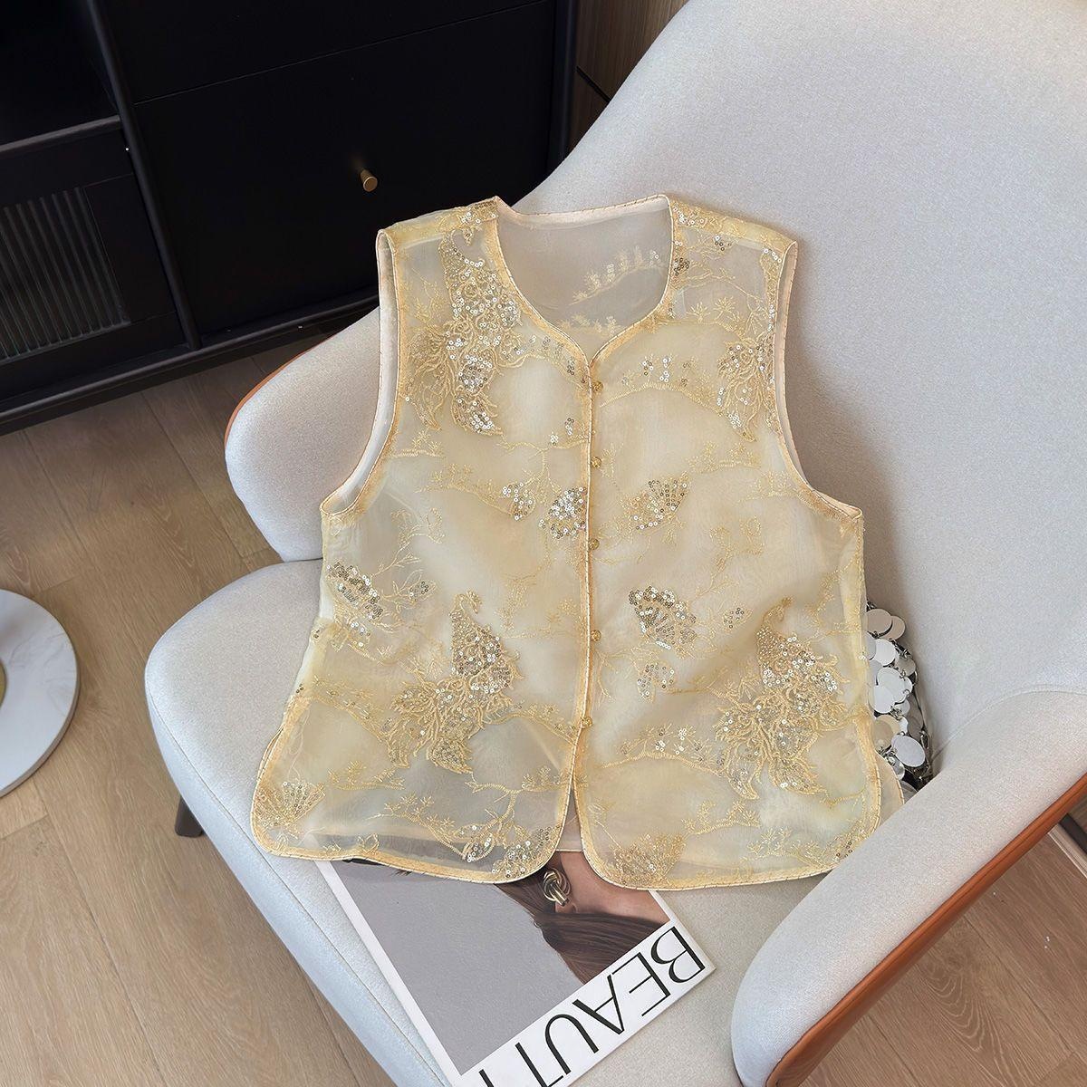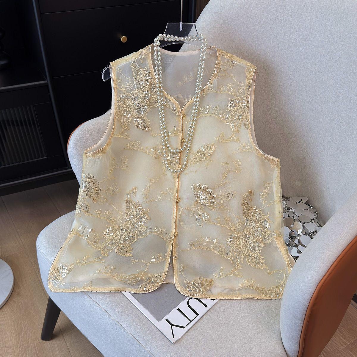 Choice New Chinese Style Chinese Style Vest National Style Vest Women's Retro Sleeveless Thin Heavy Industry Lace Vest Women's Summer