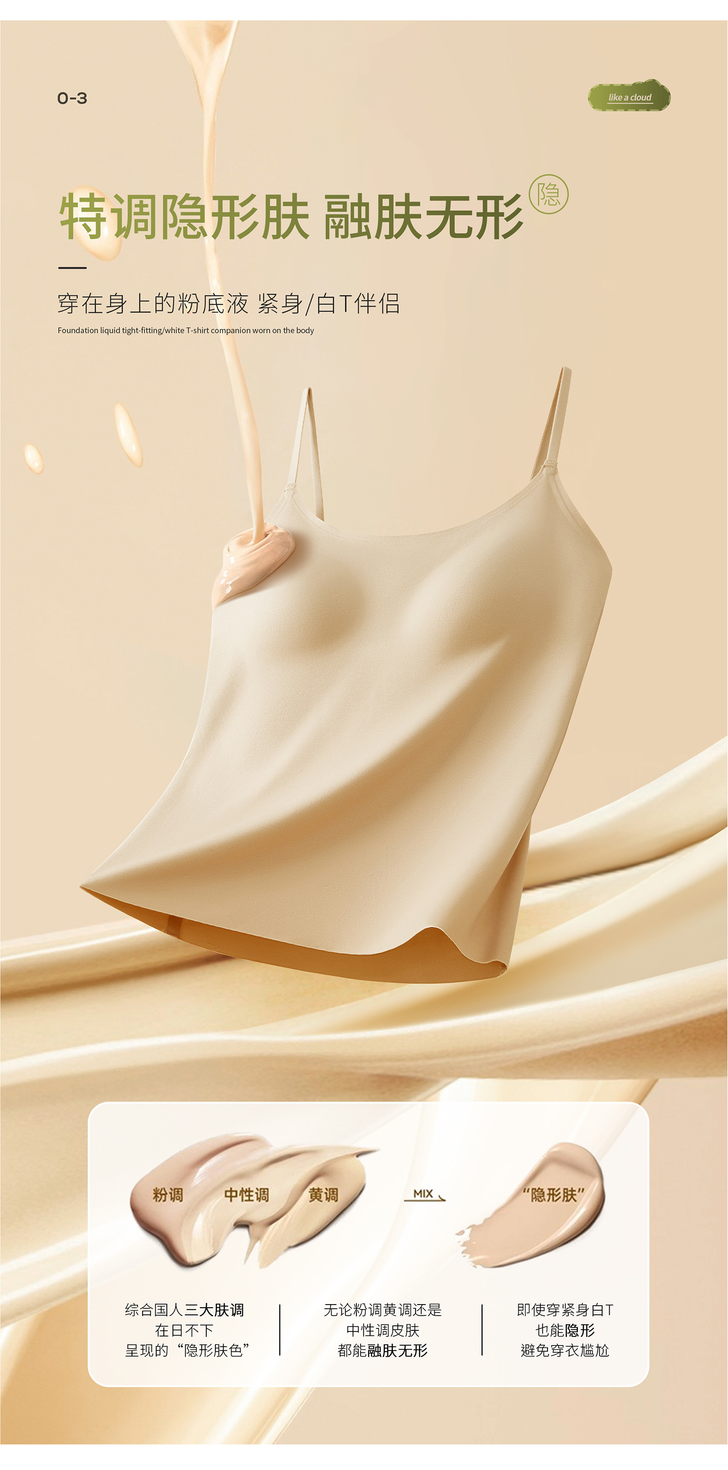 Choice Liquid Foundation Invisible Camisole Long Slim-Fit Backless Inner Wear Outer Wear Base Layer Women's Seamless Simple Bra