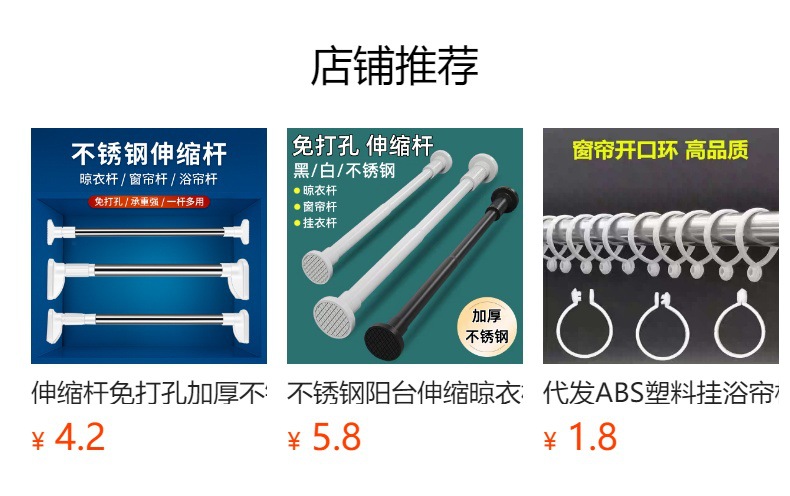 Built-In Spring Punch-Free Telescopic Rod Stainless Steel Clothes Drying Rod Curtain Rod Wardrobe Clothes Hanging Rod Shower Curtain Rod Door Curtain Rod