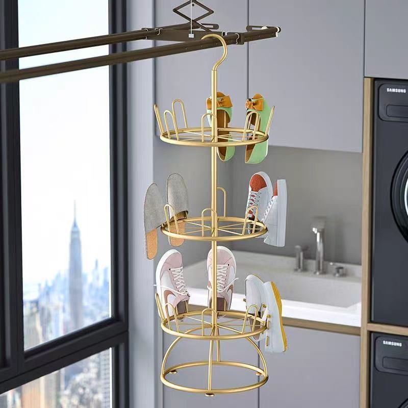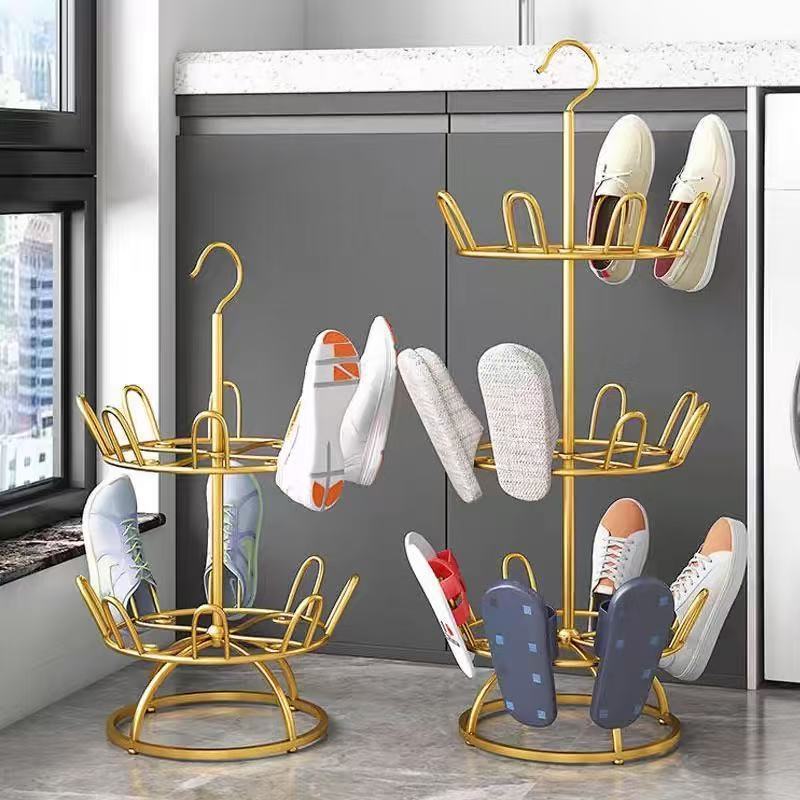 Choice Household Shoe Drying Artifact Rotating Multi-Layer Floor-to-Floor Wrought Iron Outdoor Slippers Shoe Rack for Balcony Multi-Function Drying
