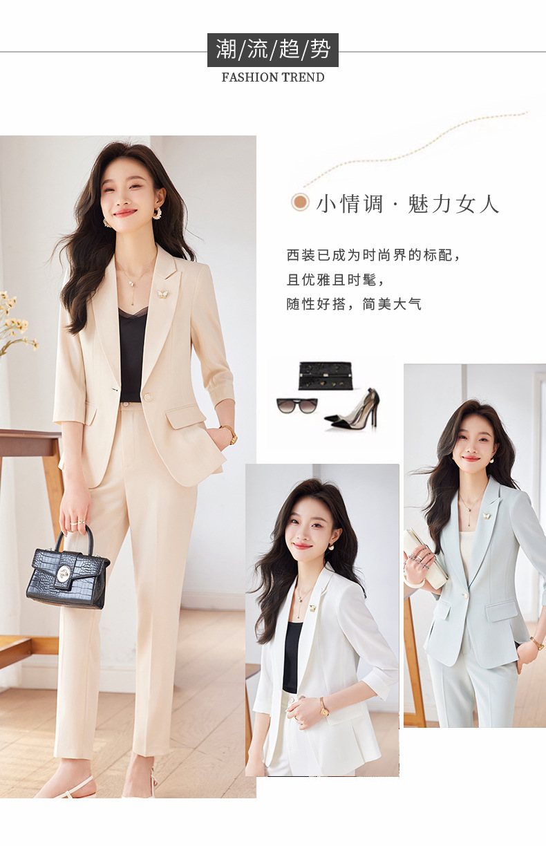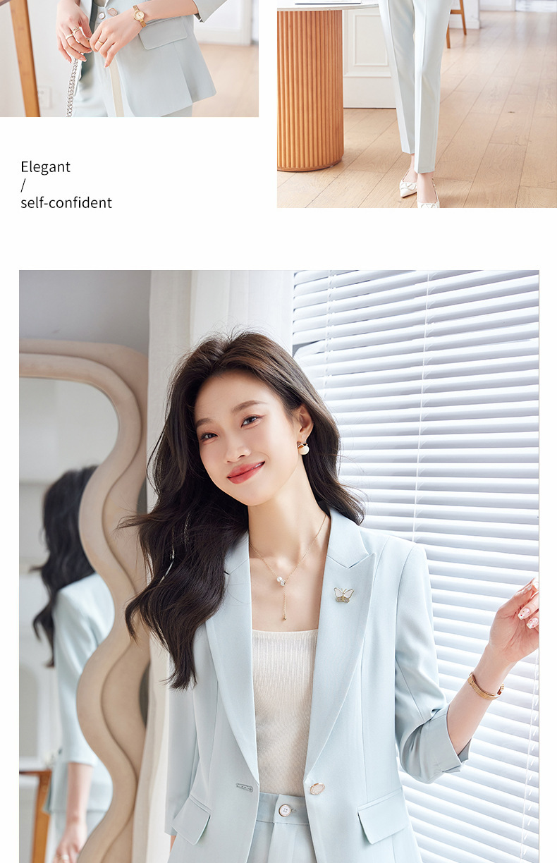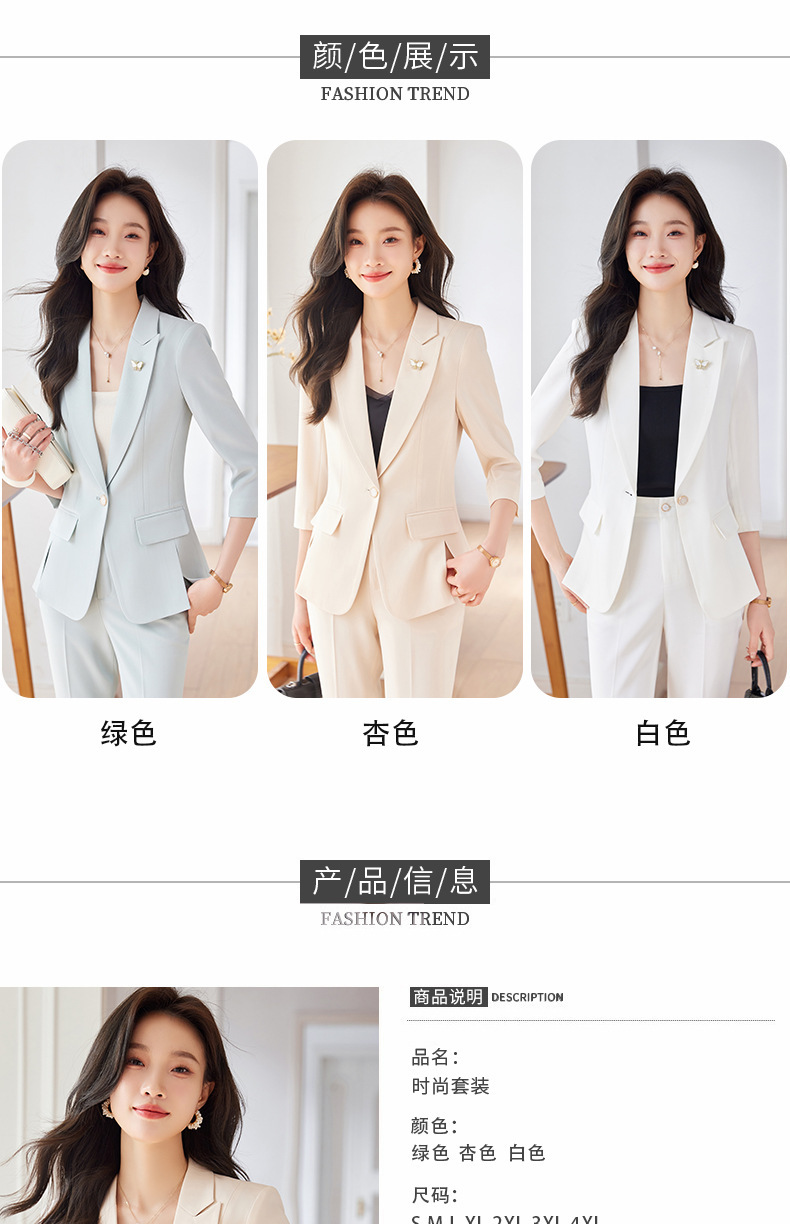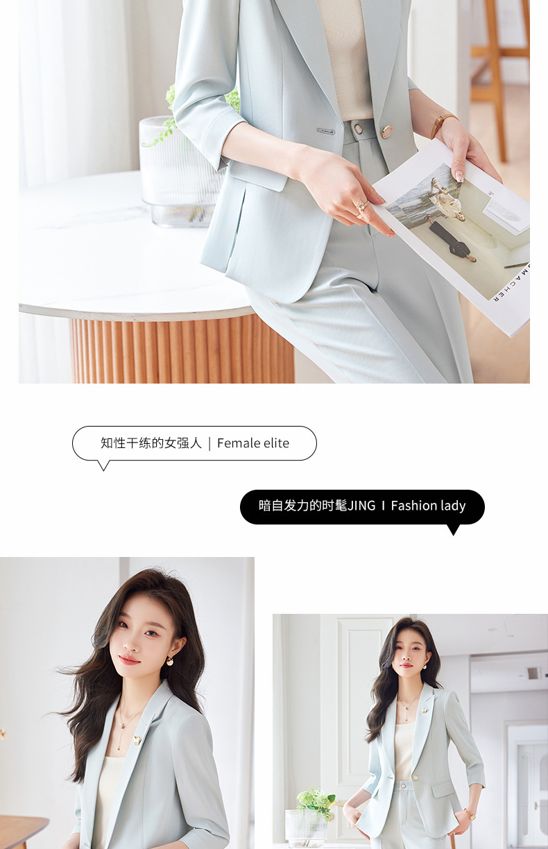 Choice 2025 Spring and Summer New Green Three-Quarter Sleeve Professional Simple Small Suit Collar Jacket Women's Pants Fashion Suit