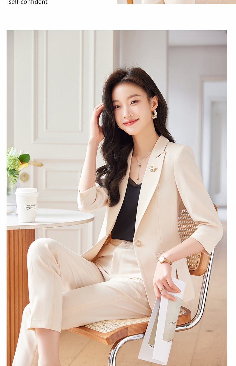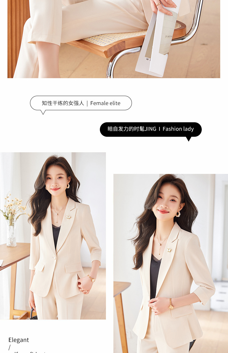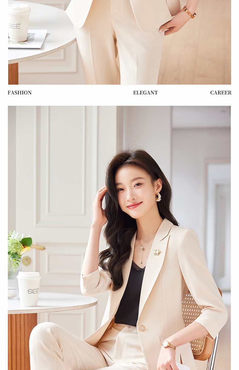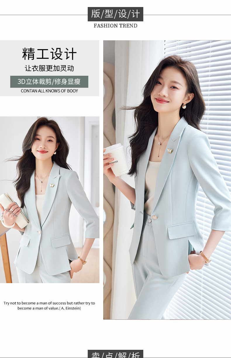 Choice 2025 Spring and Summer New Green Three-Quarter Sleeve Professional Simple Small Suit Collar Jacket Women's Pants Fashion Suit