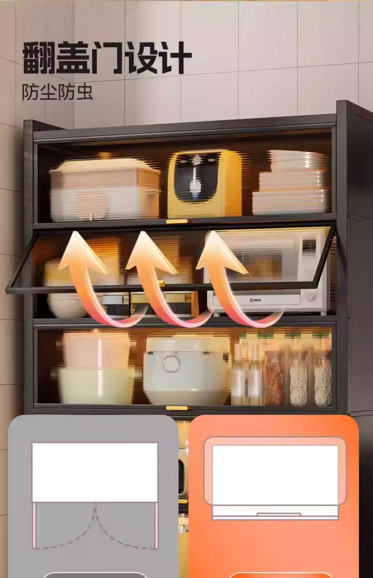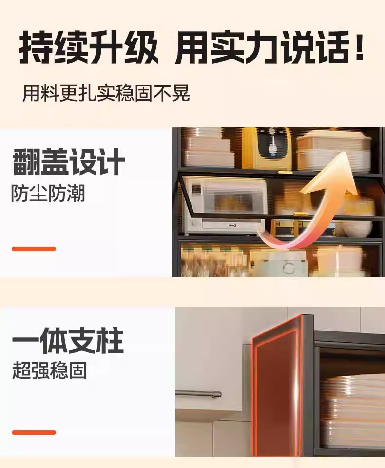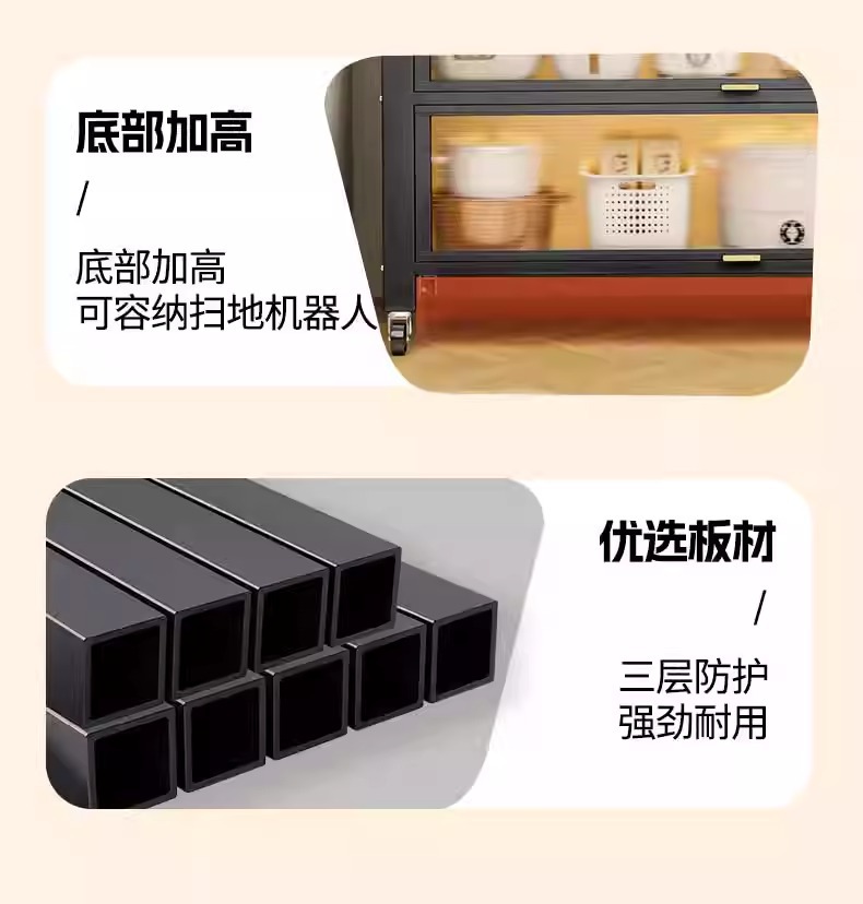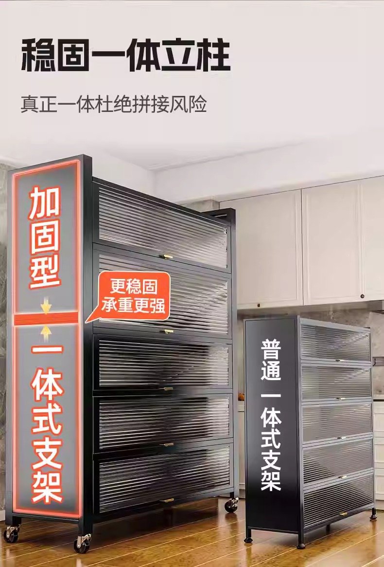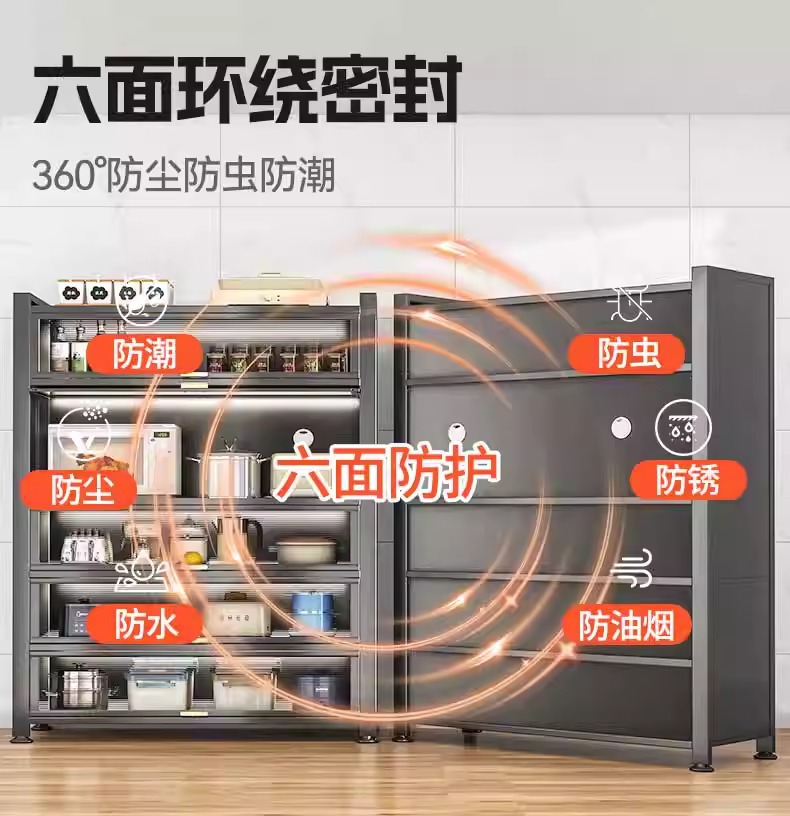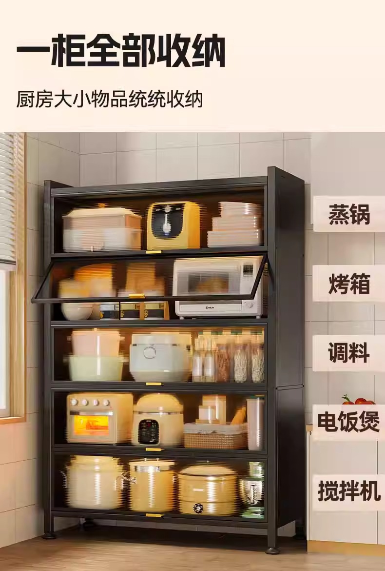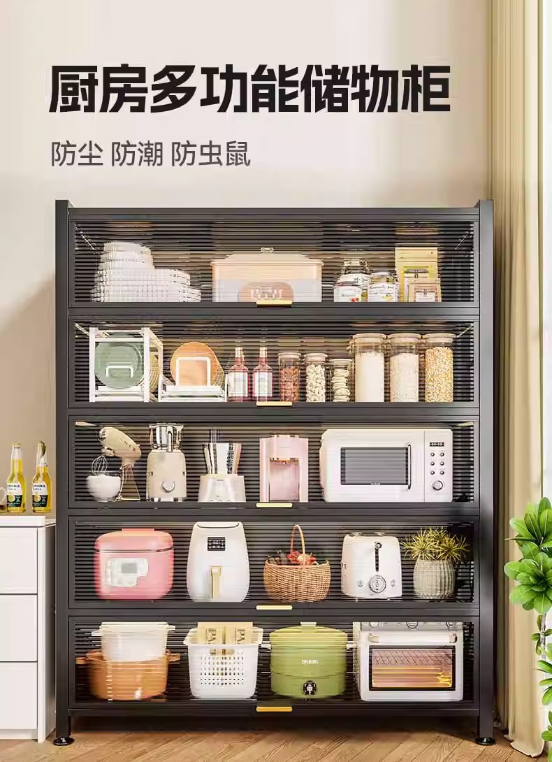 Kitchen Dust-Proof Cabinet Storage Rack Floor-Standing Multi-Layer Home Dining Side Cabinet Wall-Mounted Integrated Storage Cabinet Pot Storage Cabinet