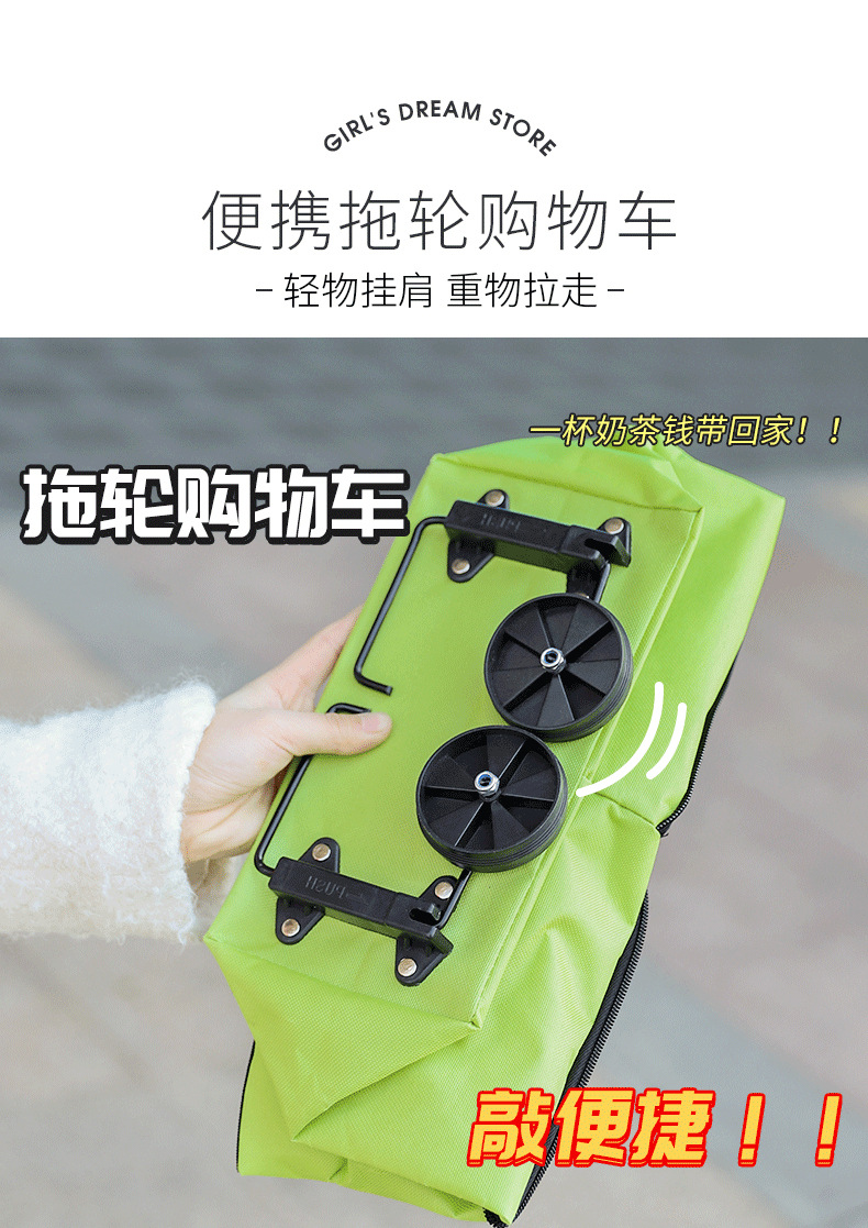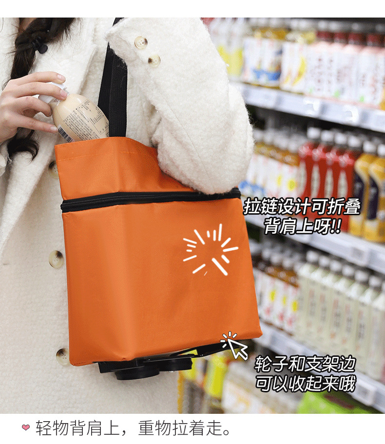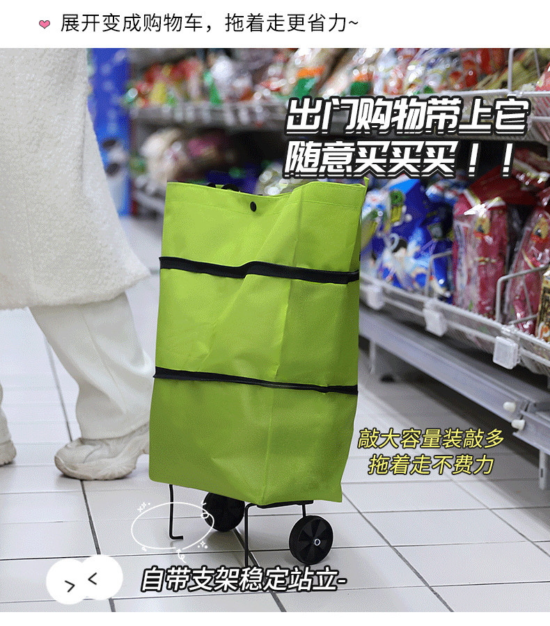 [New Product with Free Shipping] Shopping Bag with Wheels, Portable Grocery Shopping Cart, Foldableable Tug, Large Capacity for Women