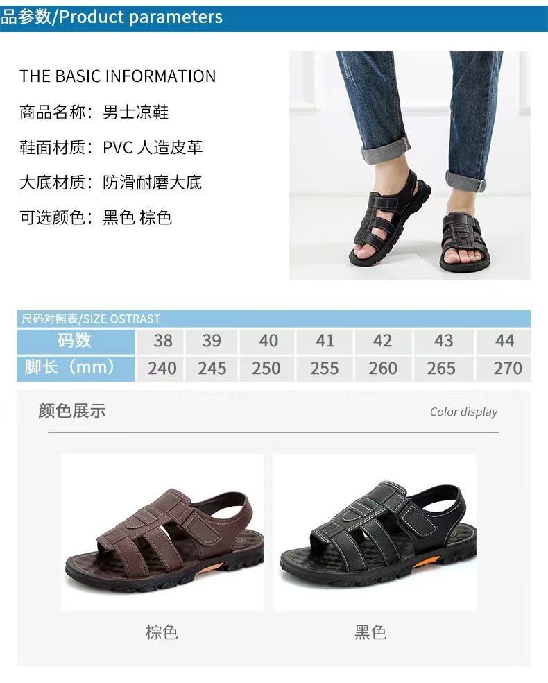 Cid Popular Size Men's Sandals, Wear-Resistant, Non-Slip, Waterproof Beach Shoes, Driving to Work, Large Size Sandals and Slippers for Men