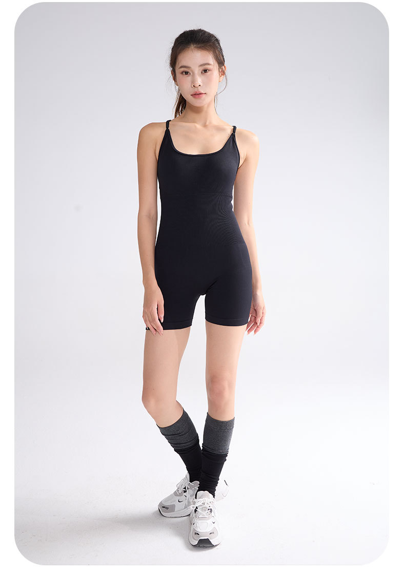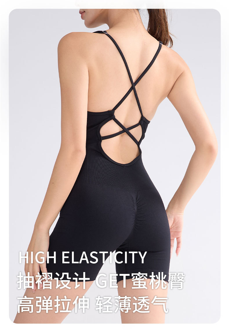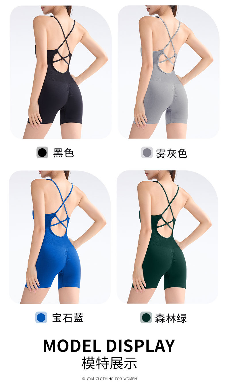 One-Piece Sleeveless Backless Yoga Suit Cross-Back Yoga Jumpsuit Sports Fitness Jumpsuit with Chest Pad