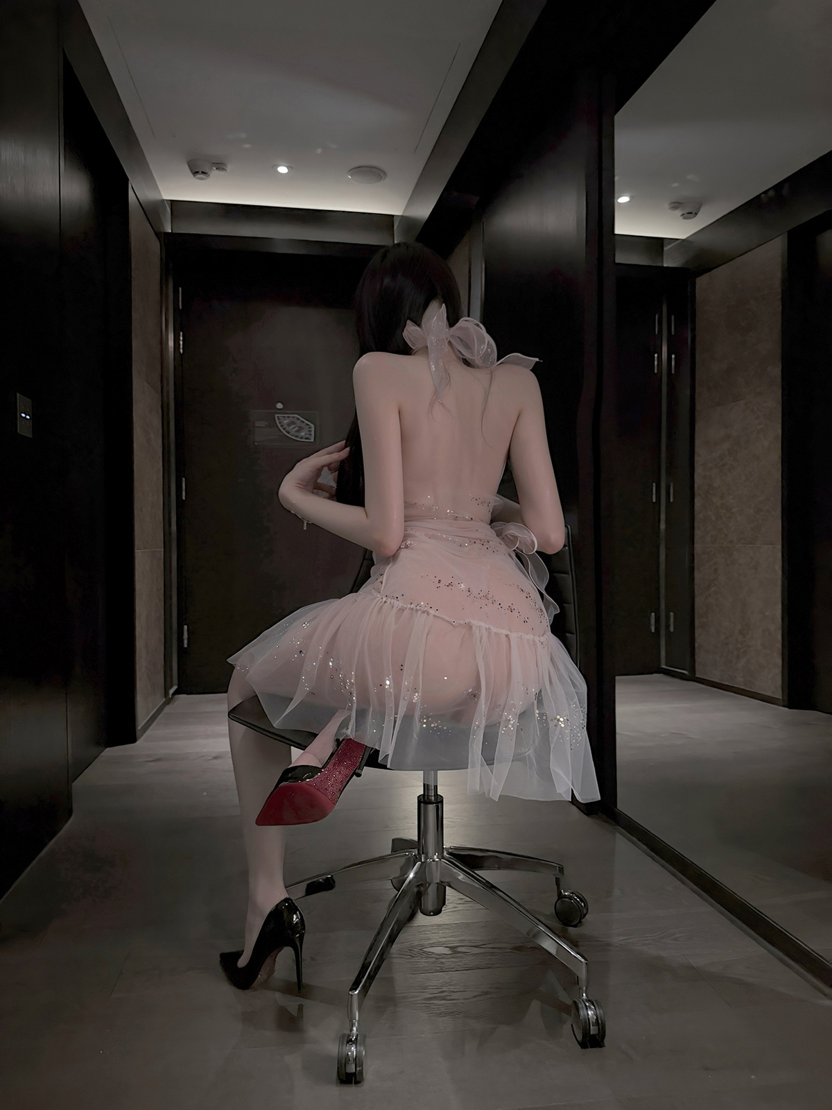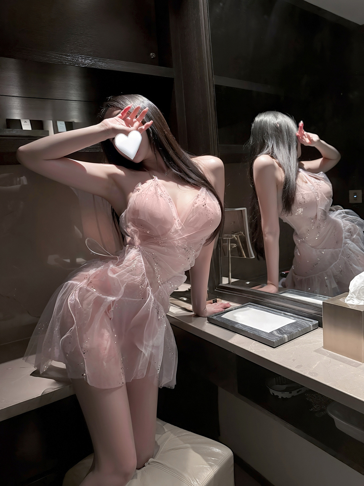Sexy Lingerie with a Halter Neck, Deep V, Sheer, Light Mint Leaf Lace, Fine Sequins, and Soft Gauze Nightdress 9311