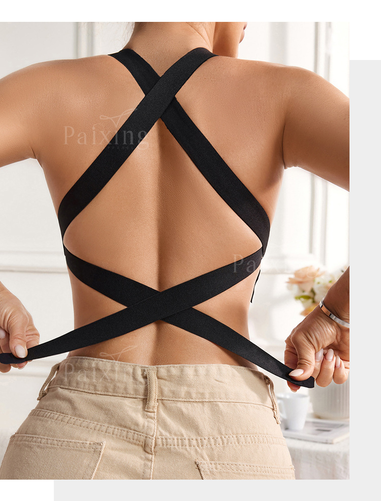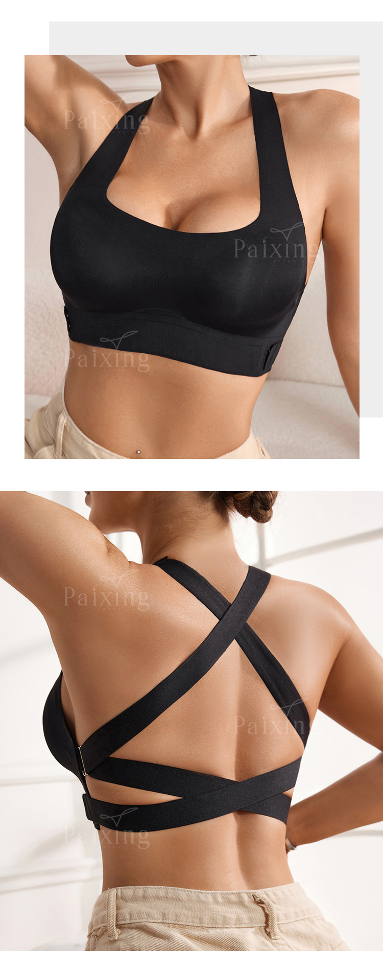 Choice Side-Opening Buckle Side Gathering Women's Wire-Free Bra Personalized Cross-Strap Seamless Thin Breathable Sports Bra