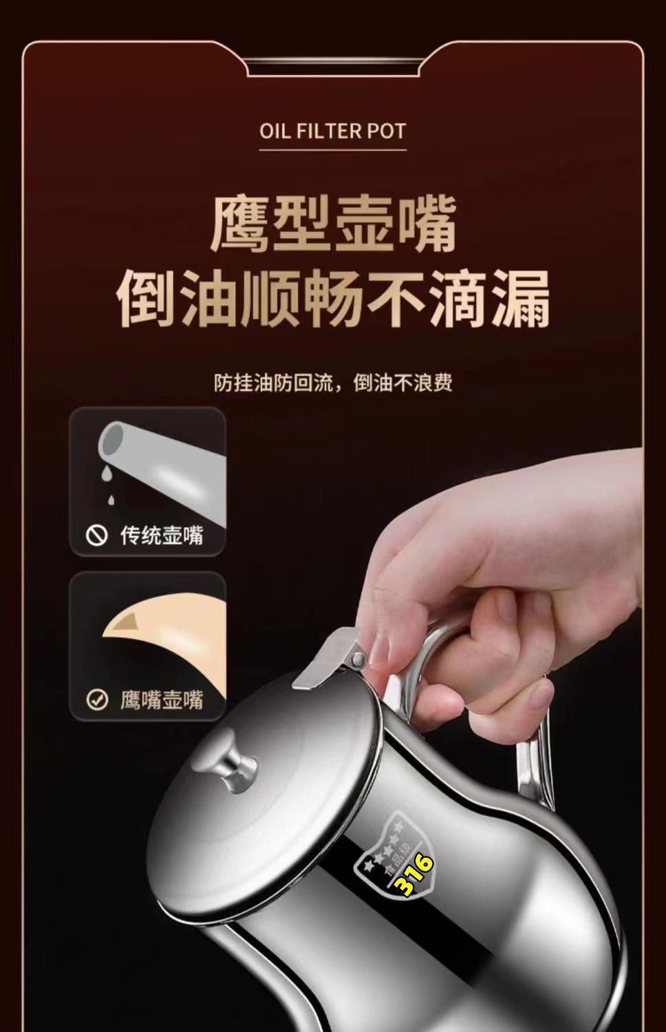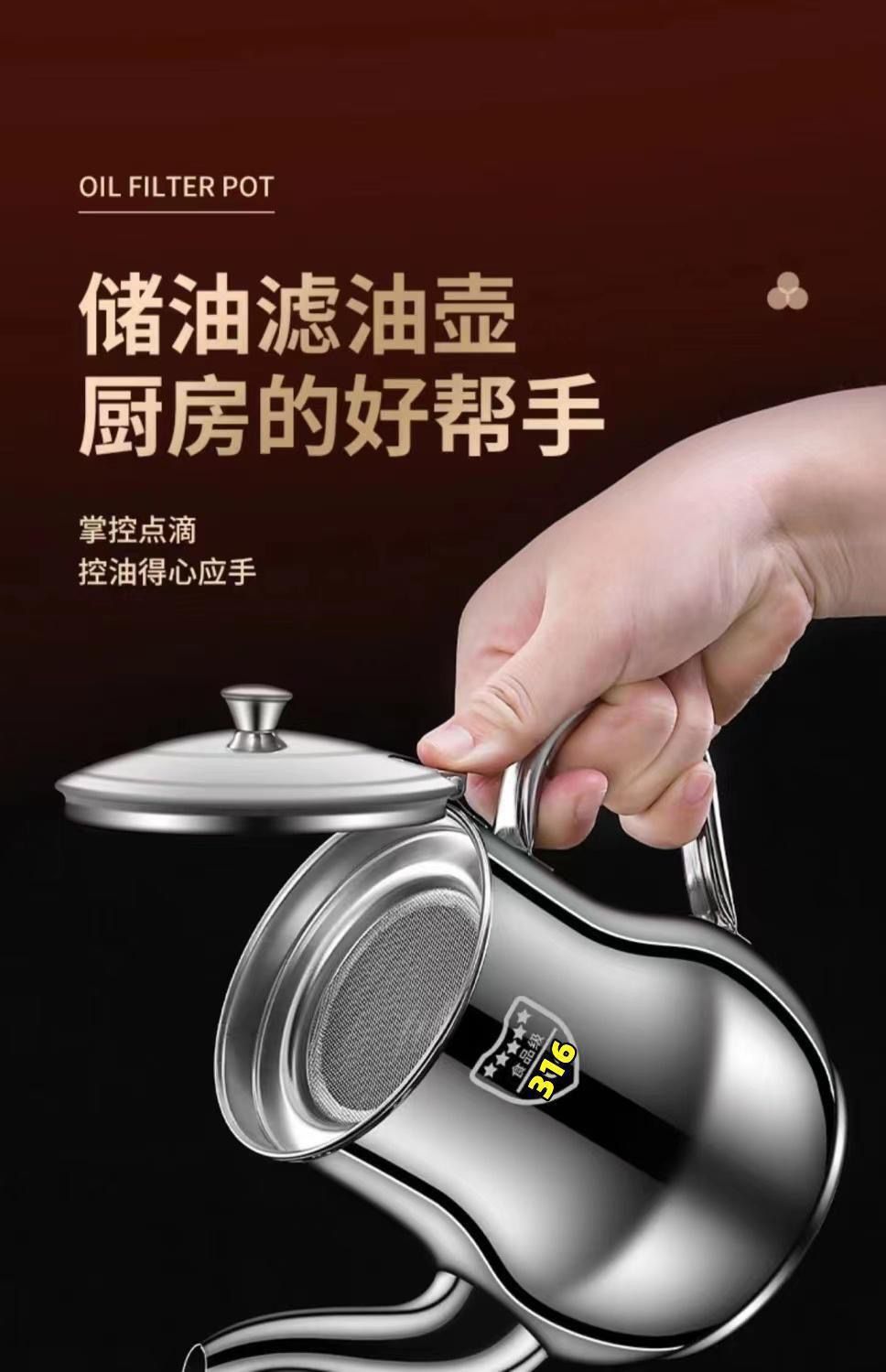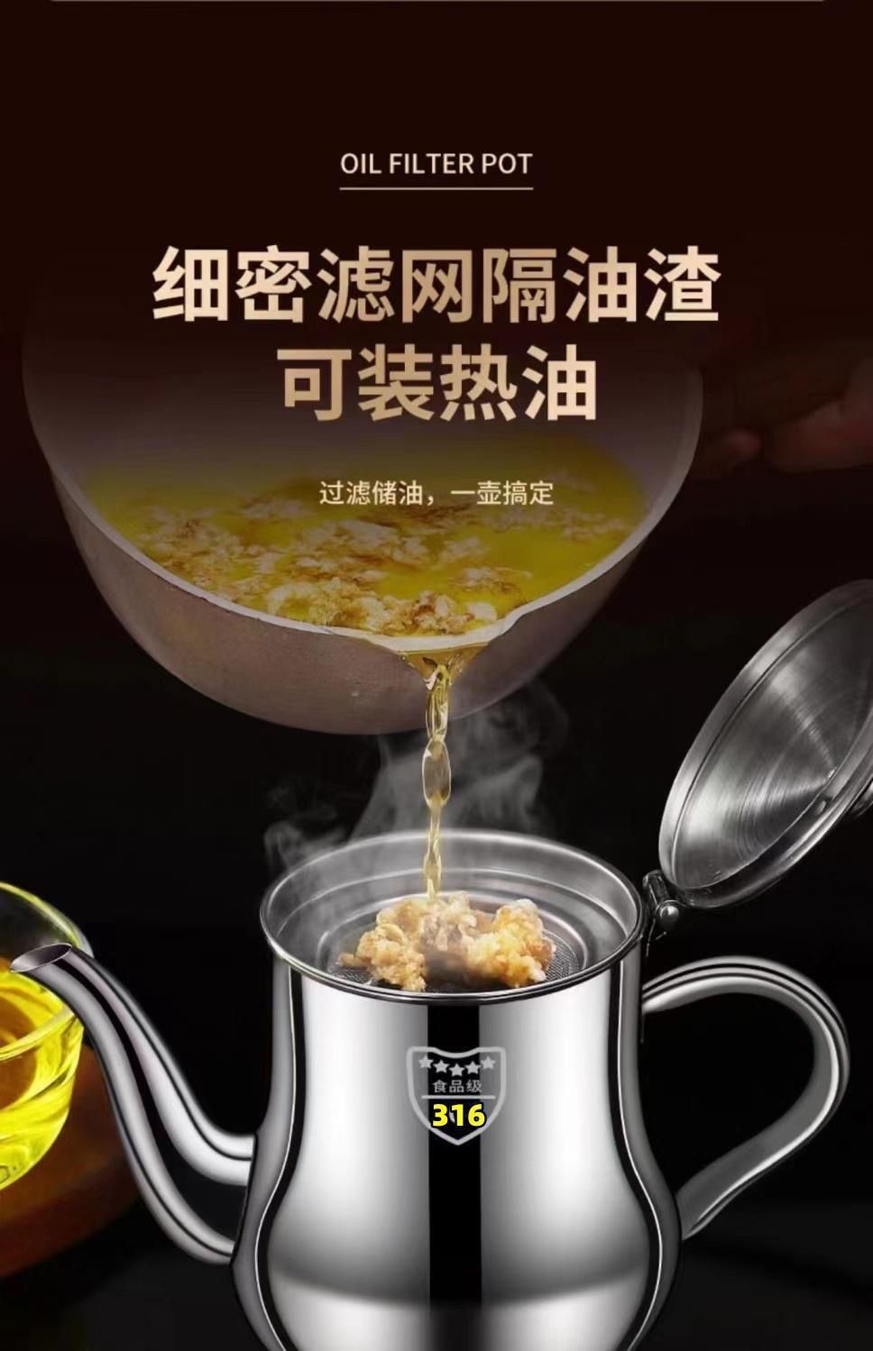 Choice Filter Oil Pot 316 Stainless Steel Oil Pot Household Leak-Proof Ounce Pot Pouring Oil Bottle Seasoning Bottle Kitchen Oil Tank