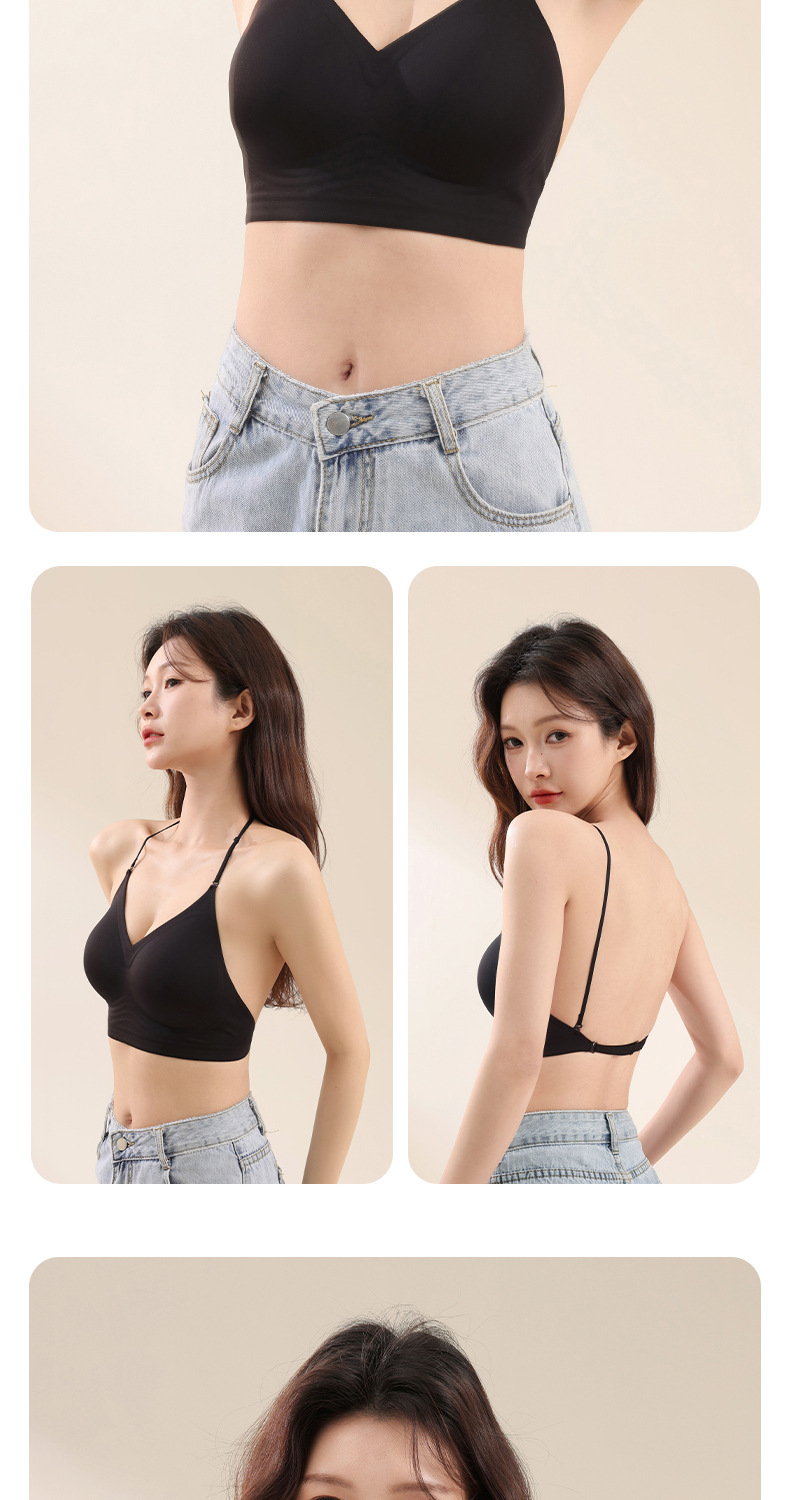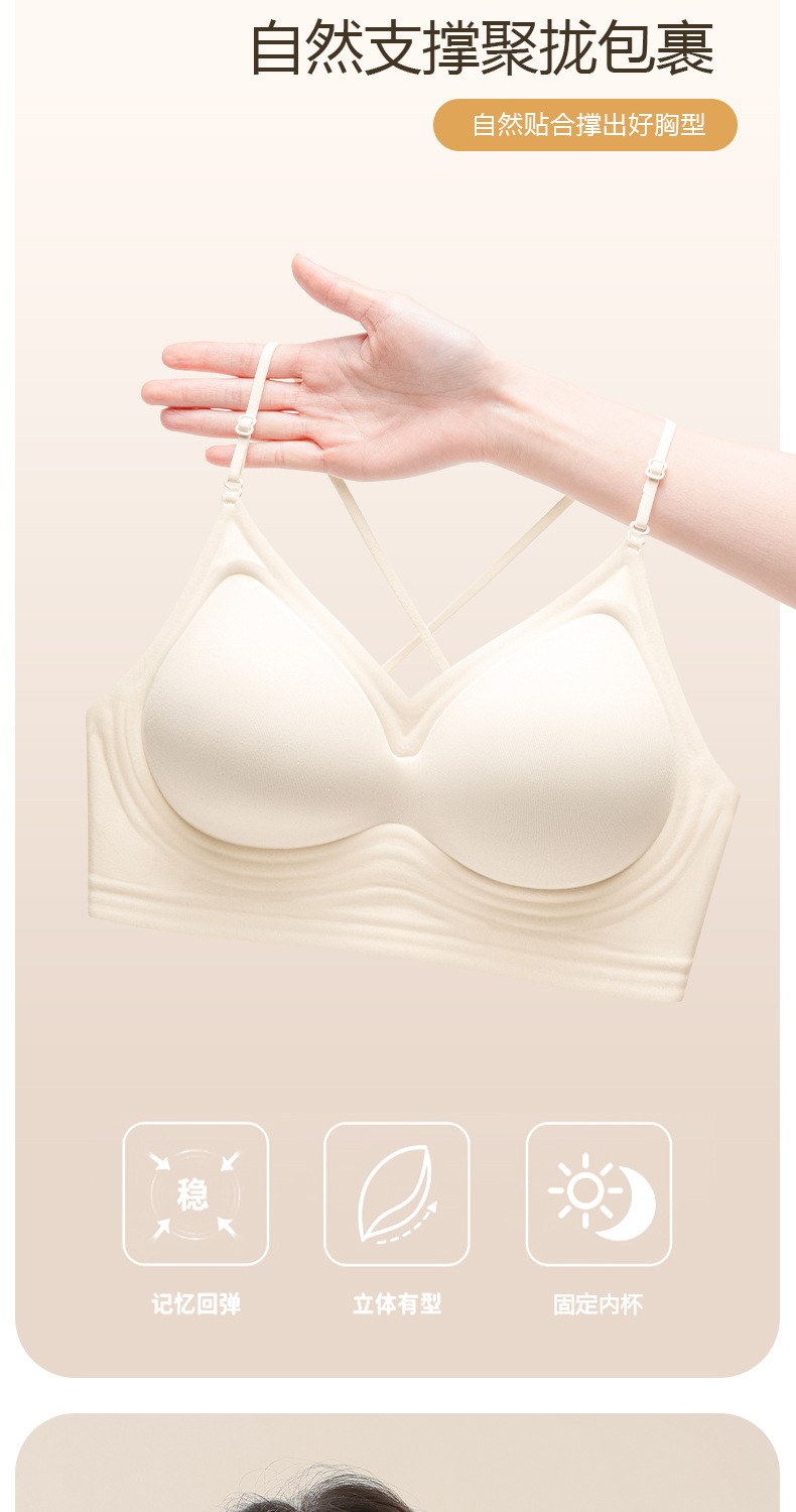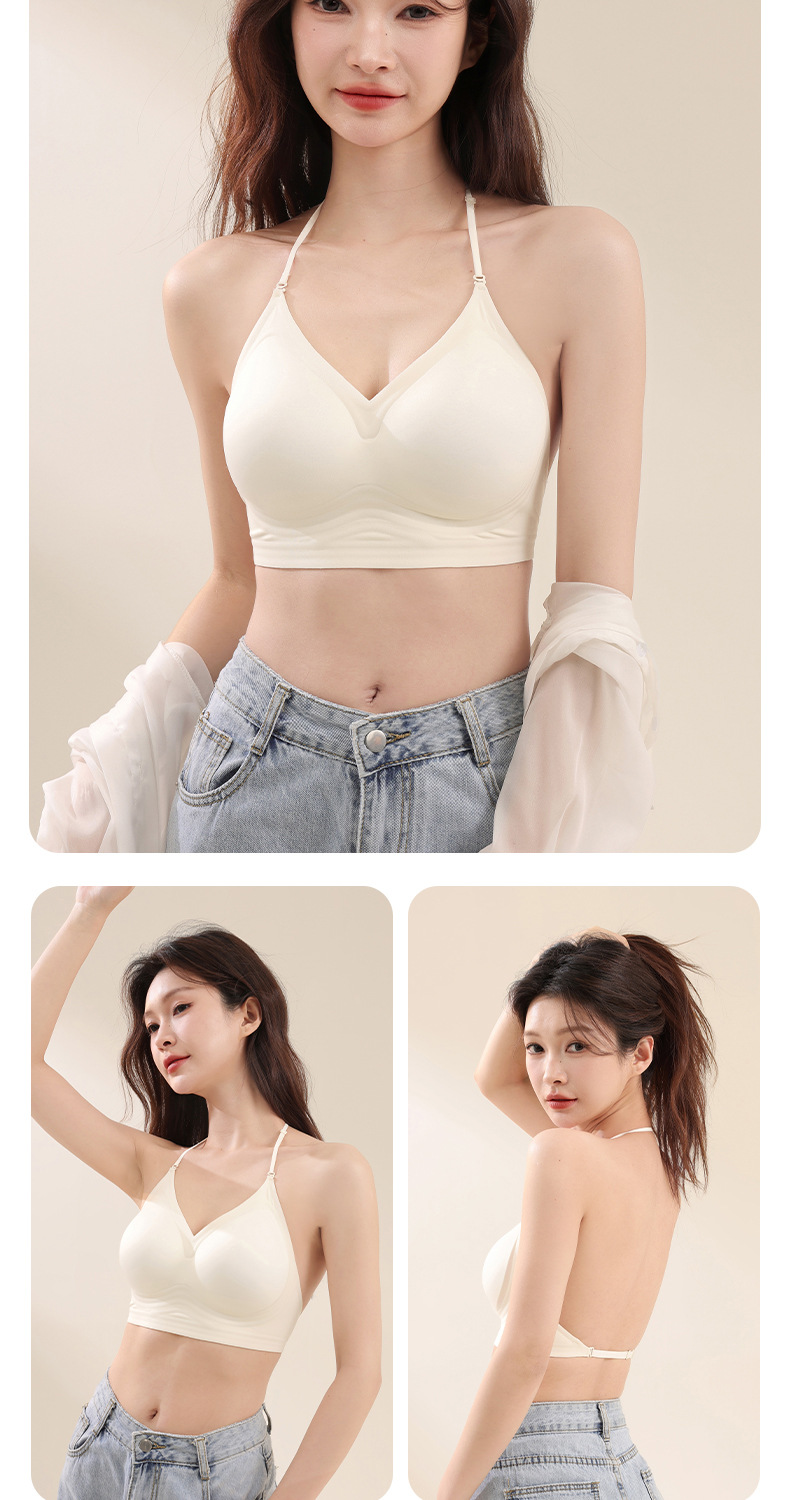 Deep U Backless Invisible Seamless Bra for Women, Cross-Back, Thin, Soft Support, Wireless Push-Up Bra