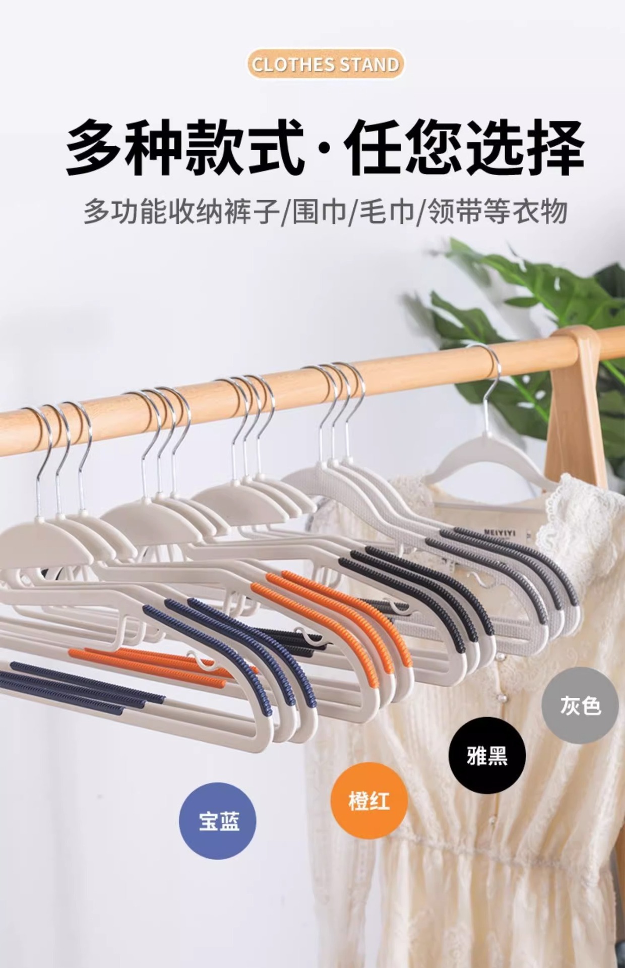 Clothes hangers, trouser racks, tie racks