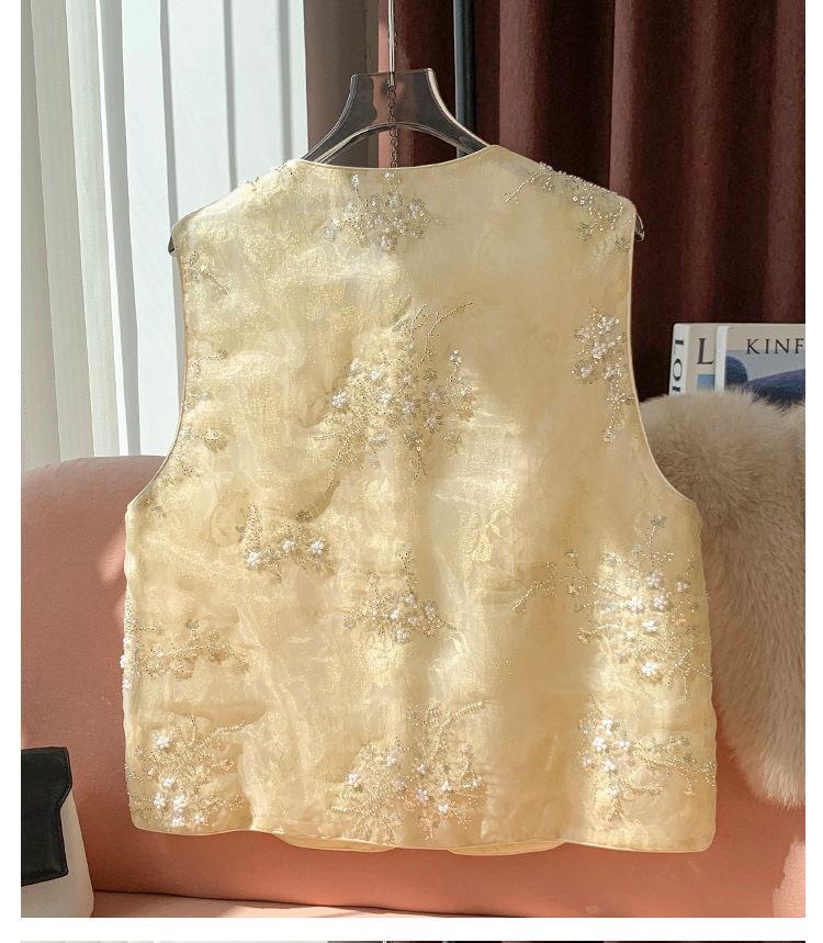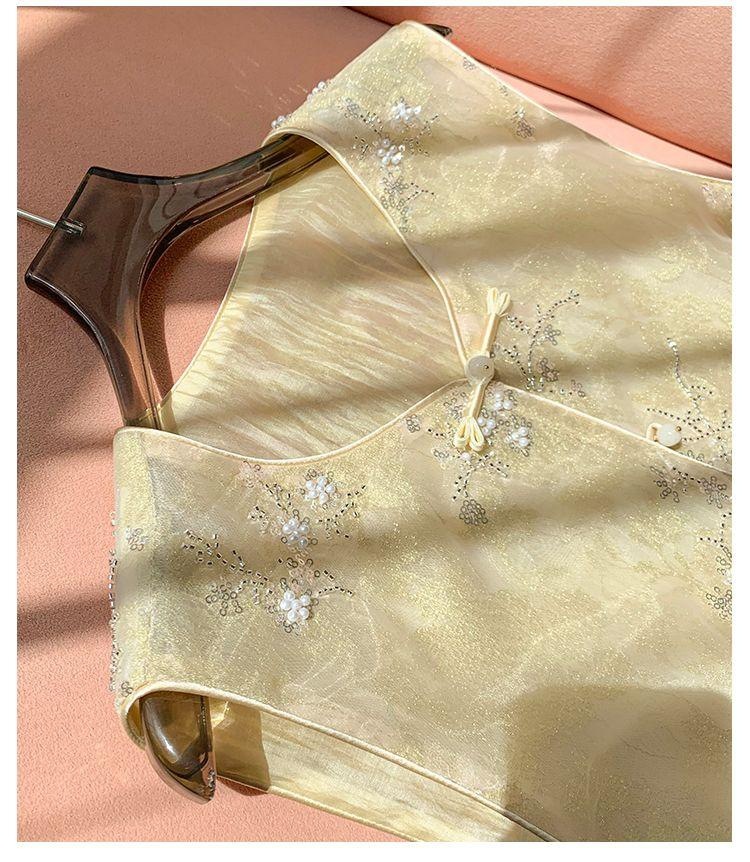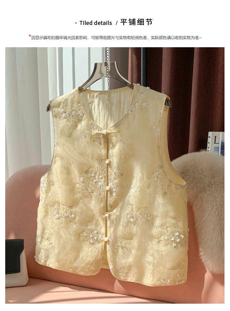 Choice New Chinese Style National Style Embroidered Yellow Organza Vest New Style 2025 Versatile Western Style Waistcoat Top