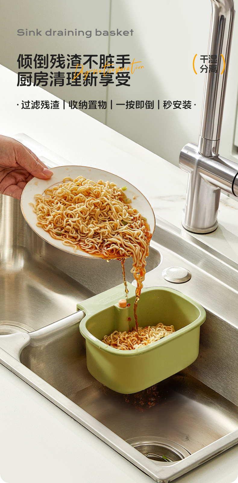 White [separate filter | One-click to dump the residue】drainage hanging basket