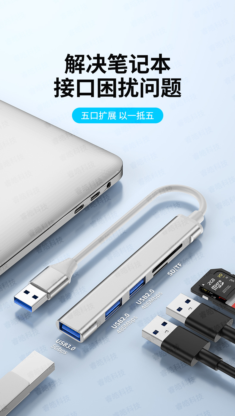 Five-In-One Usb3.0 Hub USB Flash Drive Card Reader Usb3.0Sd/Tf Expansion Card Reader 51 Docking Station