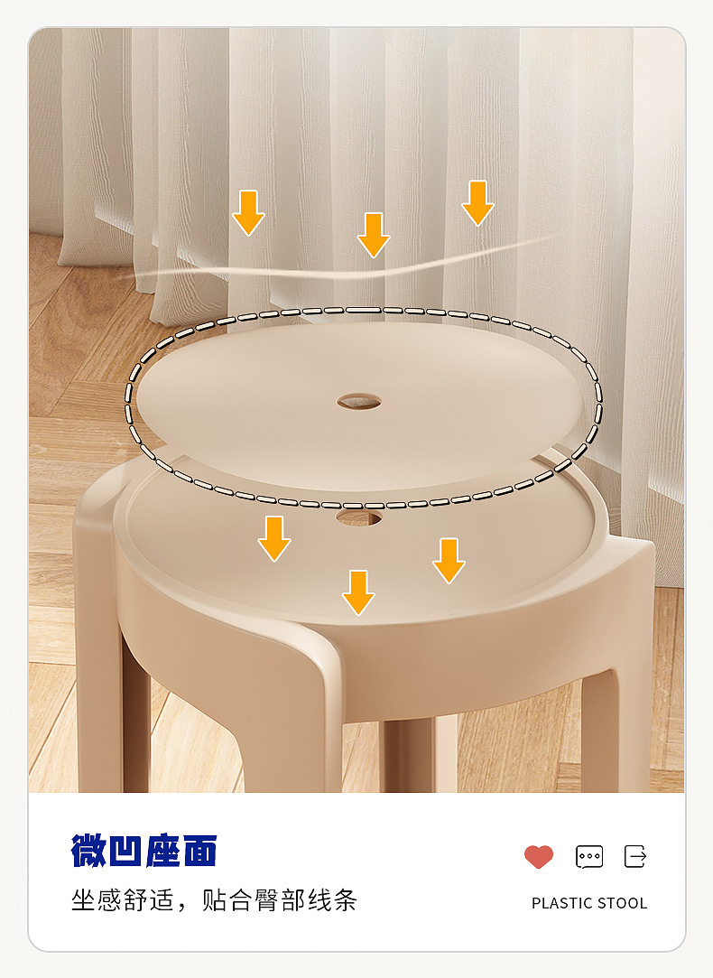 Choice Thickened Plastic Stools for Home Use, Stackable Dining Table Benches, Comfortable Chairs for Long Periods of Sitting, Windmill Stools, Plastic Round Stools