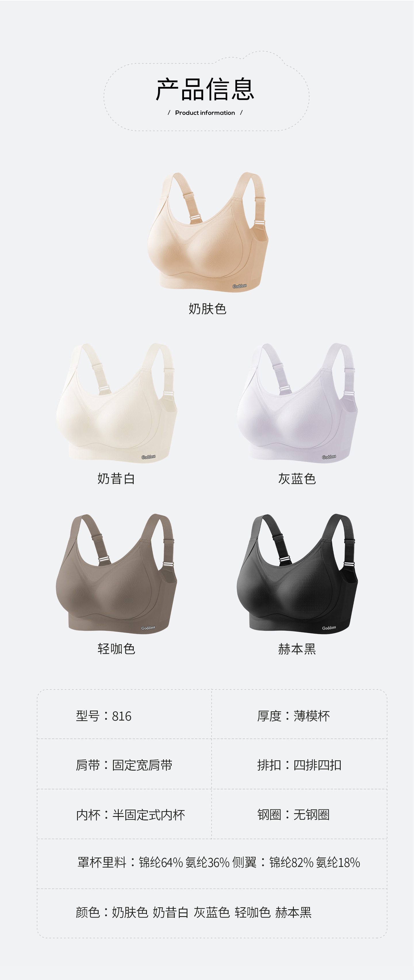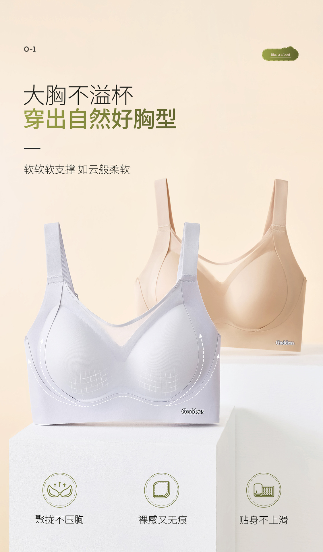 Choice Large Size Seamless Intimates for Women with Big Breasts, Slimming Look, Anti-Sagging, Breast-Retracting Bra, No Rims, Soft Support, Light Breasts