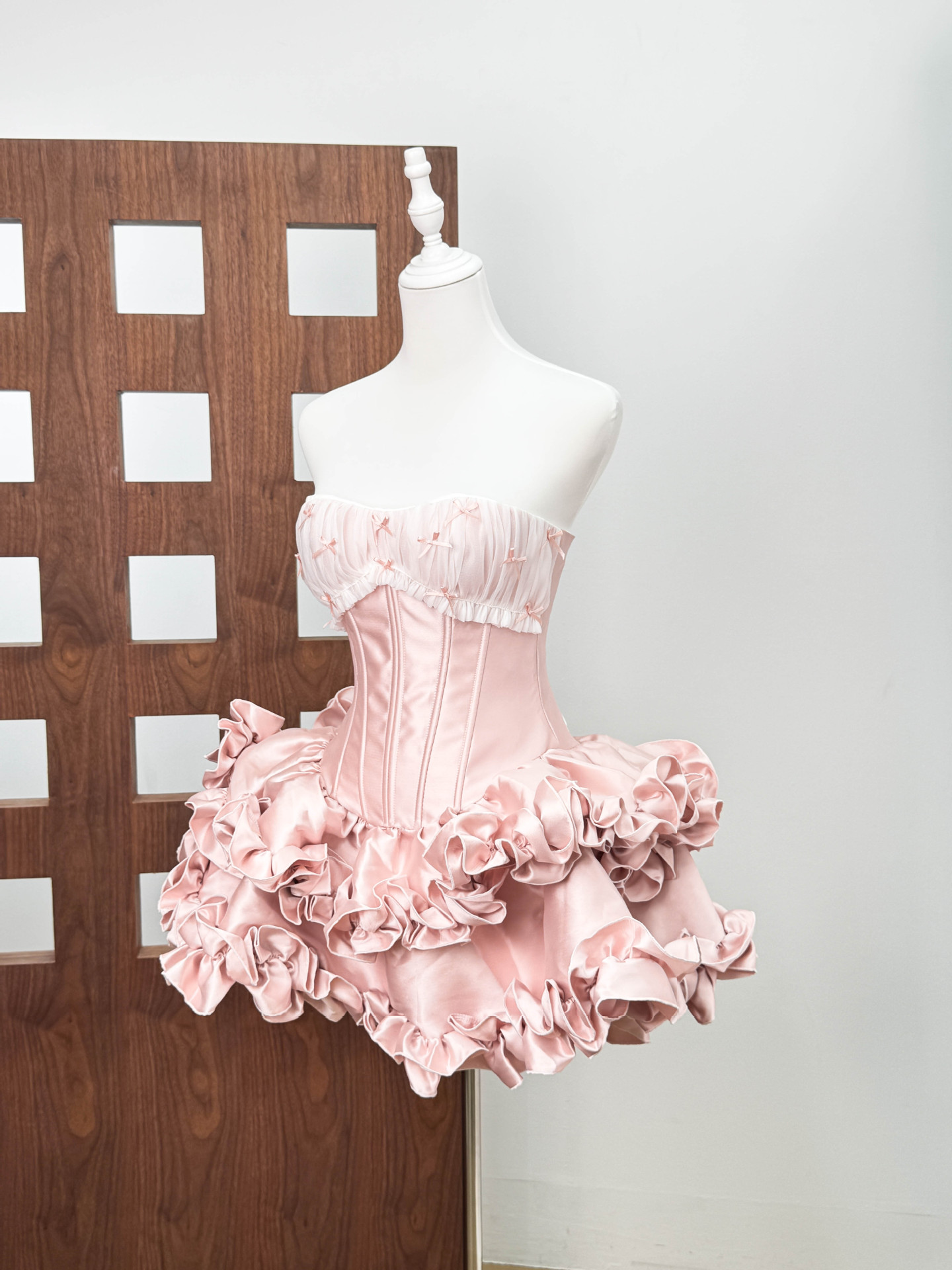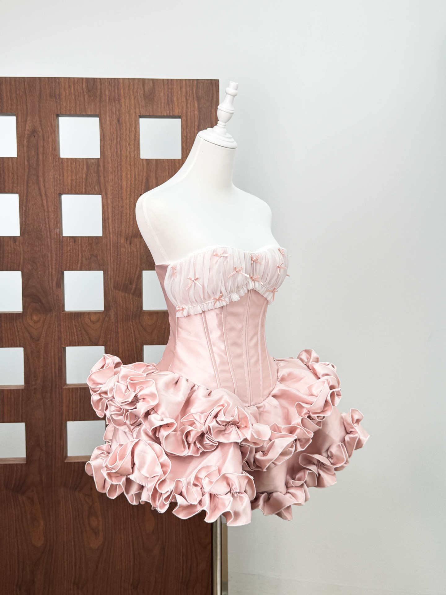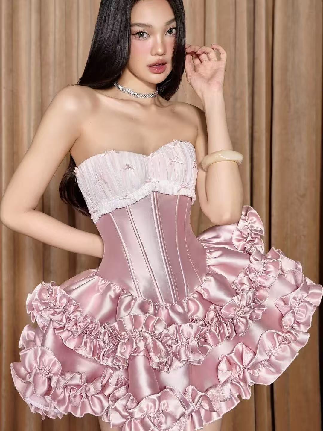 Vietnamese Niche Design L@Nec* Sweet Girly Tutu Skirt Bow Tube Top Birthday Dress with Safety Pants