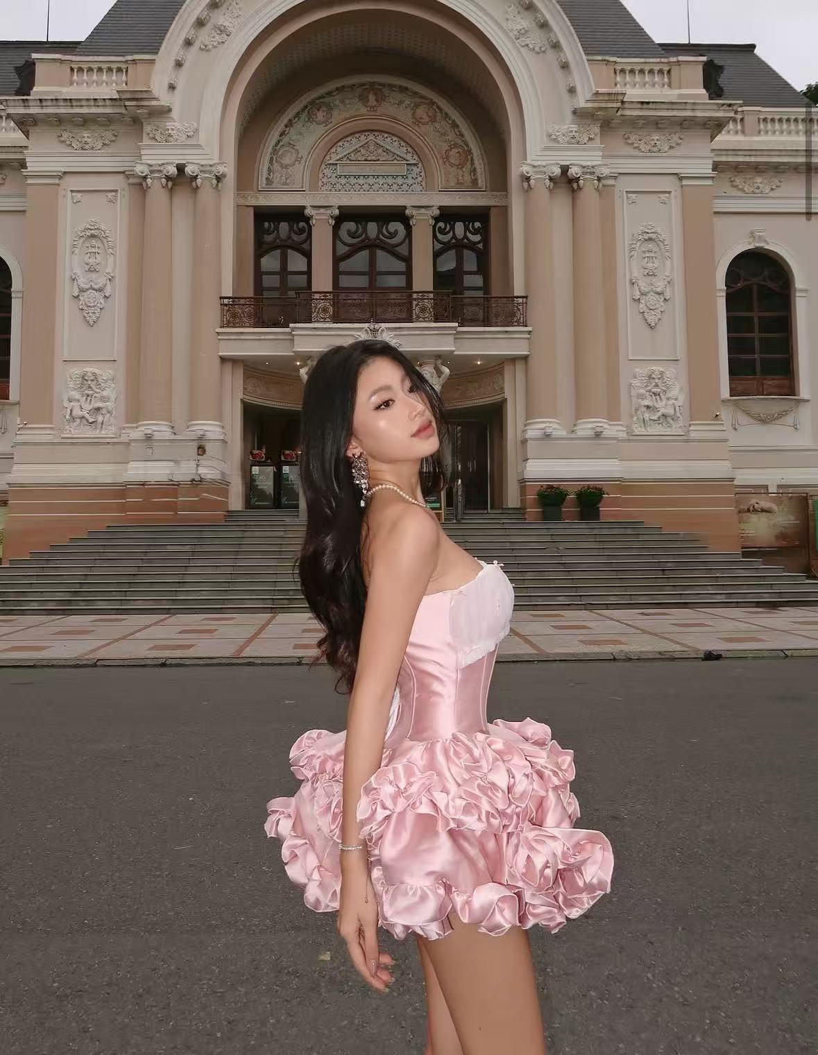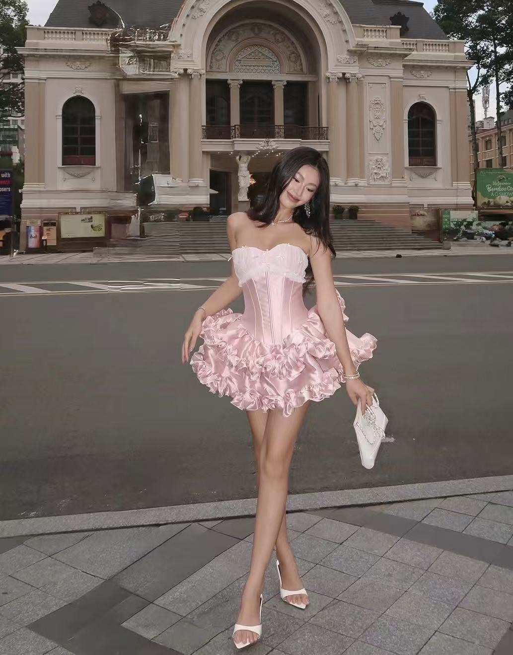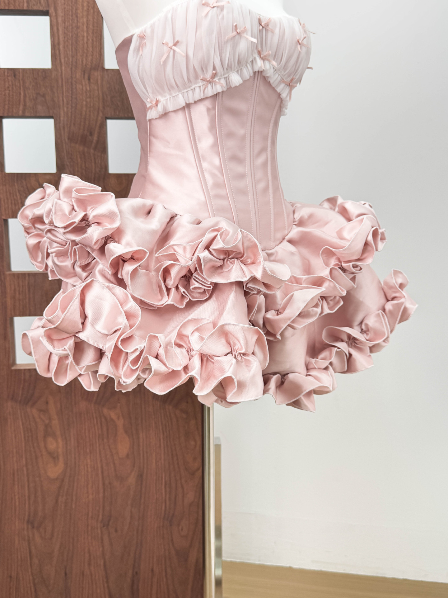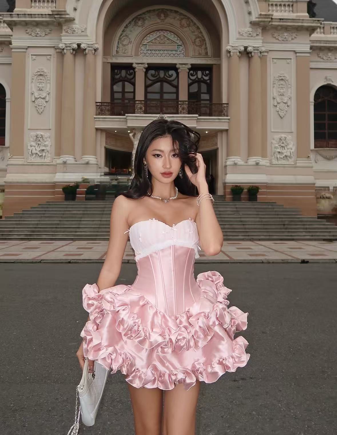 Vietnamese Niche Design L@Nec* Sweet Girly Tutu Skirt Bow Tube Top Birthday Dress with Safety Pants