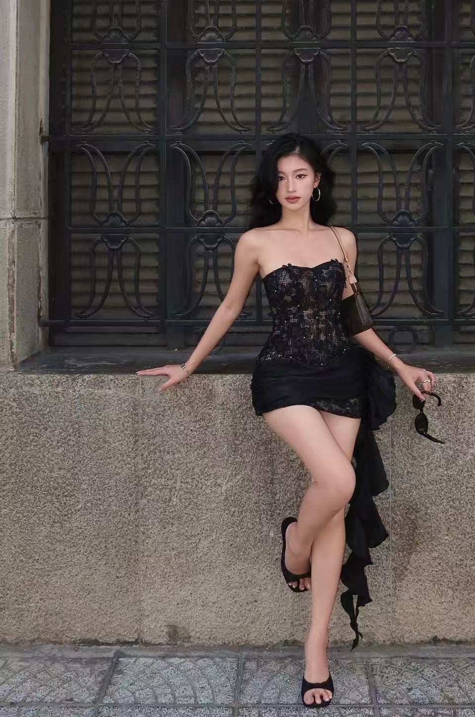 Vietnamese Niche Design L@Neci 25Aw New Pure Lust Girly Style Lace Fishbone Hip Skirt Ribbon Suit