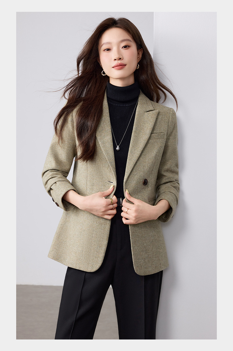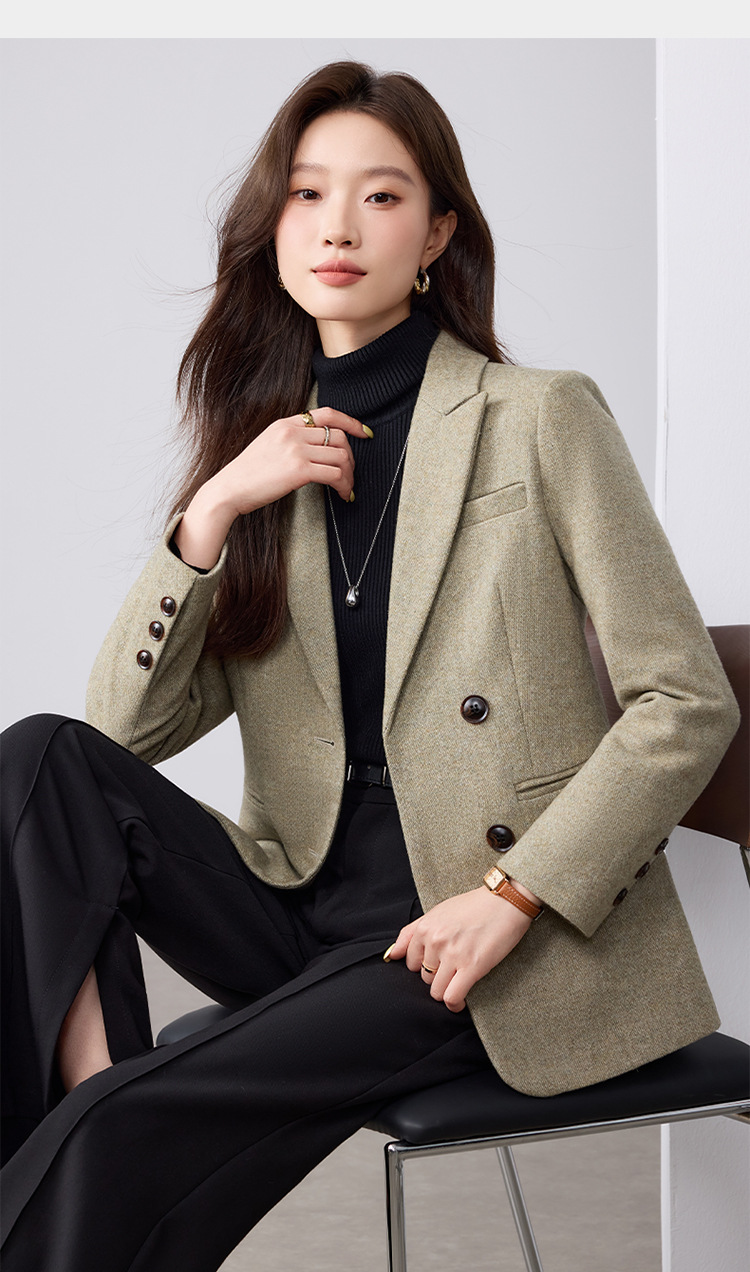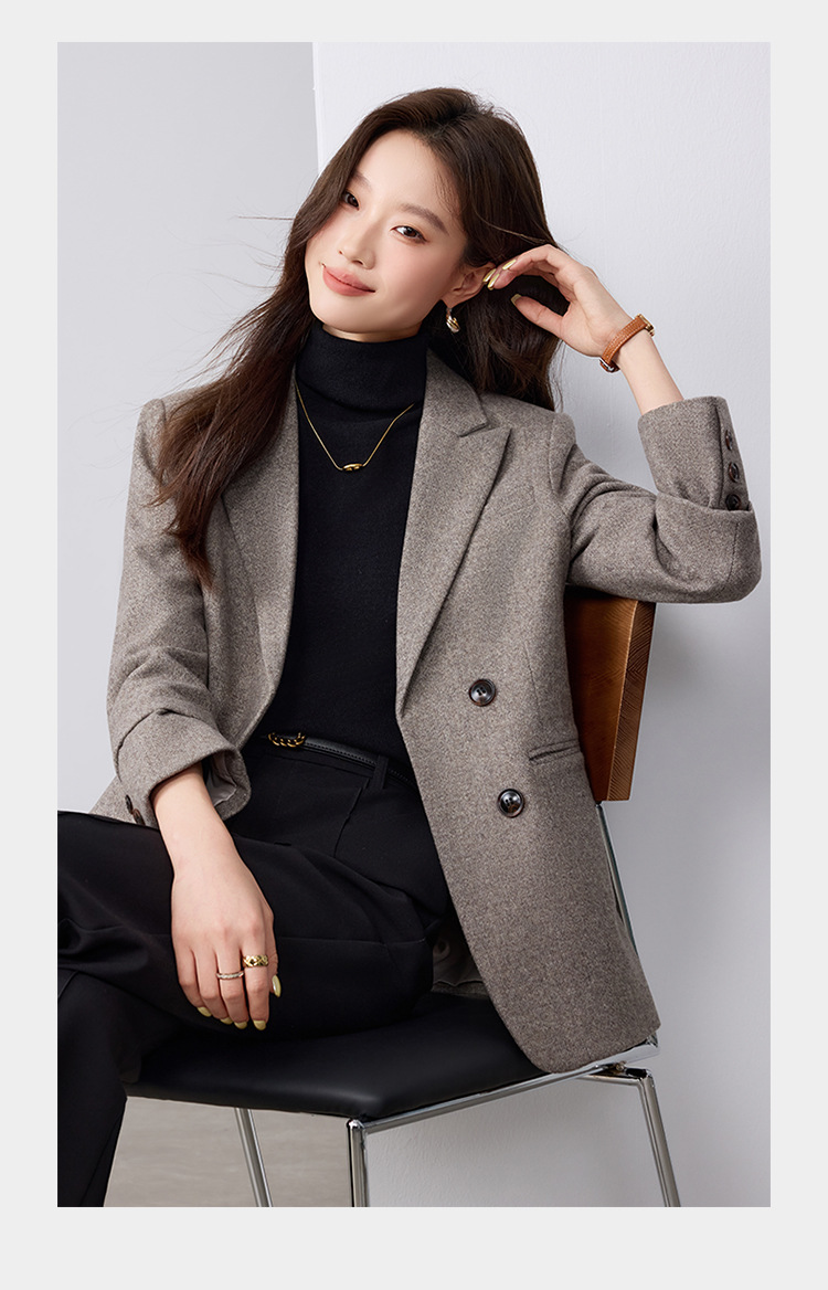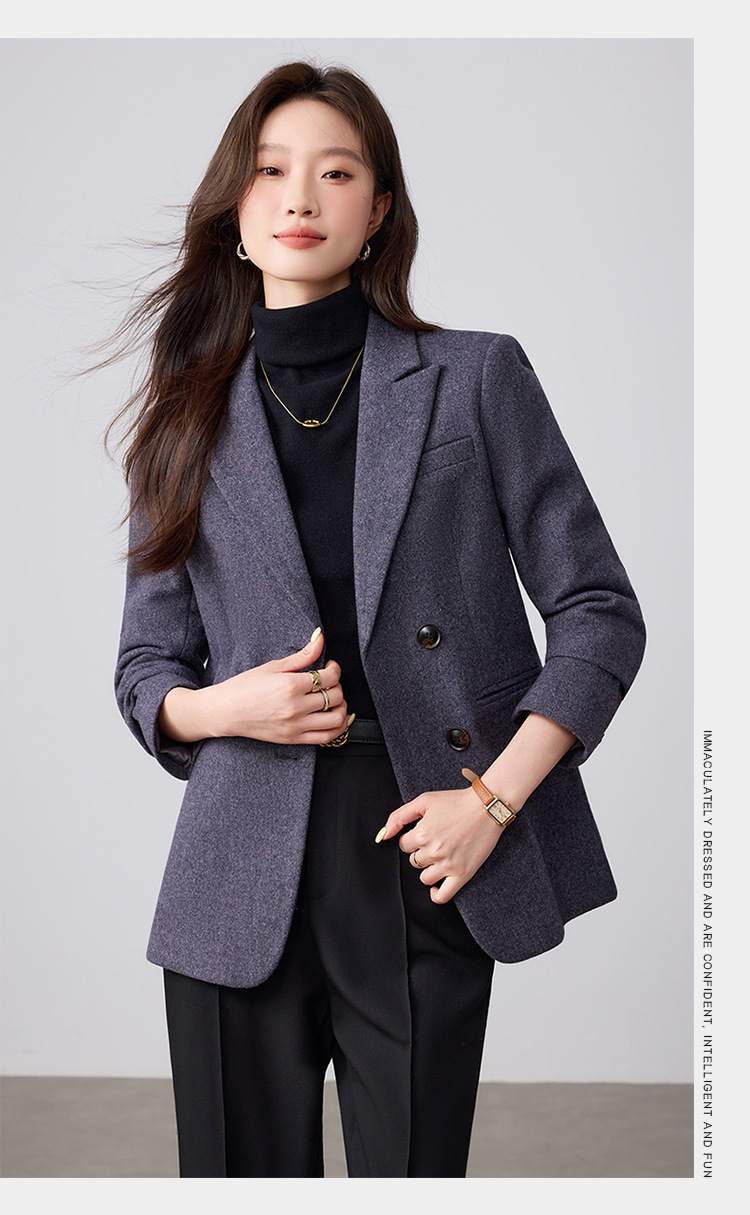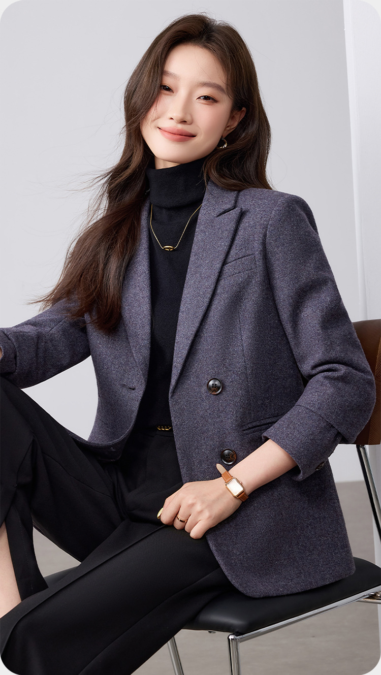 Dark Purple Woolen Suit Jacket Women 2025 Autumn Winter New Plus Size Women's Outerwear Fashion Two Button Casual Top