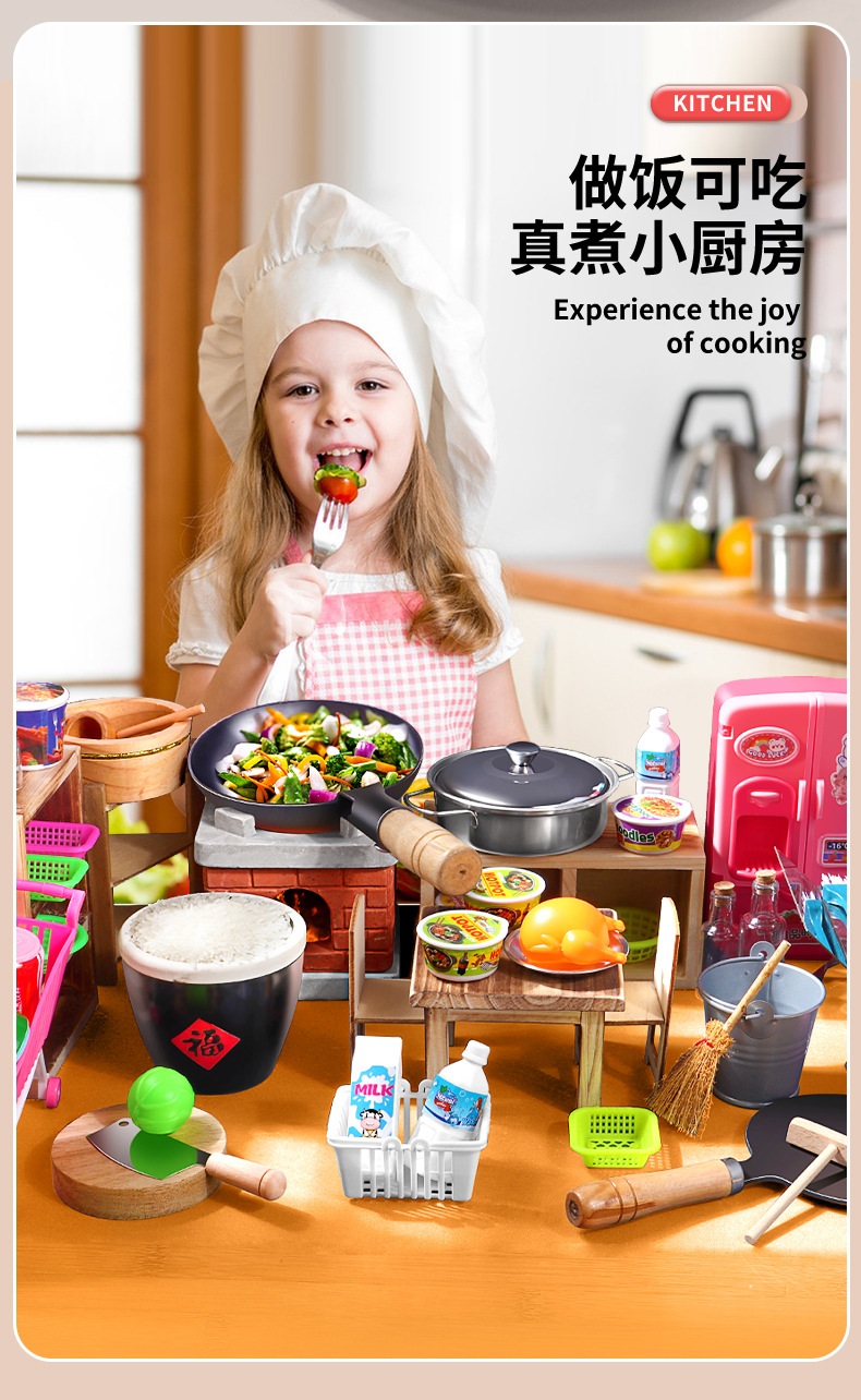 Choice Internet Celebrity Retro Small Kitchen Real Cooking Full Set of Cooking Kidsren's Play House Real Version Kitchen Utensil Set Boys and Girls Toys