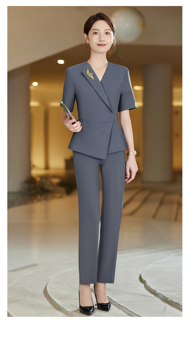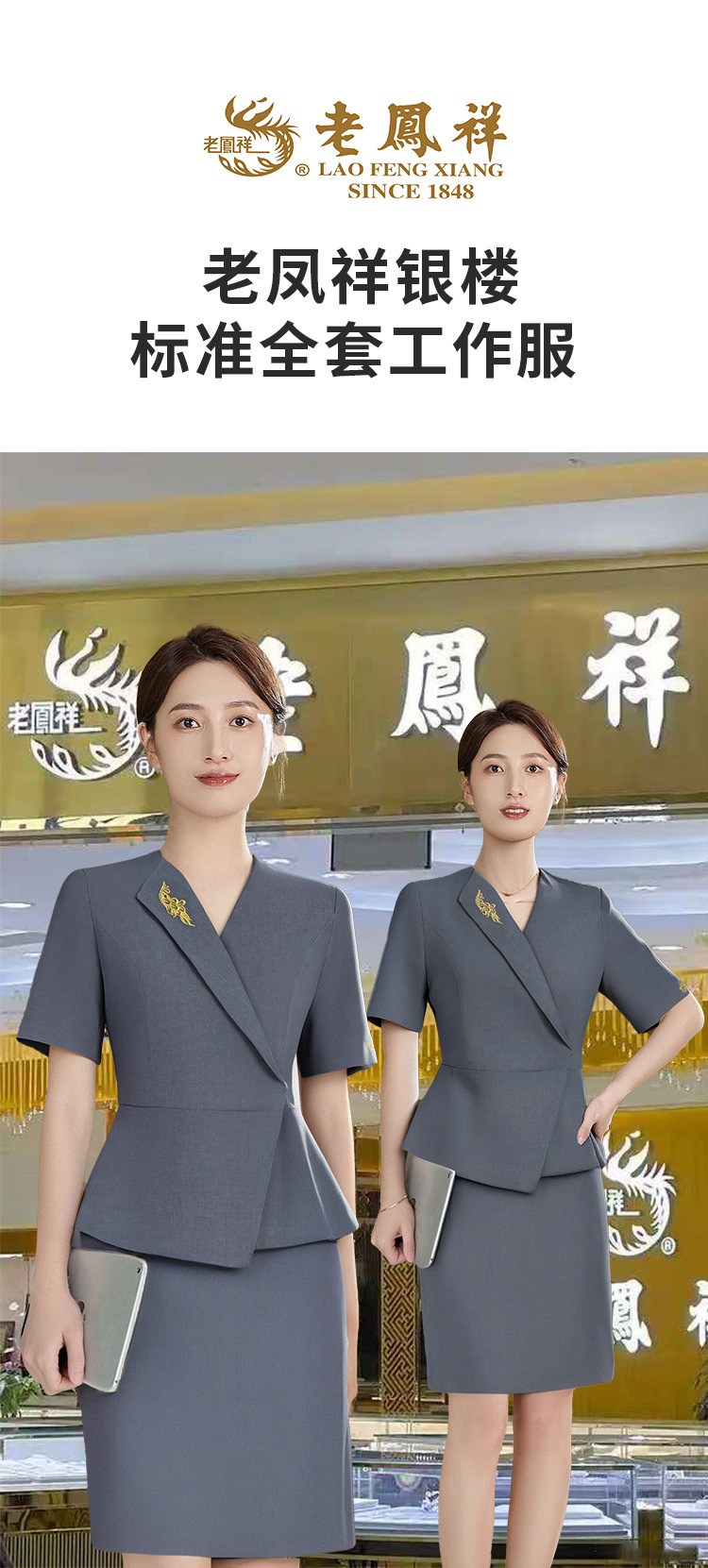 Choice 2025 New Summer Style Lao Fengxiang Silver House Work Clothes Gray Short-Sleeved Thin Suit Suit Gold Jewelry Store Work Clothes