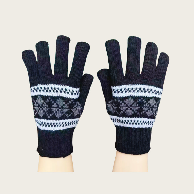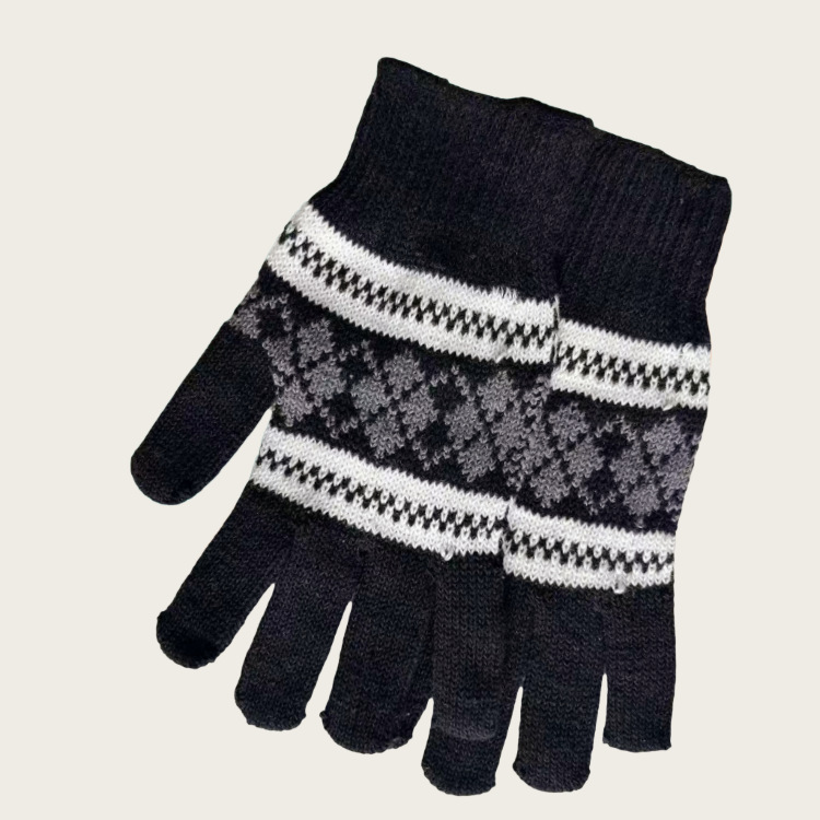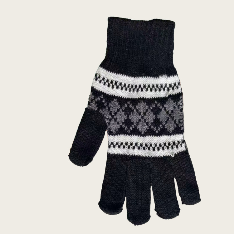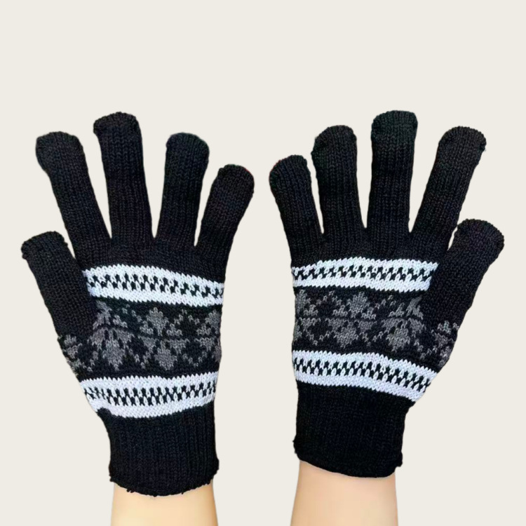 Warm Gloves Autumn and Winter Men's Jacquard Fashion Snowflake Finger Thickened Knitted Thread Gloves Manufacturer Wholesale