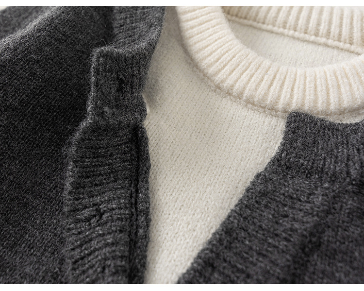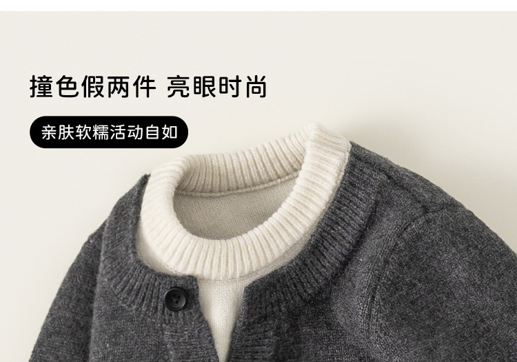 Bangxuan Children's Clothing Simple Spring and Autumn Pullover Knit Sweater for Kids Long-Sleeve Faux Two-Piece Boys' Sweater
