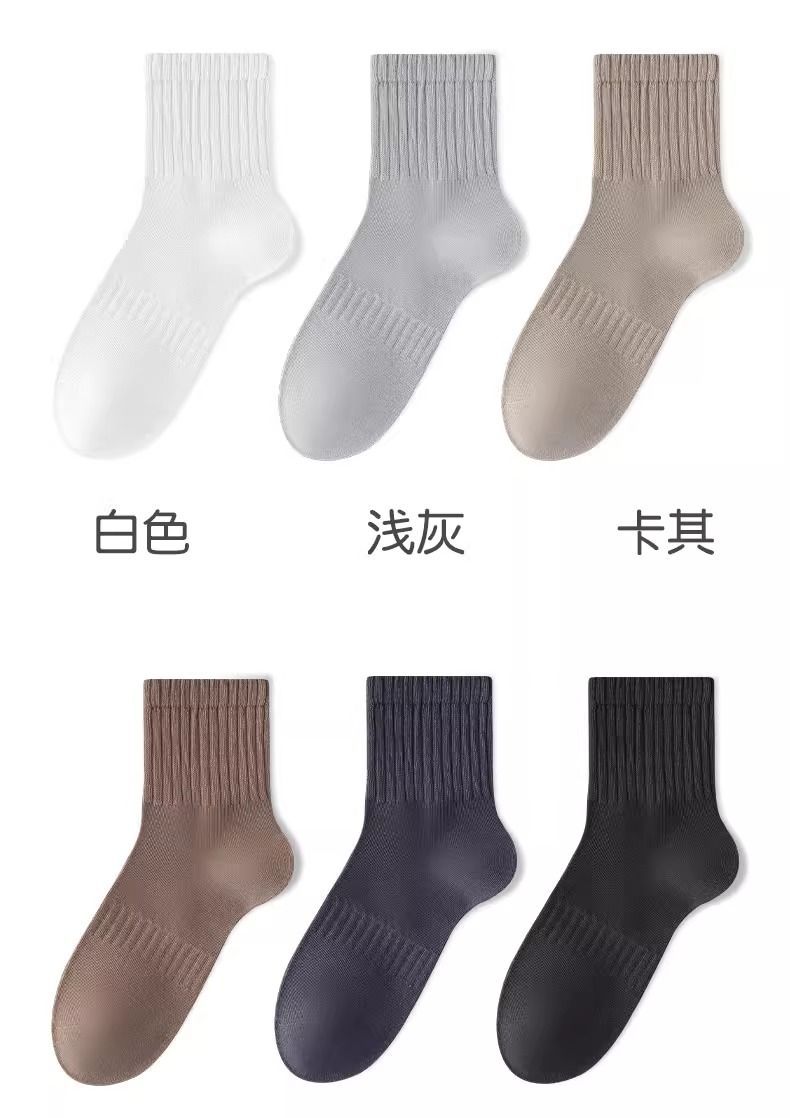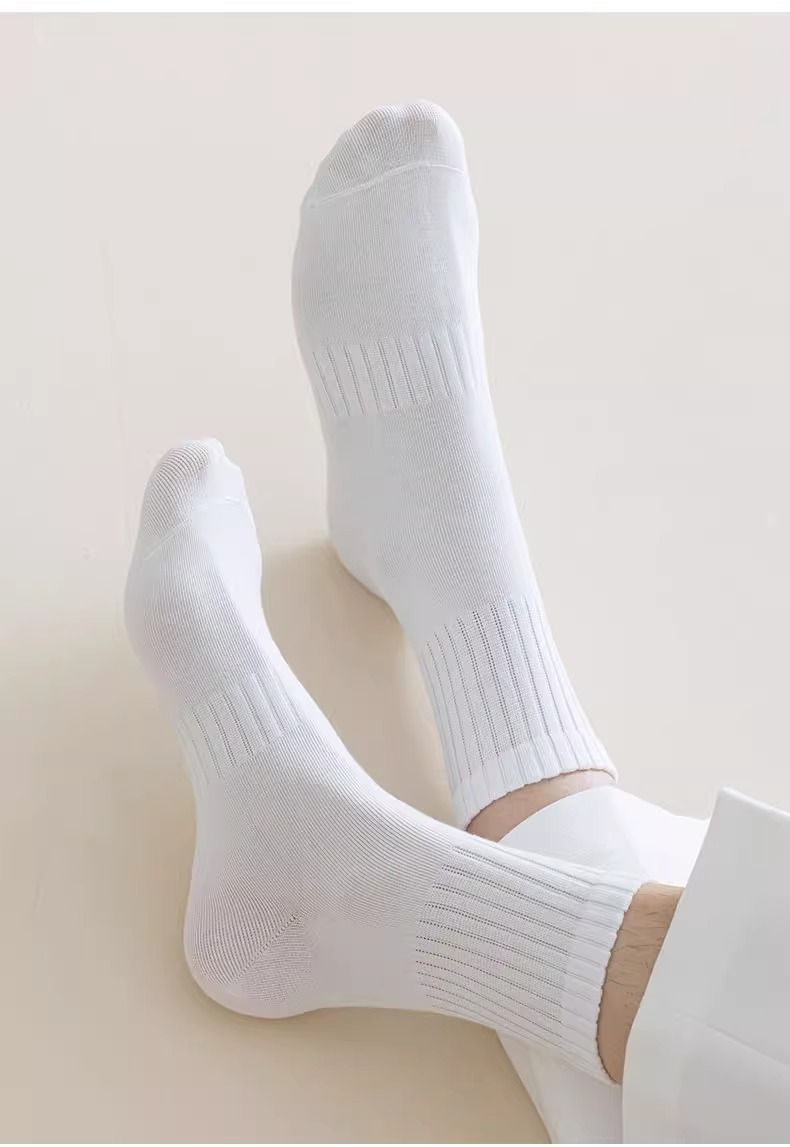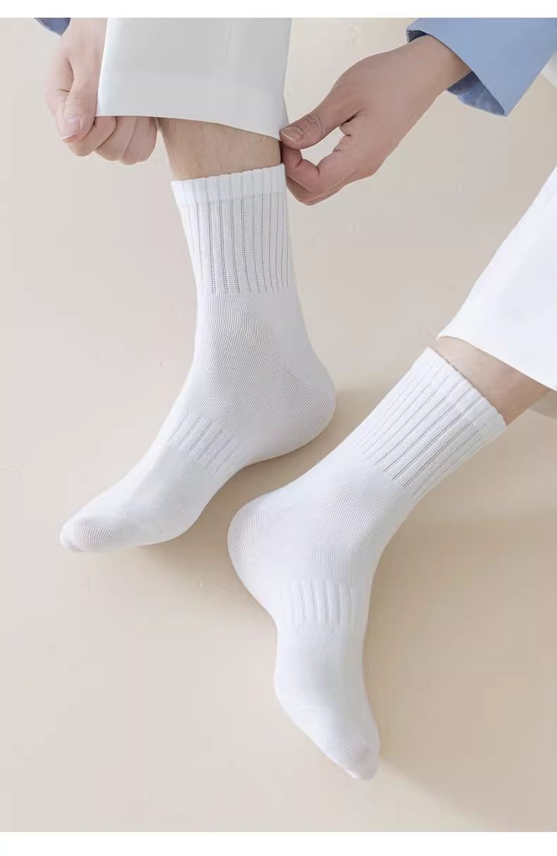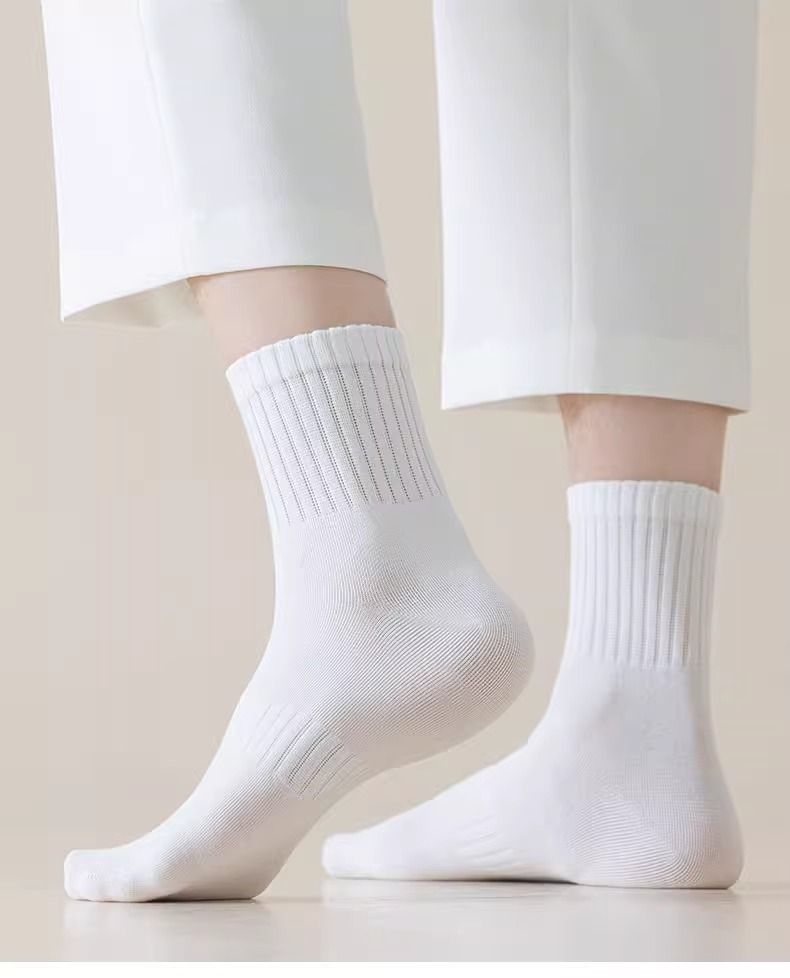 Choice 7A Antibacterial Socks Men's Cotton Summer Style Deodorant Sweat-Absorbent Wear-Resistant Sports Mid-Calf Cotton Socks Breathable White Socks