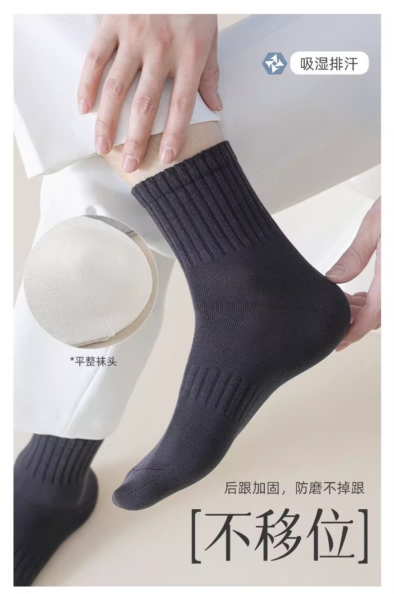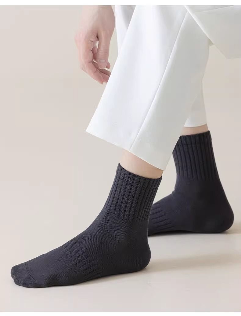 Mid-calf socks inscasualeasiest for matchpure color socks for men non-slip antibacterial sports socks high elastic non-restrictive cotton socks